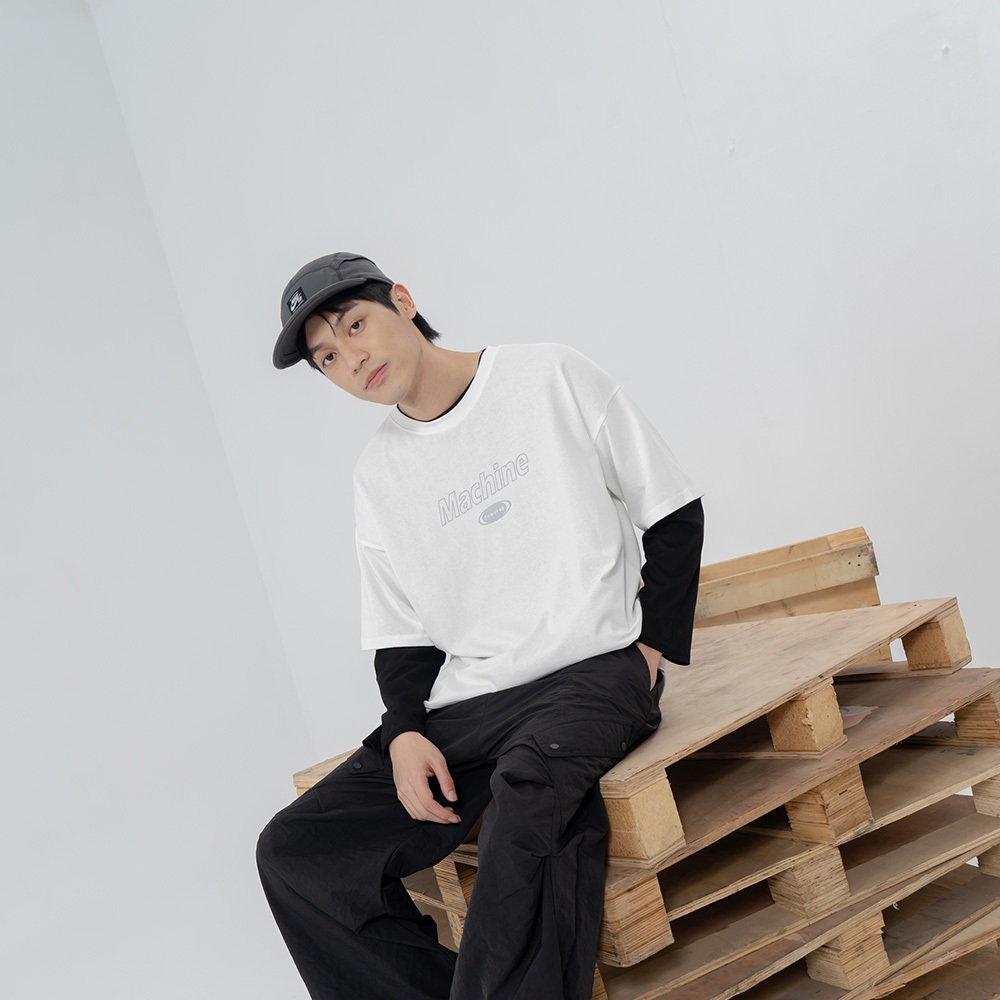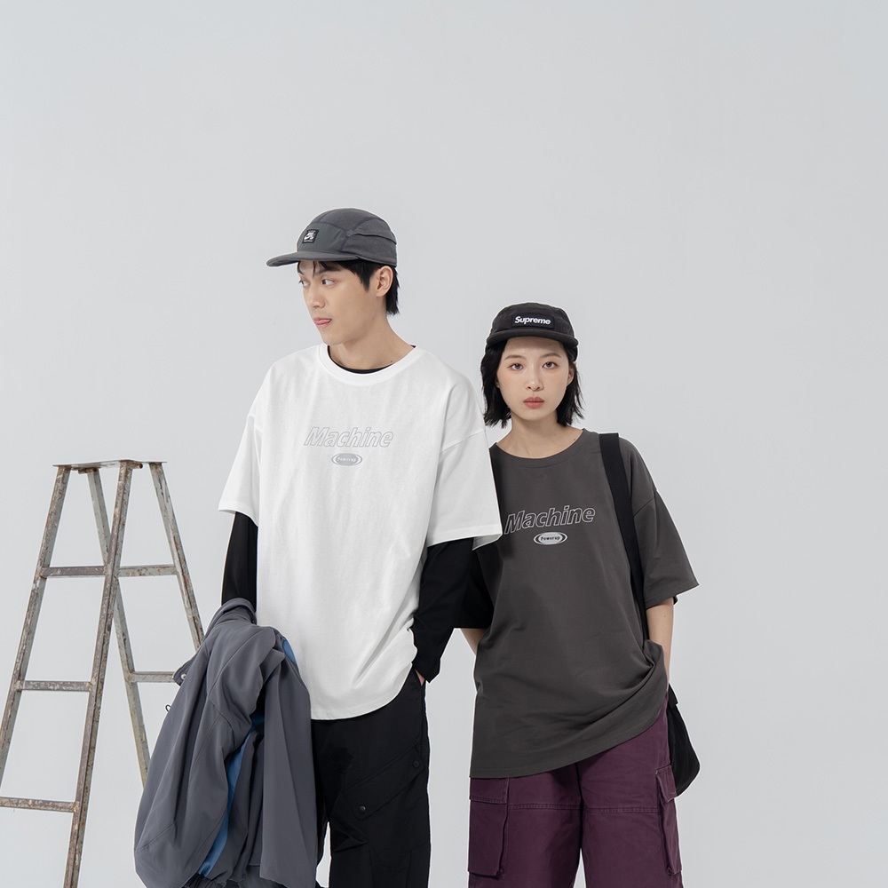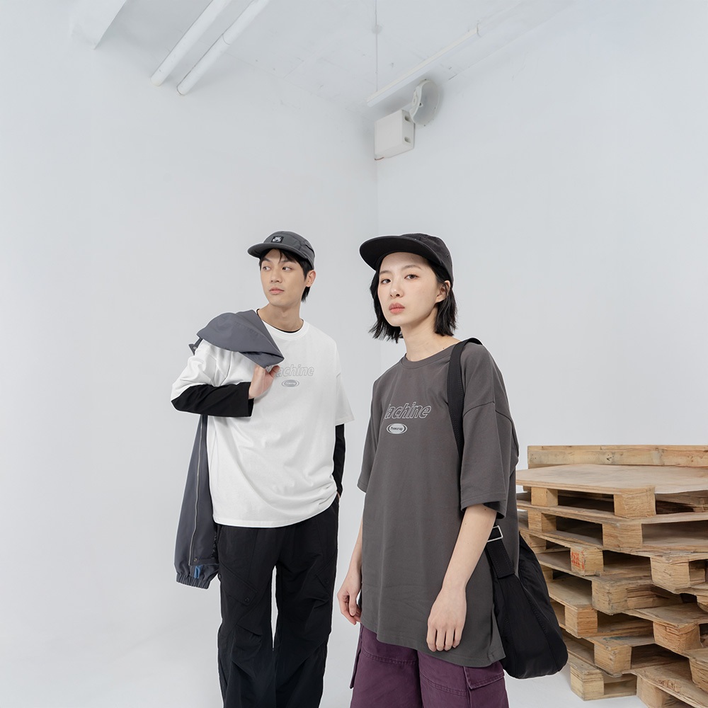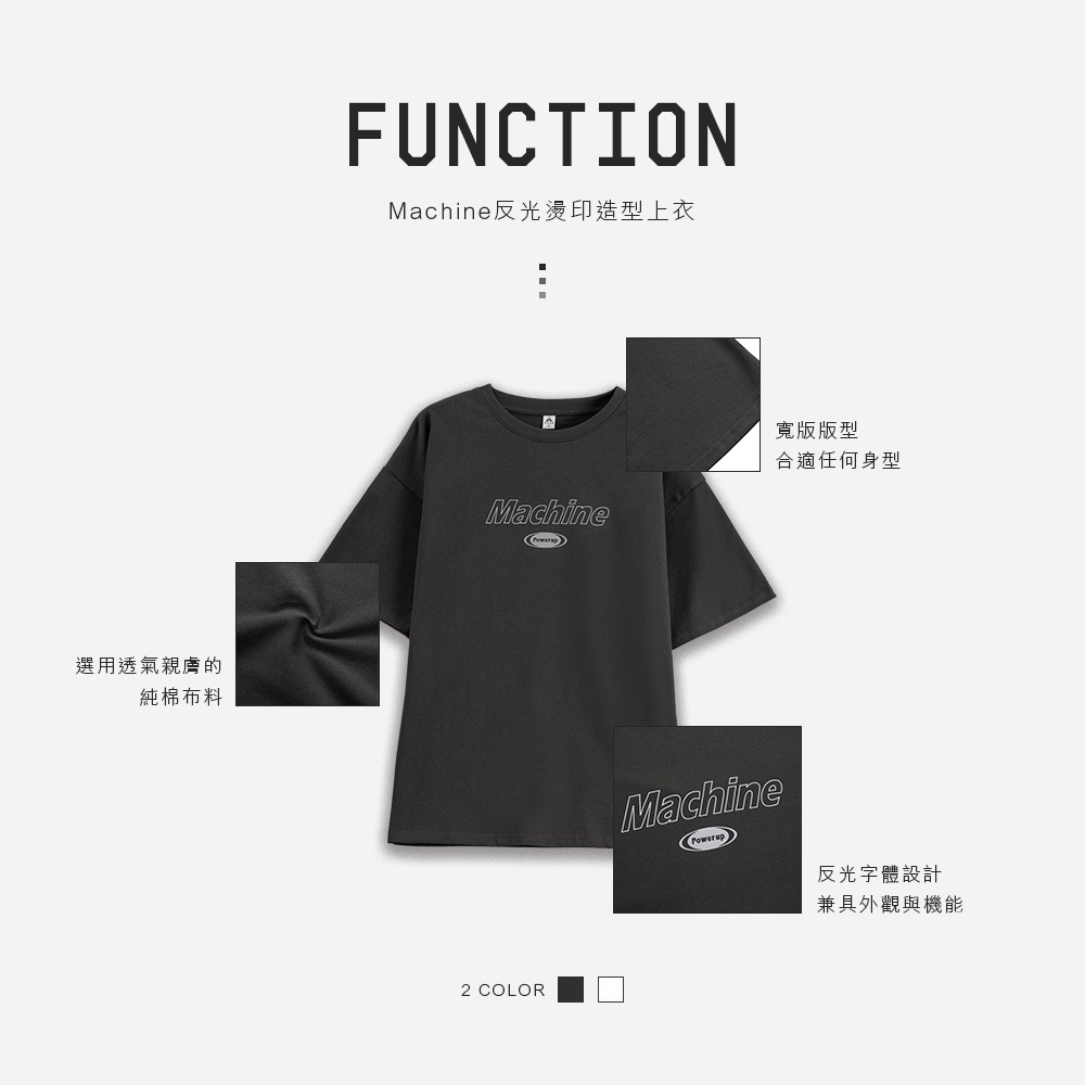 QUEENSHOP_ S 情侶裝 短袖 Machine反光燙印造型上衣 兩色售 1/2 現+預 【01190229】灰1|灰2|白1|白2T-shirtsQUEENSHOP
