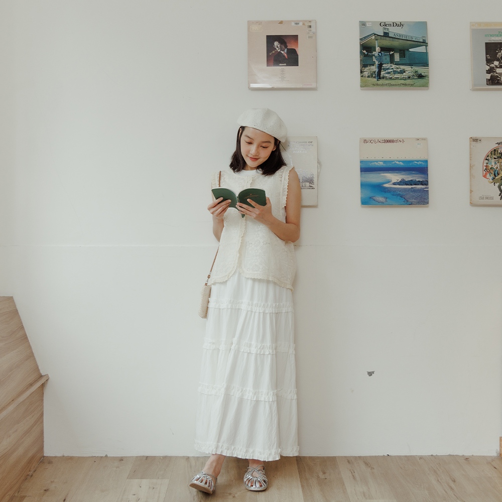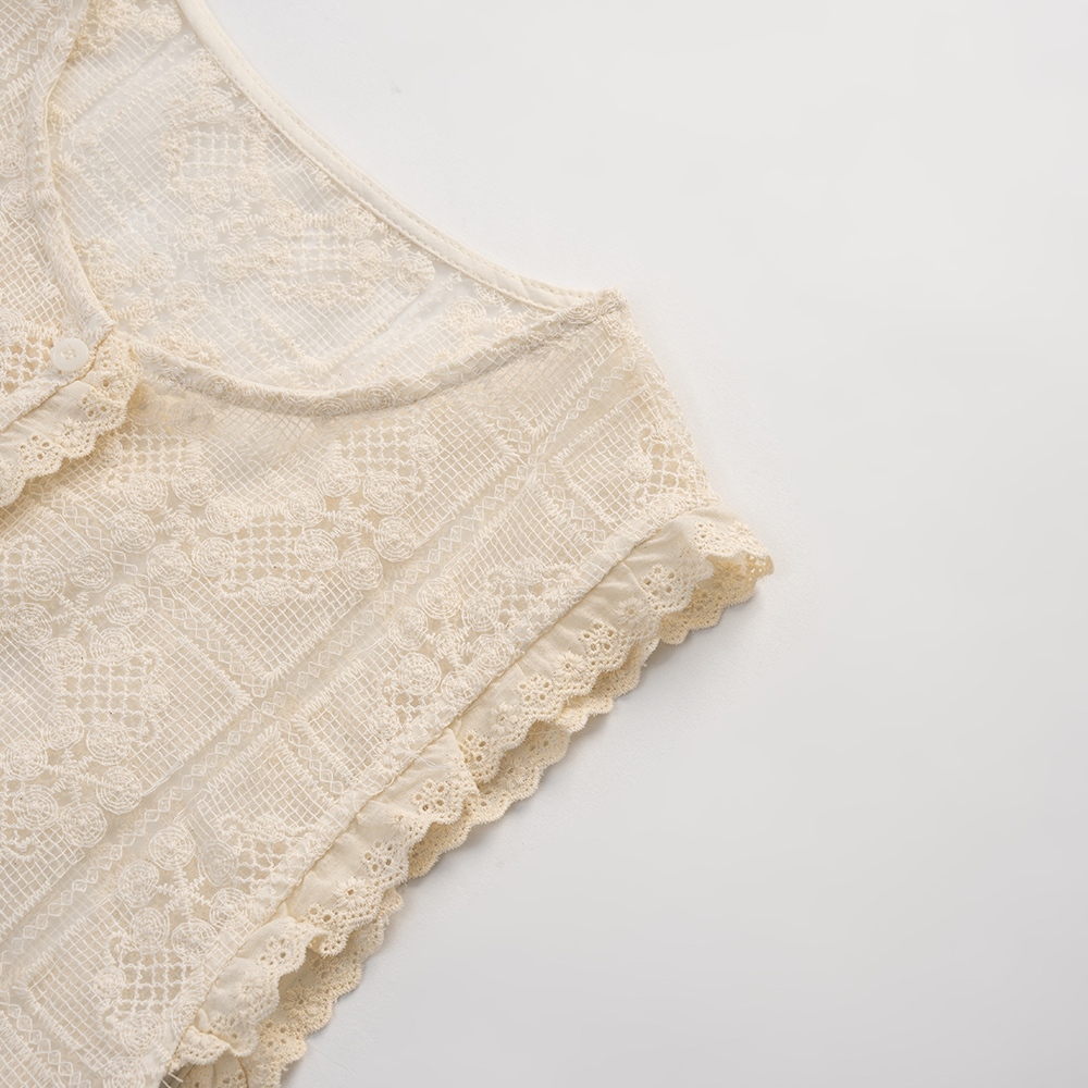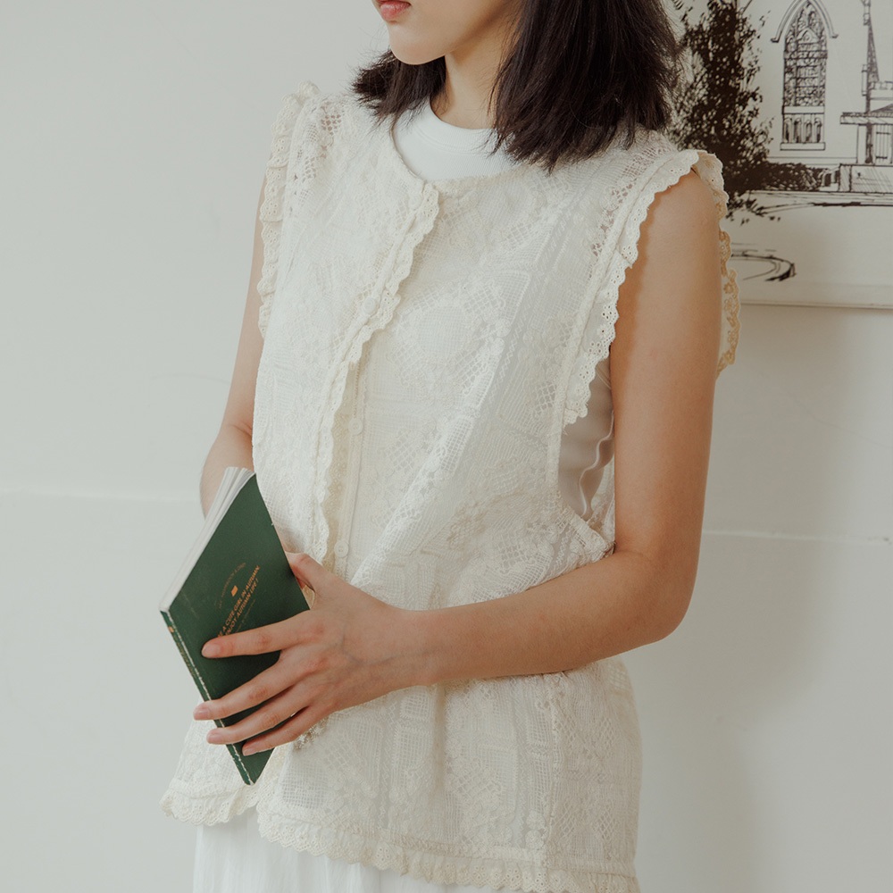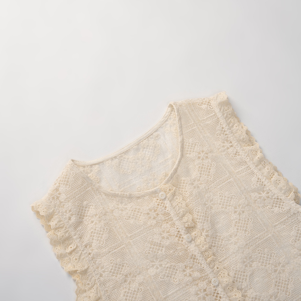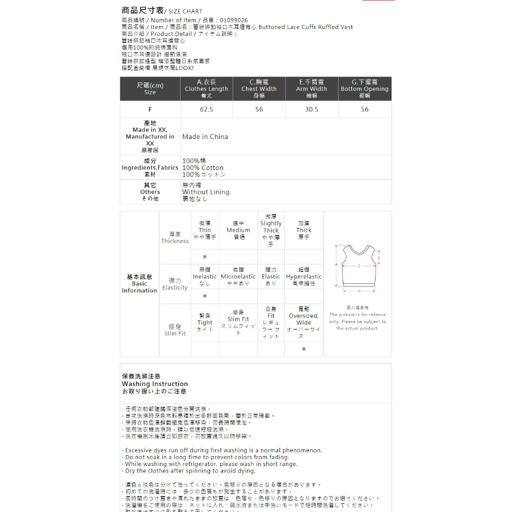 QUEENSHOP_ S 女裝 蕾絲排釦袖口木耳邊背心 現+預 【01099026】依賣場Tanks & CamisolesQUEENSHOP