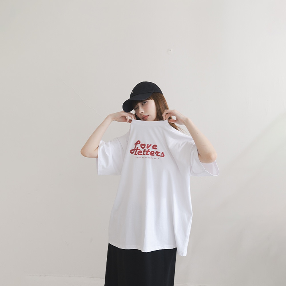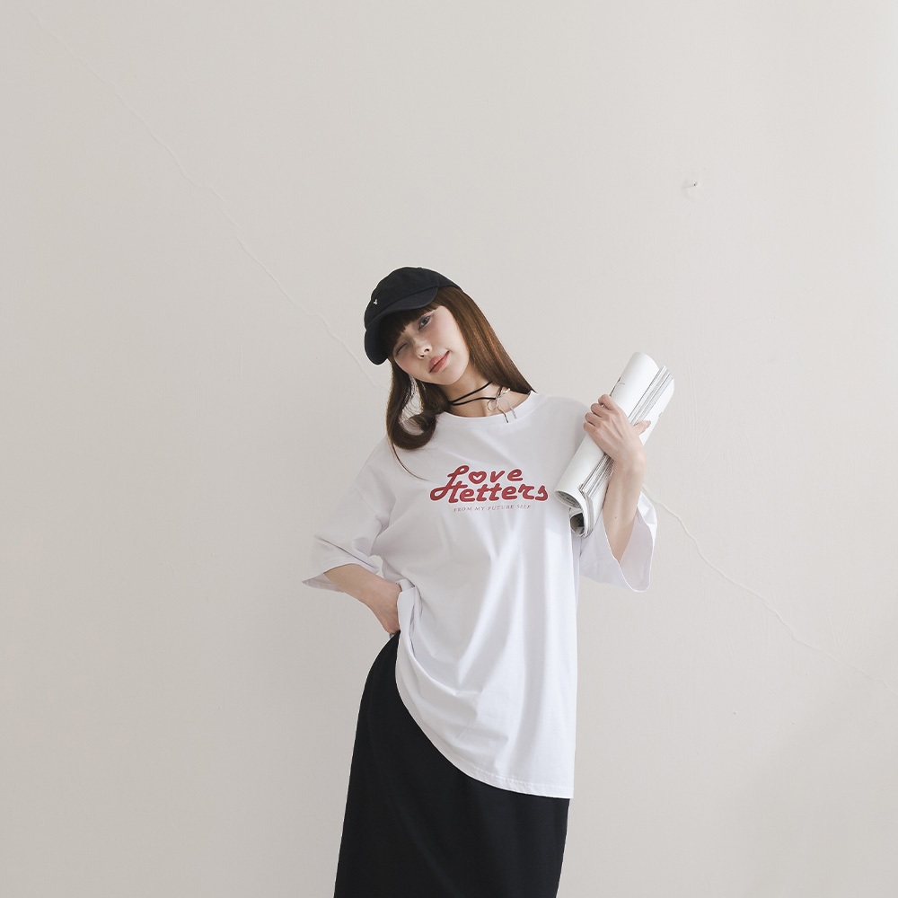 QUEENSHOP_ S 女裝 短袖 涼感Love letters 印字短袖上衣 兩色售 現+預 【01190227】黑|白T-shirtsQUEENSHOP