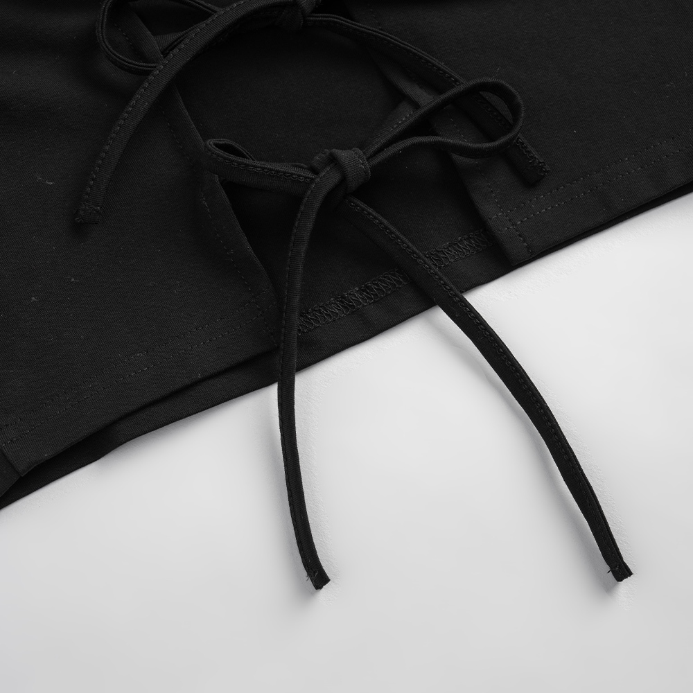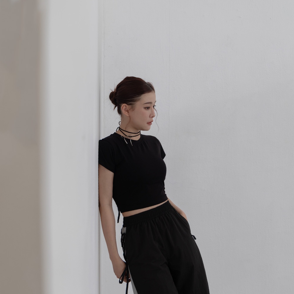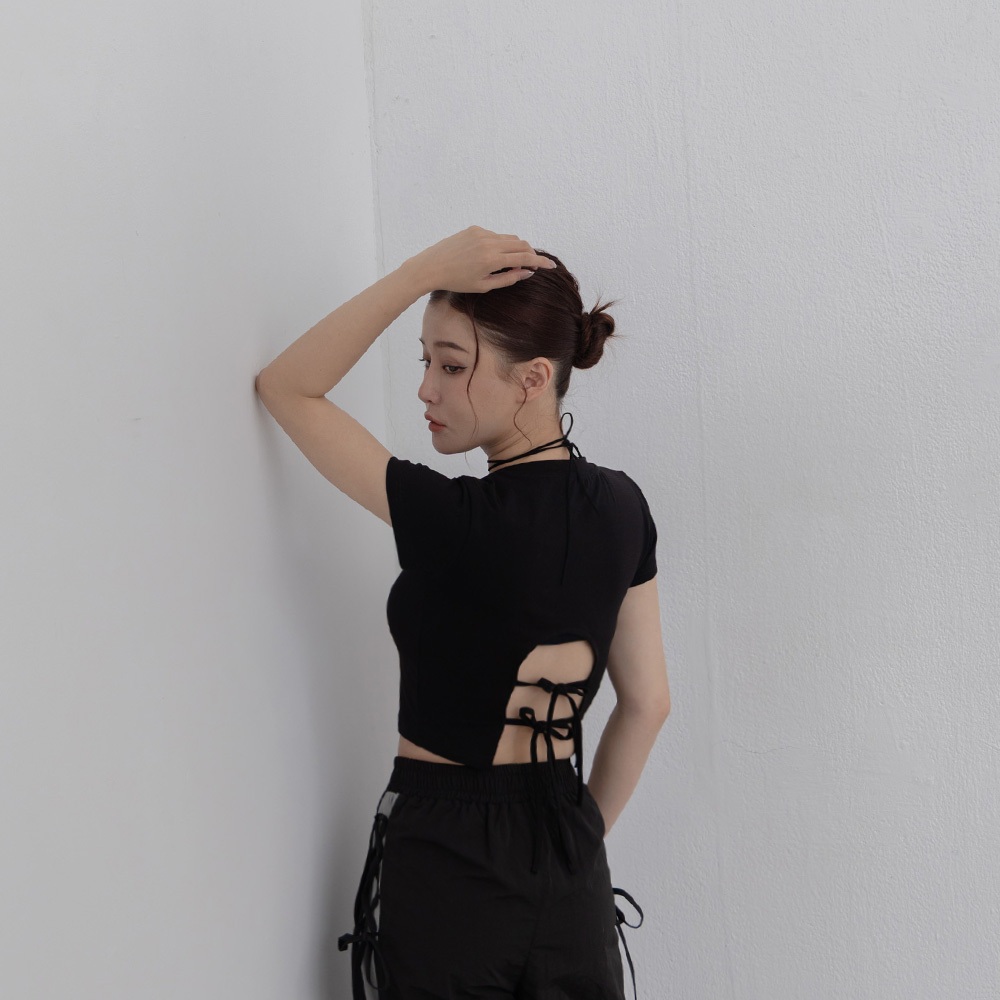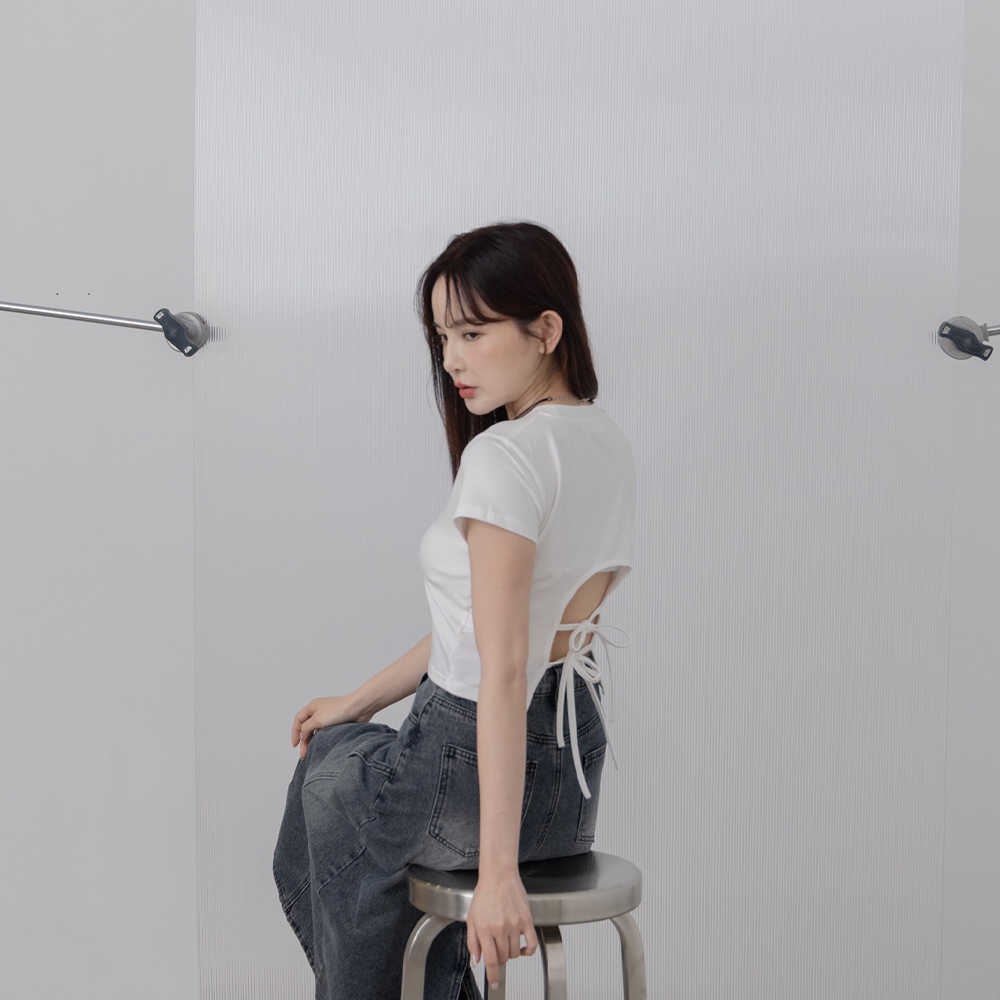 QUEENSHOP_ S 女裝 短袖 素面後雙綁帶挖洞短袖上衣 兩色售 現+預 【01098933】黑|白T-shirtsQUEENSHOP