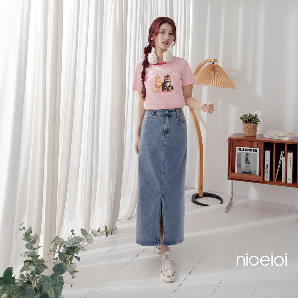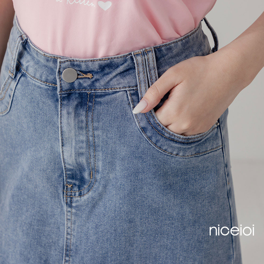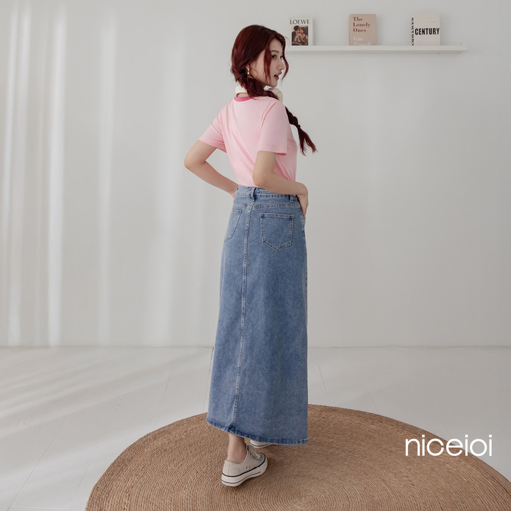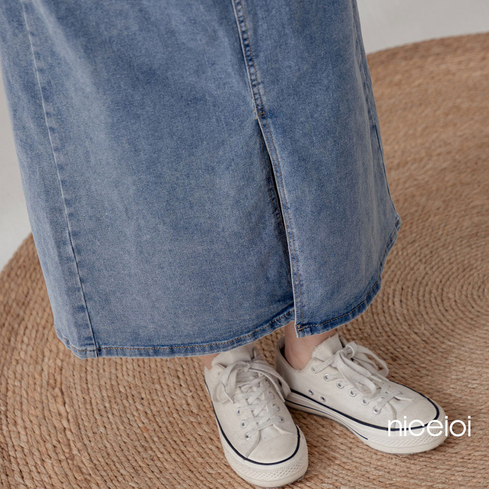 niceioi 牛仔長裙 長裙 開岔長裙 藍色 [週末休閒微開岔丹寧長裙] 高腰裙 女裝高腰牛仔長裙-藍,S|高腰牛仔長裙-藍,M|高腰牛仔長裙-藍,L|高腰牛仔長裙-藍,XLniceioi 官方旗艦店