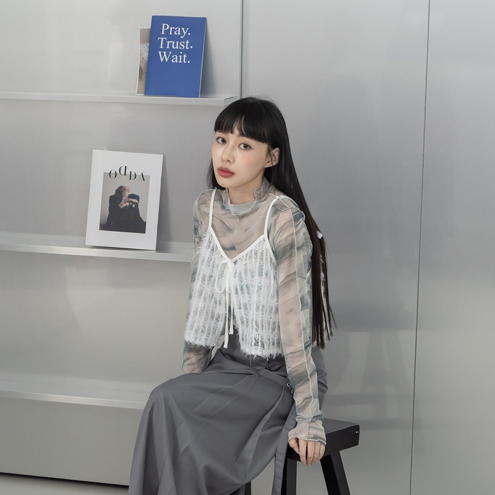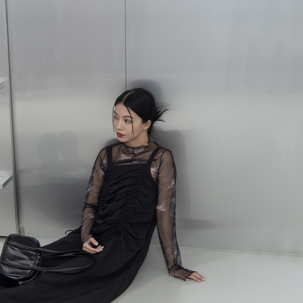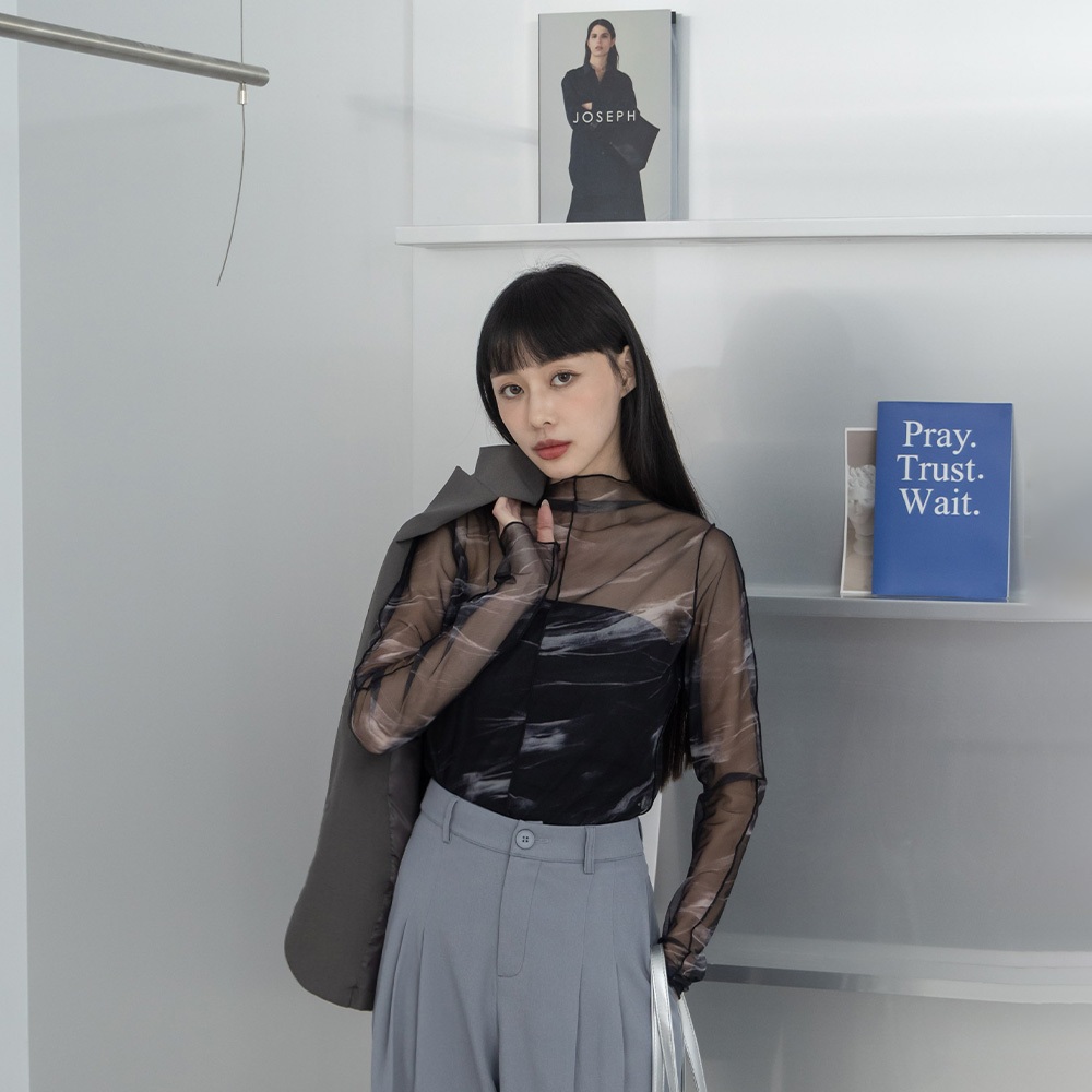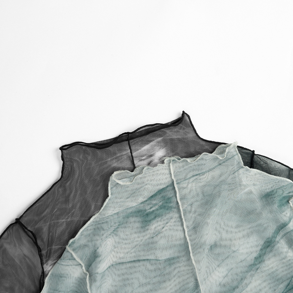QUEENSHOP_ S 女裝 長袖 渲染剪接木耳邊透膚高領上衣 兩色售 現+預 【01098699】黑|綠OthersQUEENSHOP