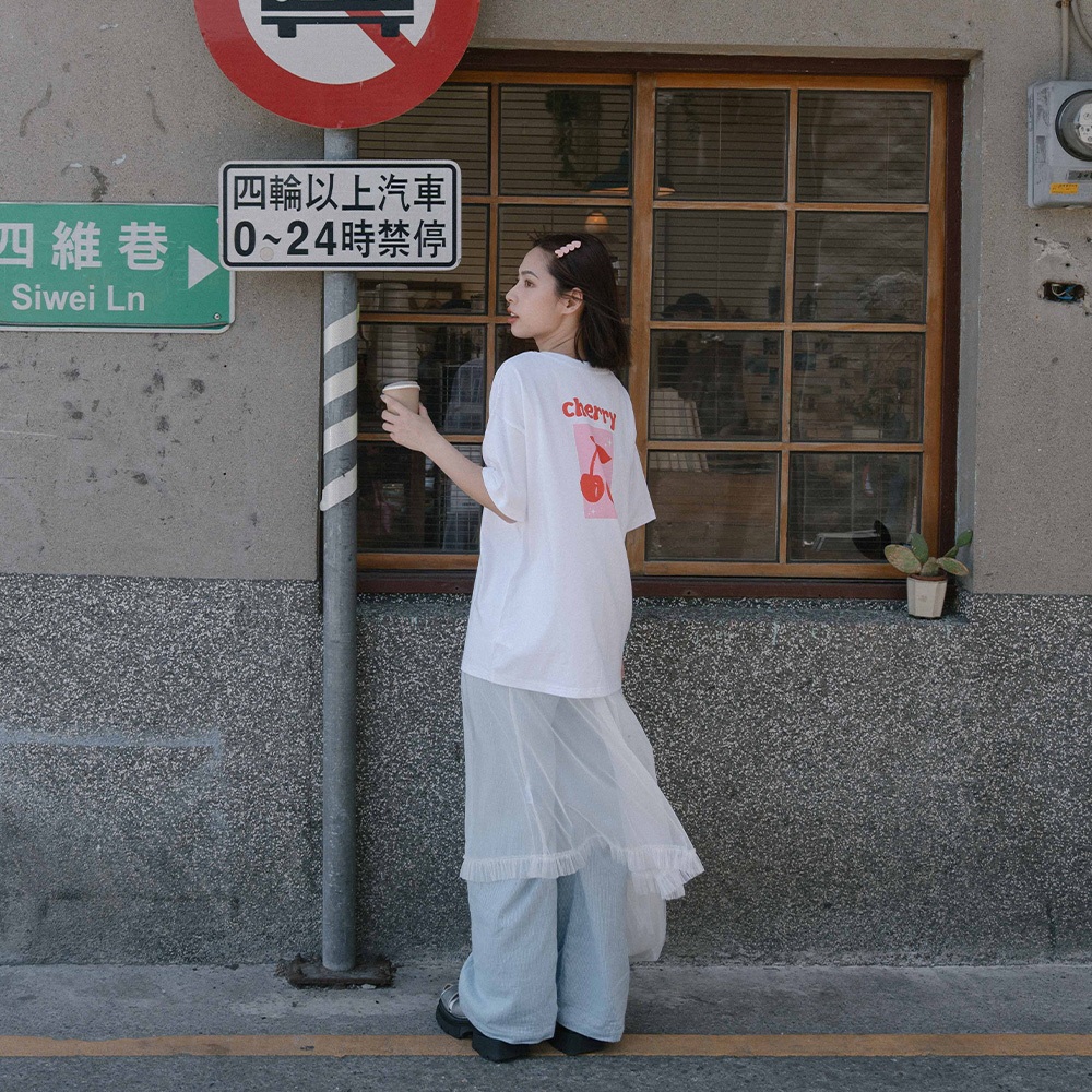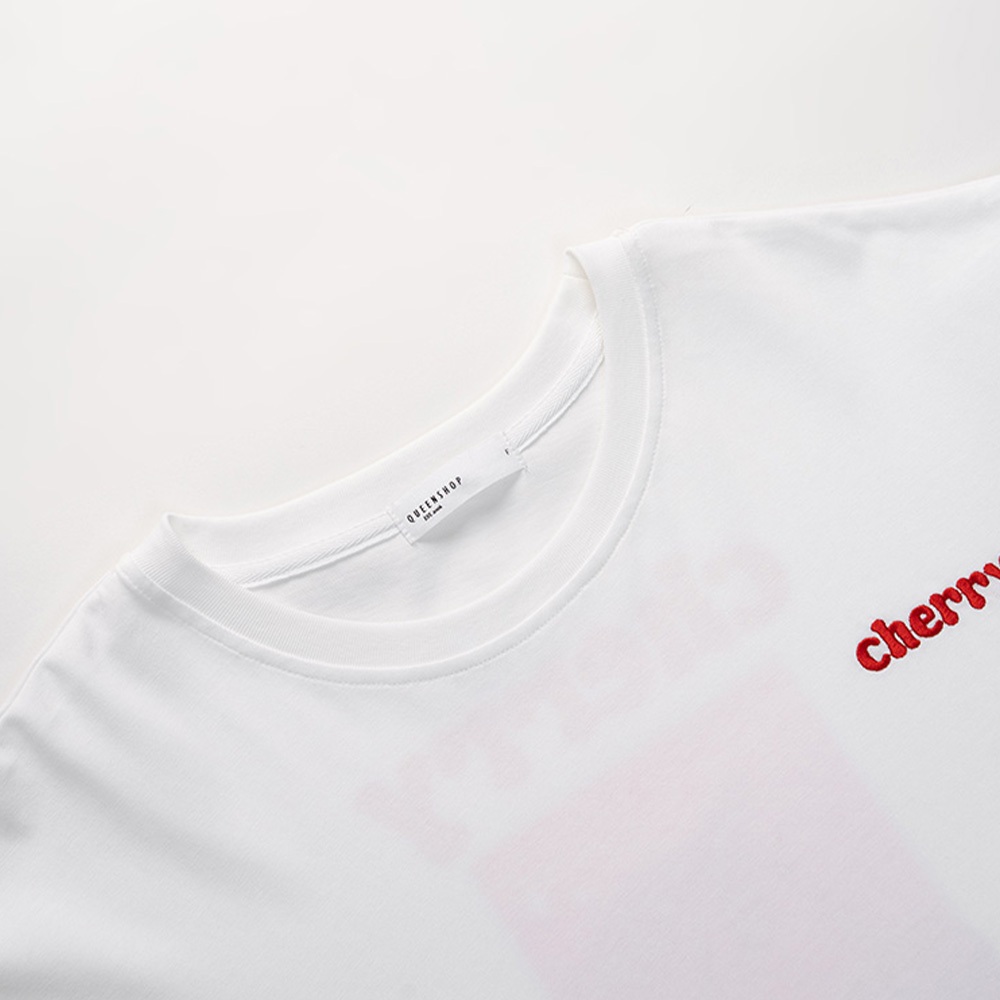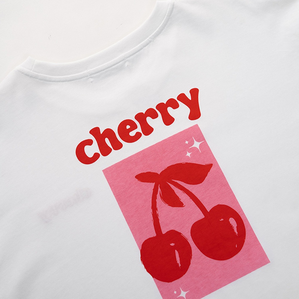 QUEENSHOP_ S 女裝 短袖 刺繡CHERRY櫻桃印圖寬版短袖上衣 現+預 【01190241】依賣場T-shirtsQUEENSHOP