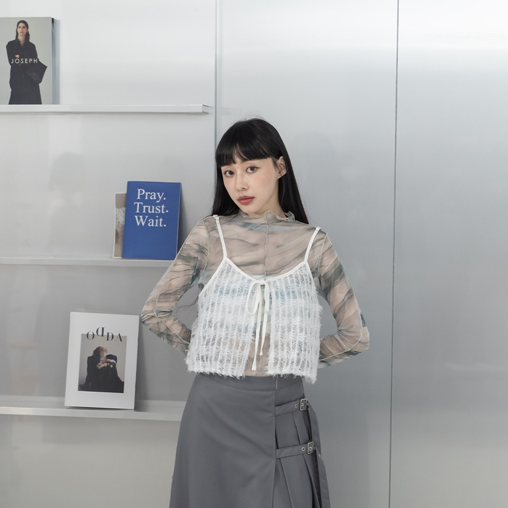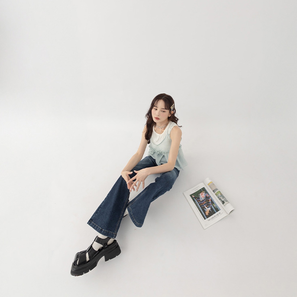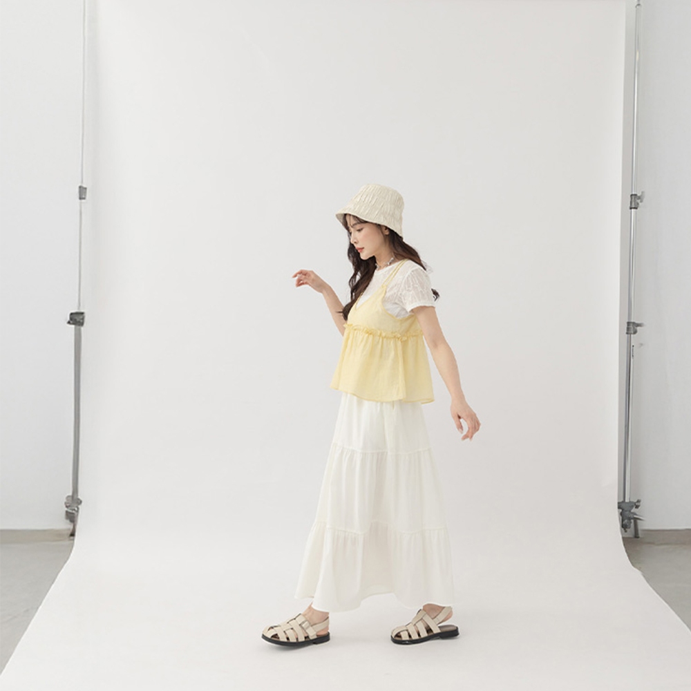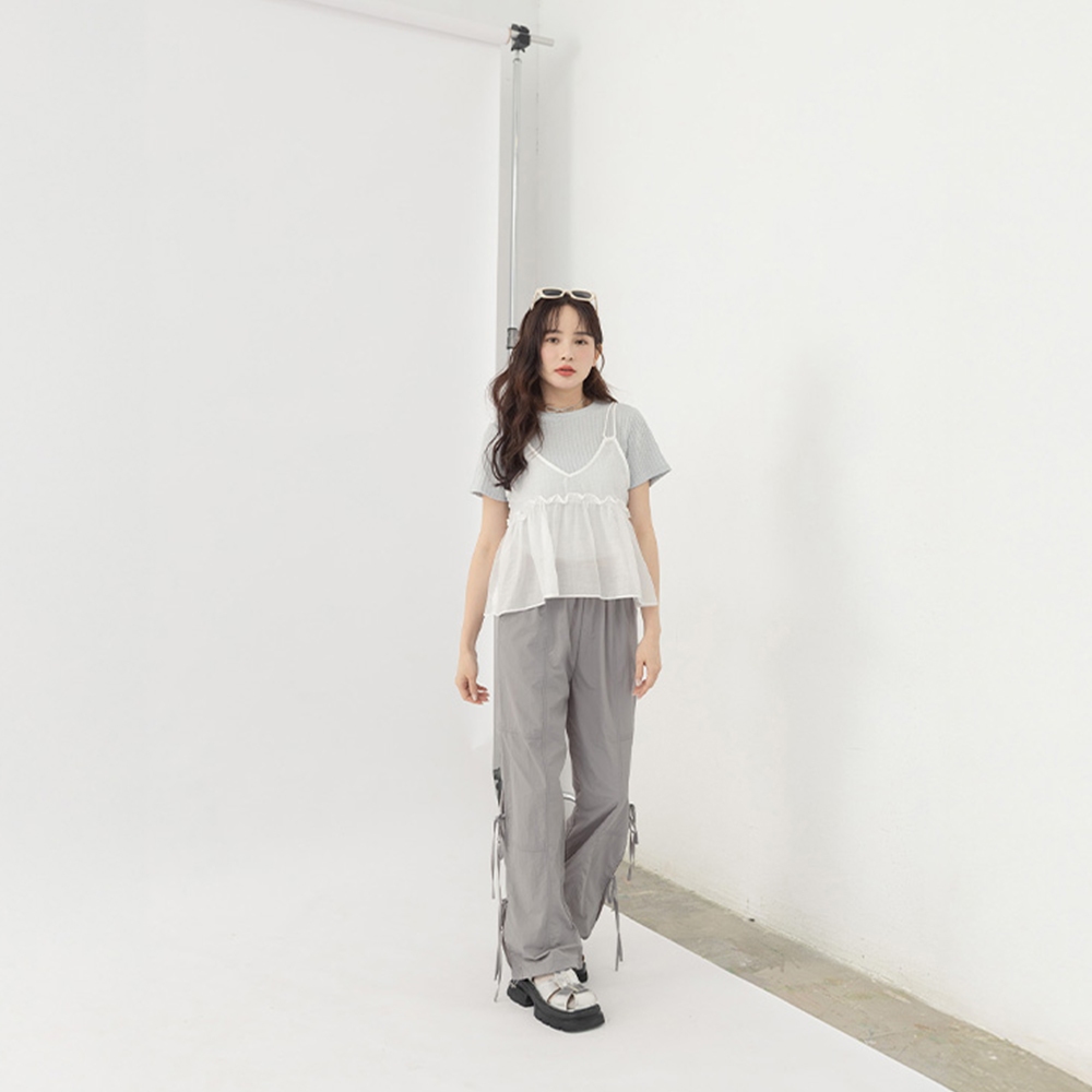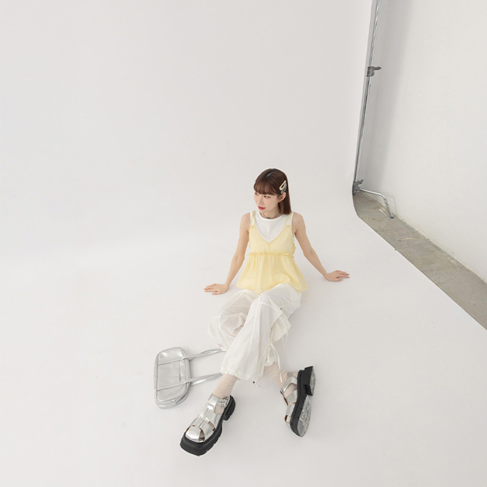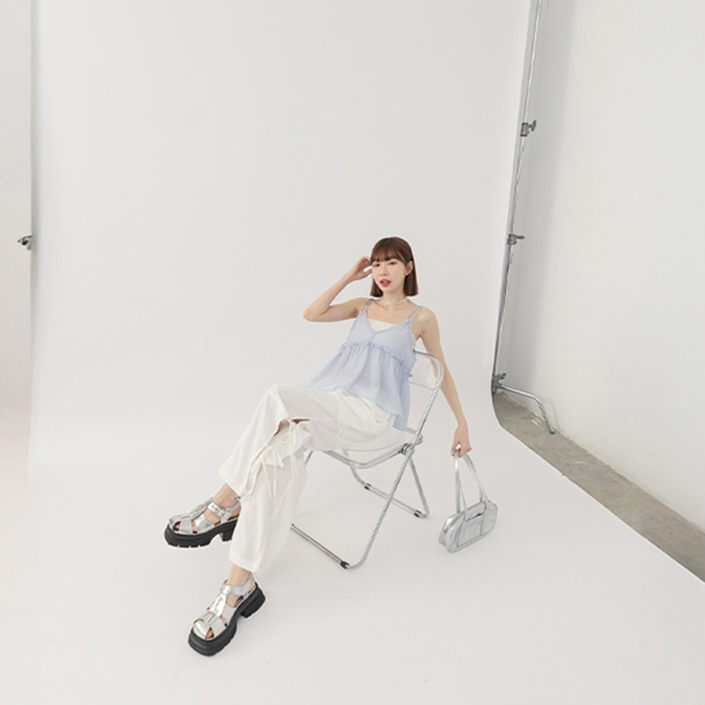 QUEENSHOP_ S 女裝 雙肩帶透膚荷葉罩衫背心 四色售 現+預 【01099031】白|藍|黃|綠Tanks & CamisolesQUEENSHOP