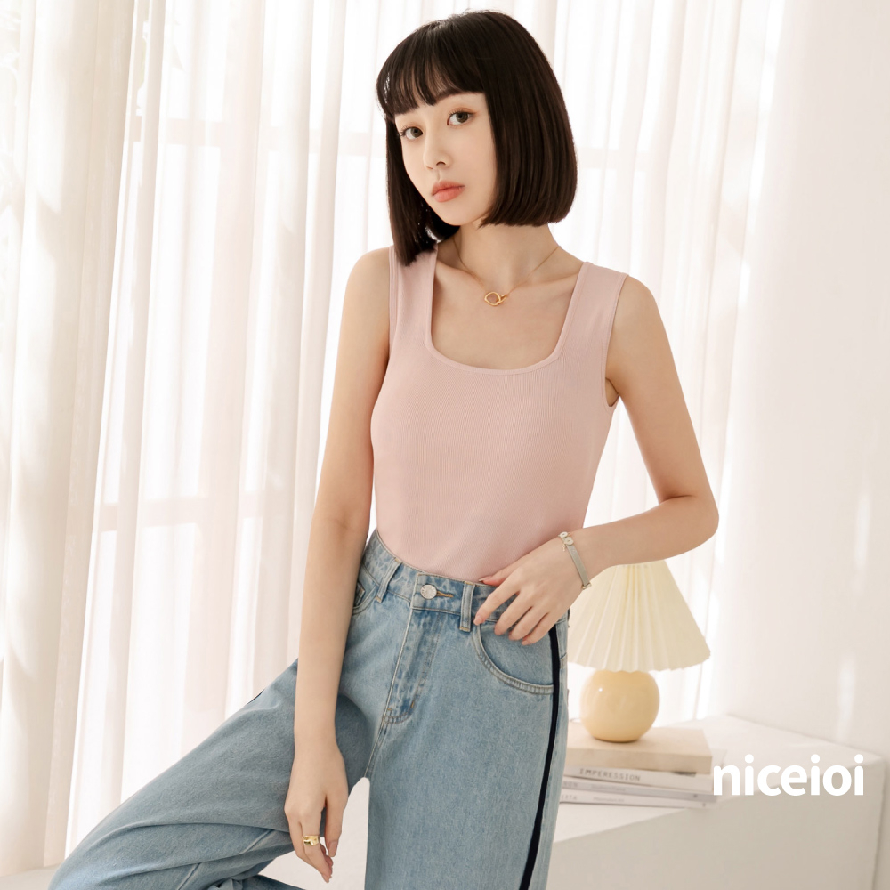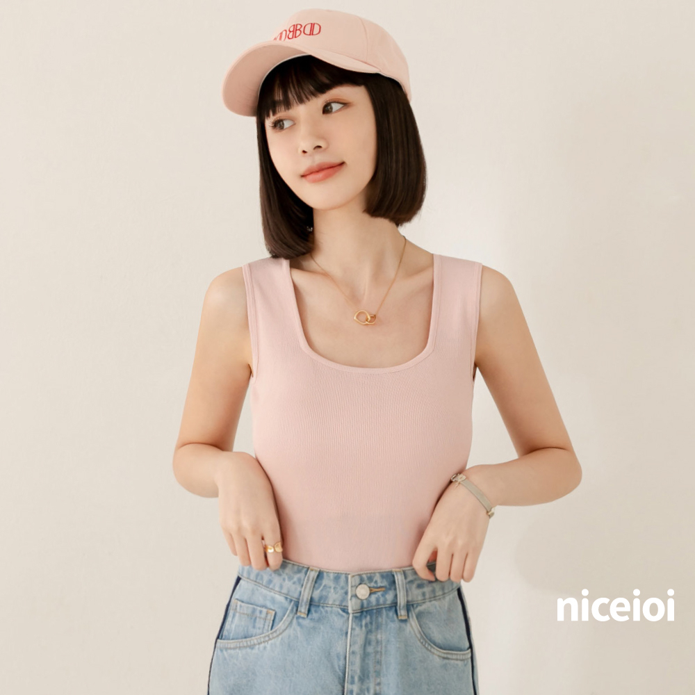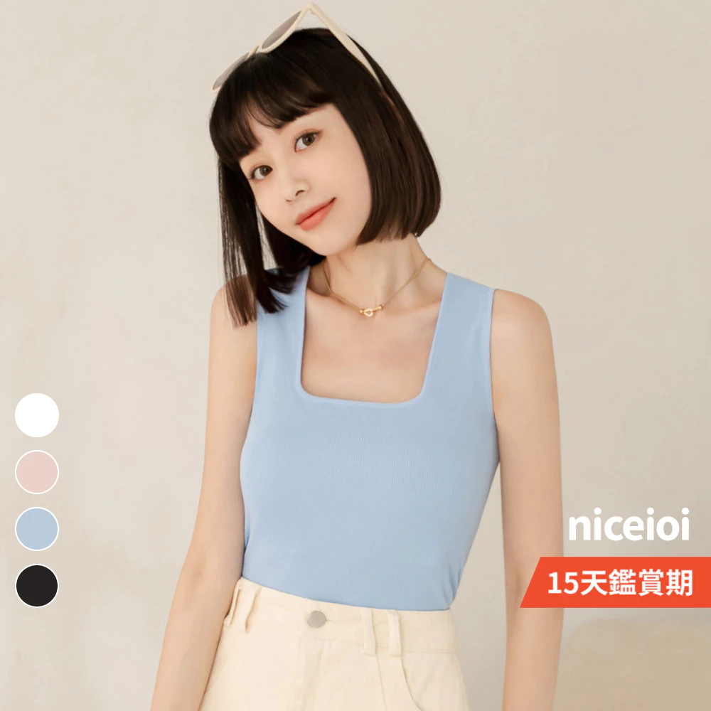 niceioi【特惠】日常氣質方領針織背心 (共4色) 女裝白,F|黑,F|粉,F|藍,FTanks & Camisolesniceioi 官方旗艦店