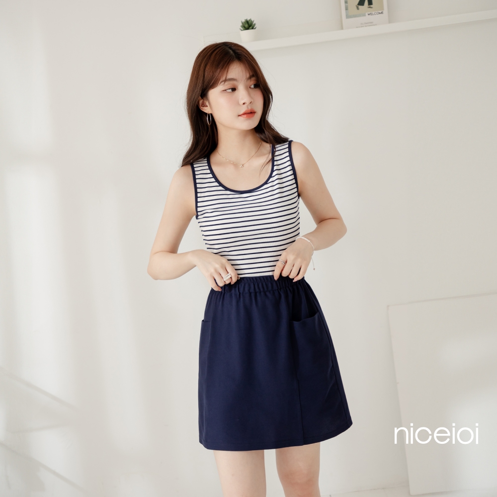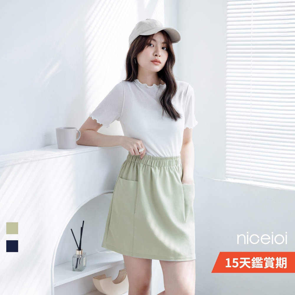 niceioi【特惠】減齡顯瘦口袋A字裙 (共2色) 女裝深藍,XL|綠,S|綠,M|綠,L|綠,XL|深藍,S|深藍,M|深藍,Lniceioi 官方旗艦店
