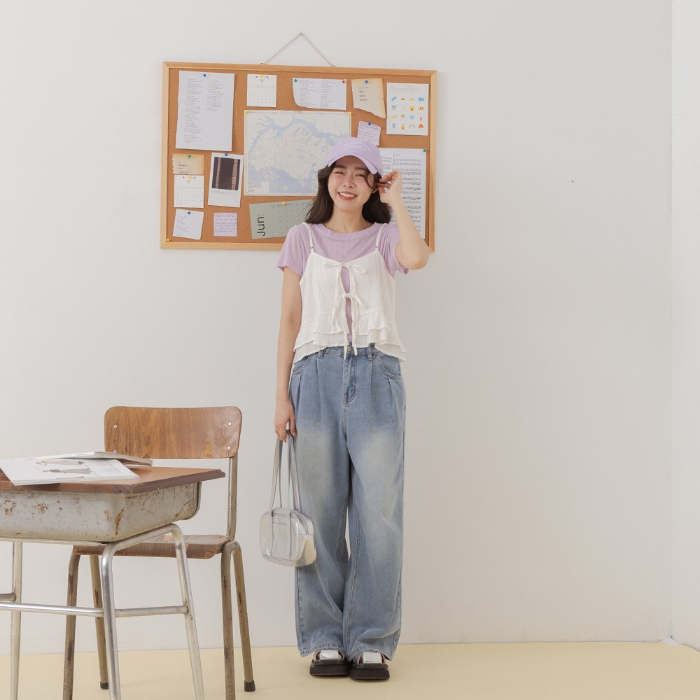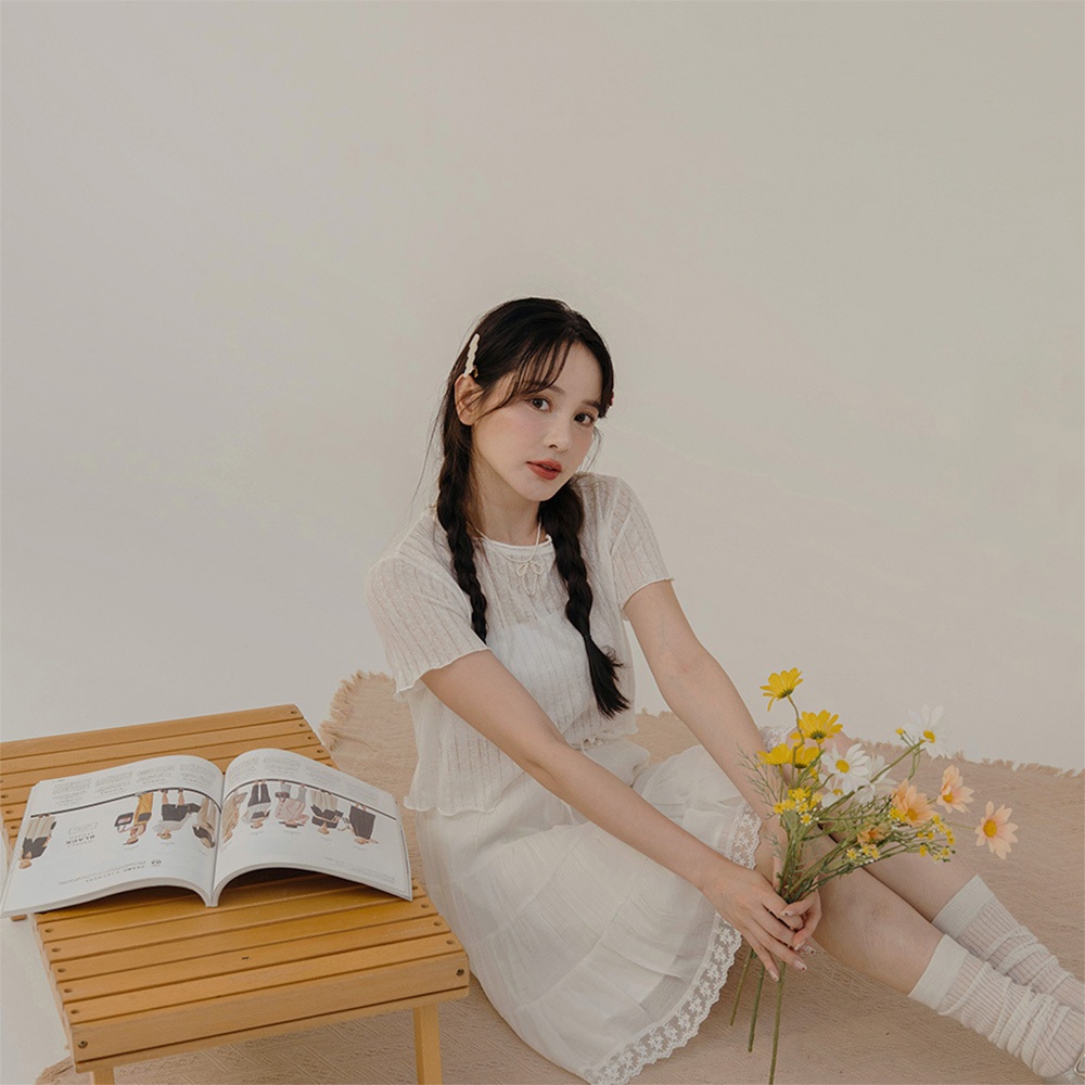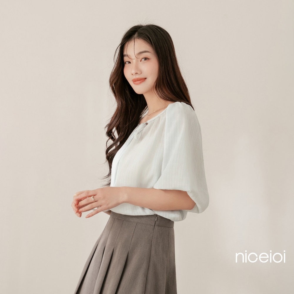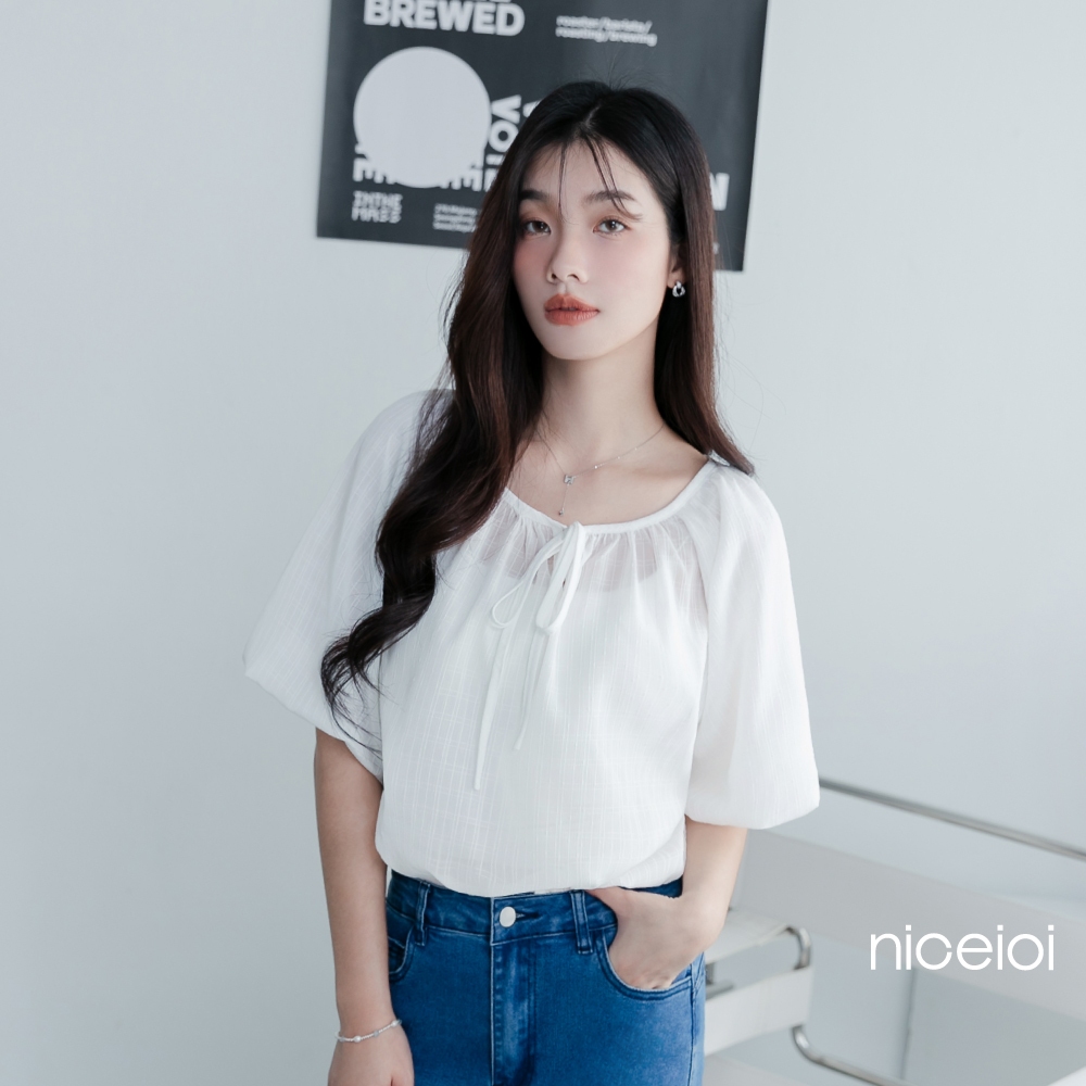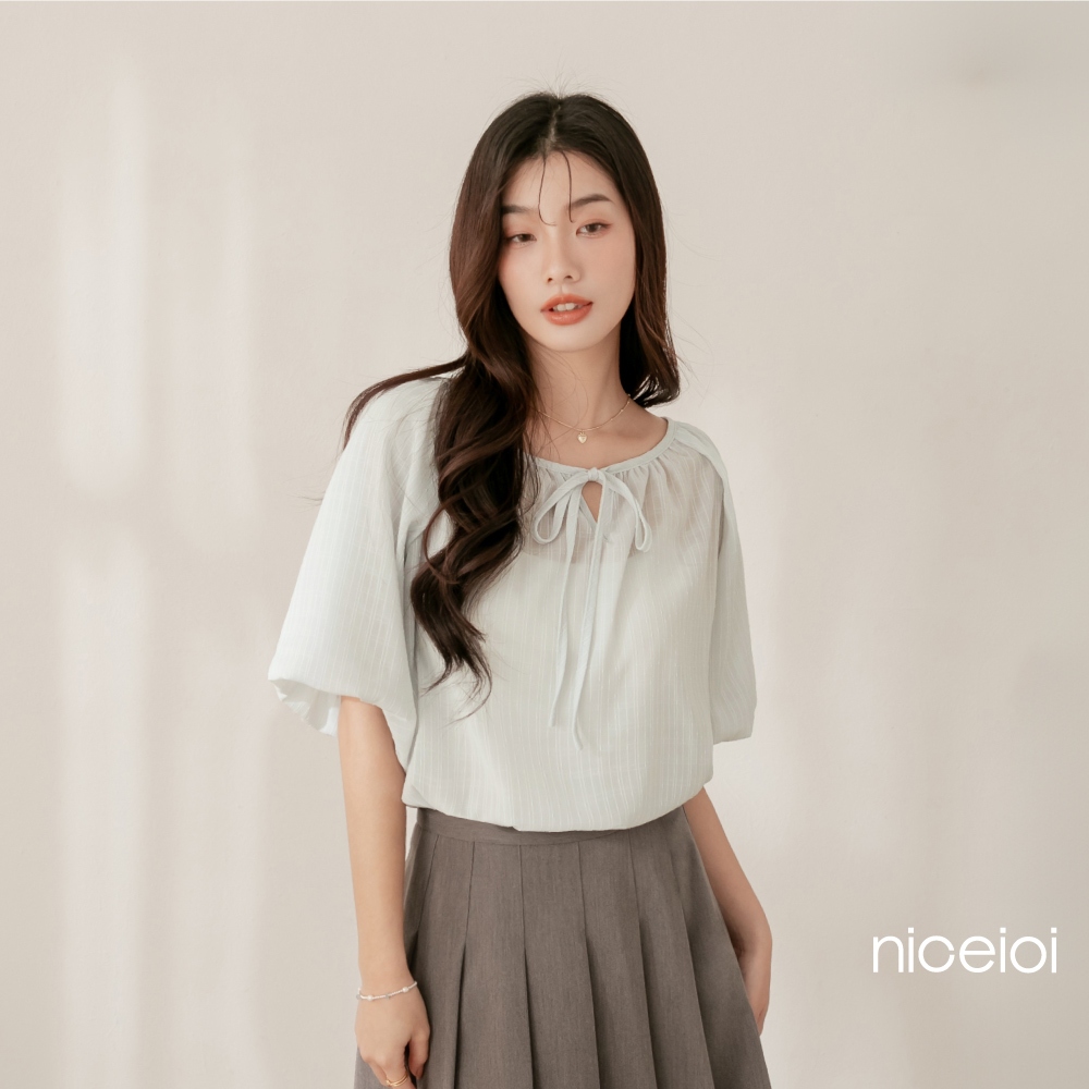 niceioi【特惠】靚麗綁帶格紋緹花上衣 (共3色) 女裝白,F|粉,F|藍綠,FT-shirtsniceioi 官方旗艦店