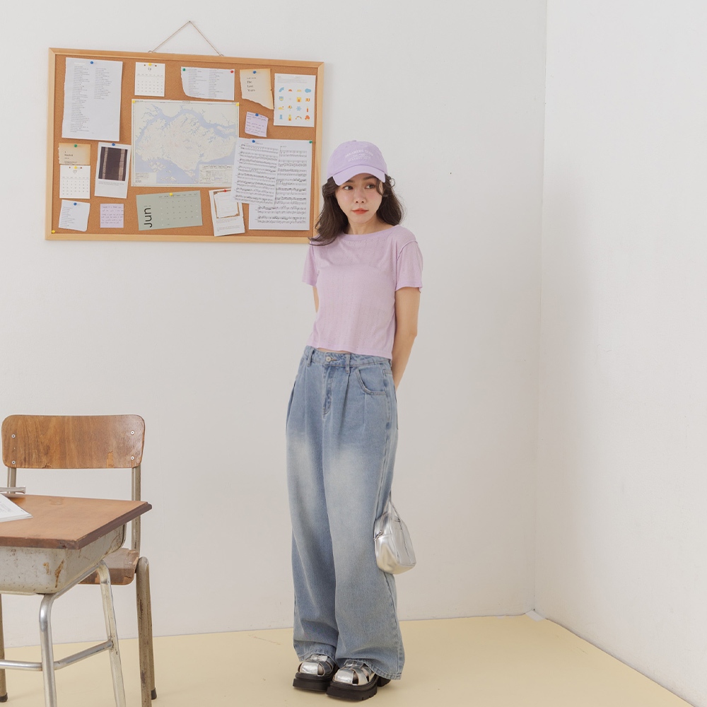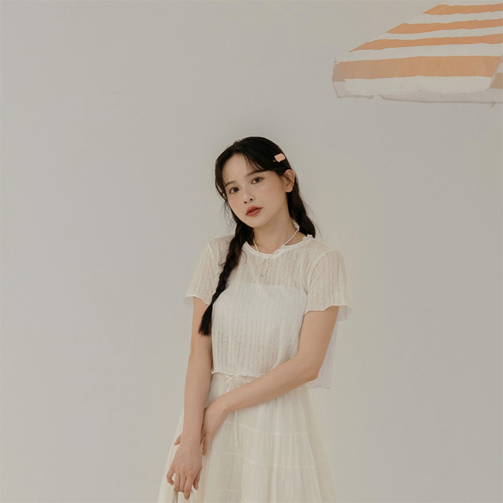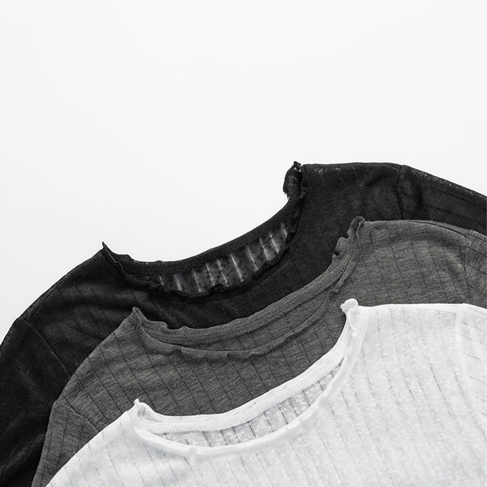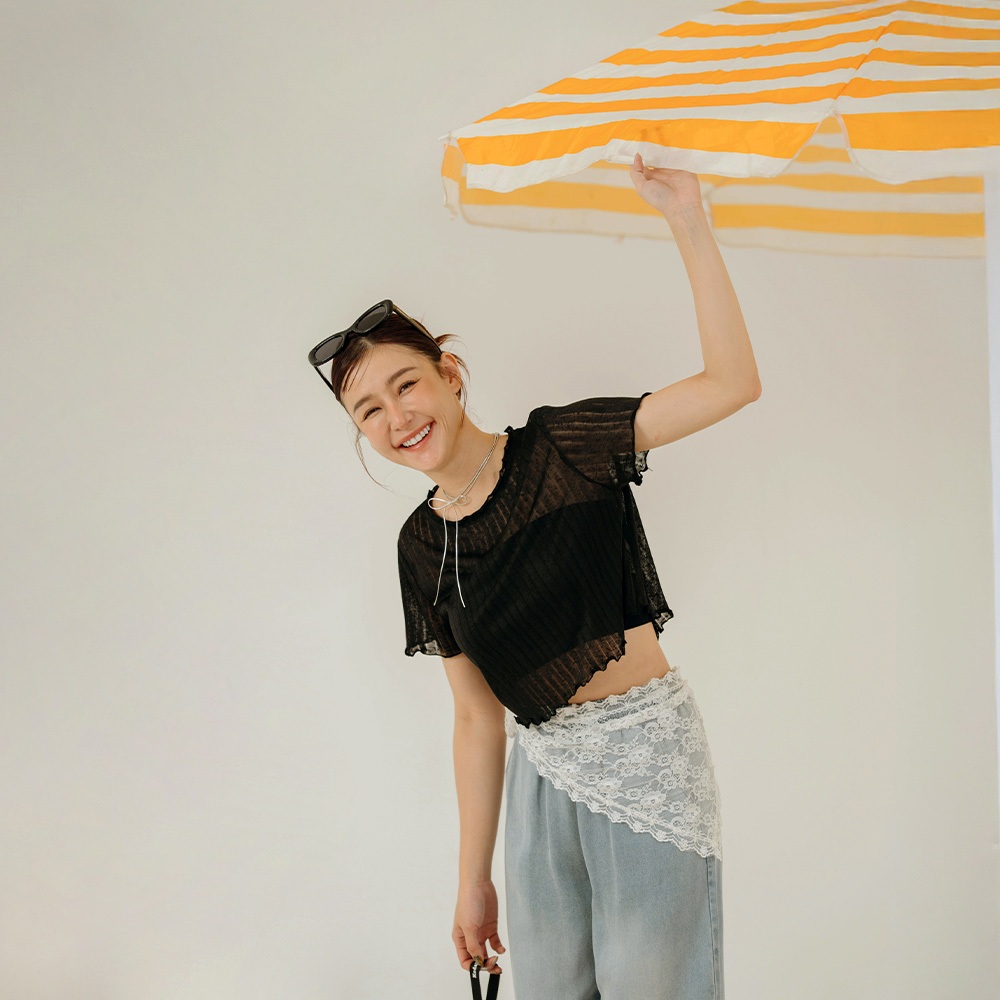 QUEENSHOP_ S 女裝 木耳邊直紋透膚短袖上衣 三色售 現+預 【01098778】黑|灰|白T-shirtsQUEENSHOP