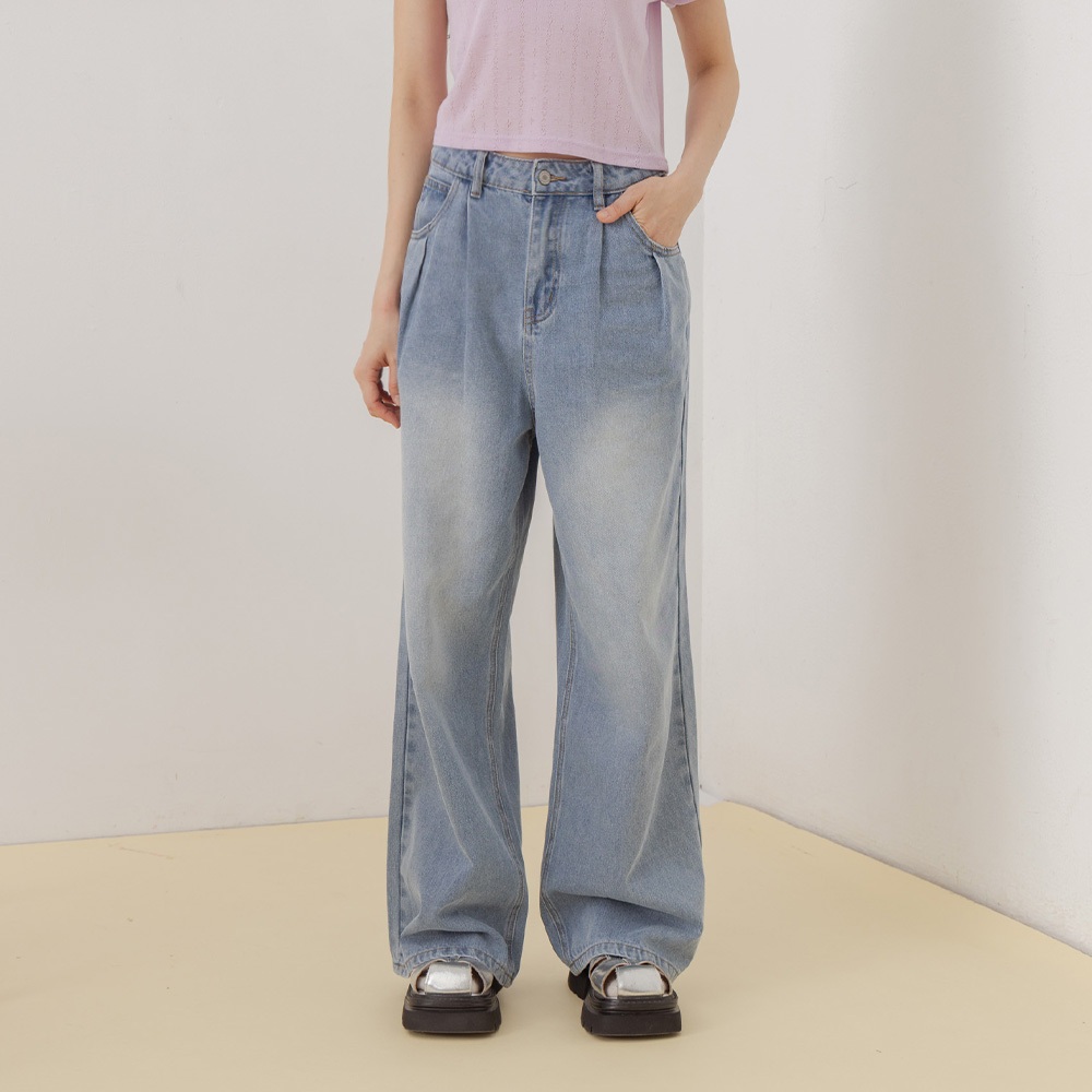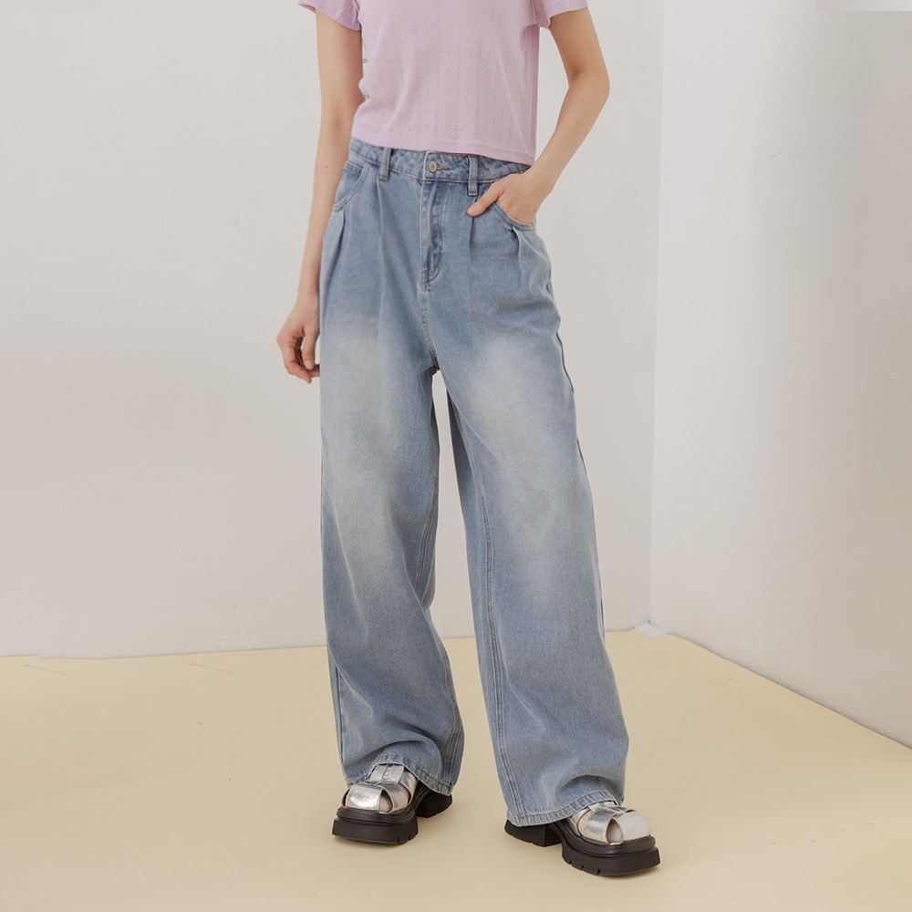 QUEENSHOP_ S 女裝 簡約素面水洗牛仔長褲 S/M/L 現+預 【04011804】S|M|LQUEENSHOP