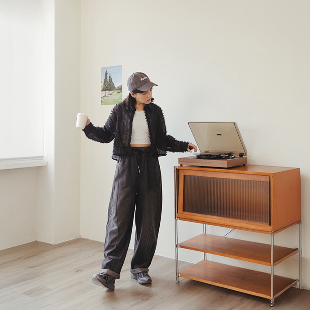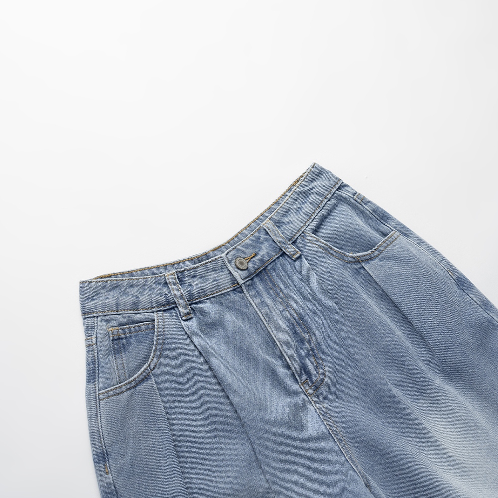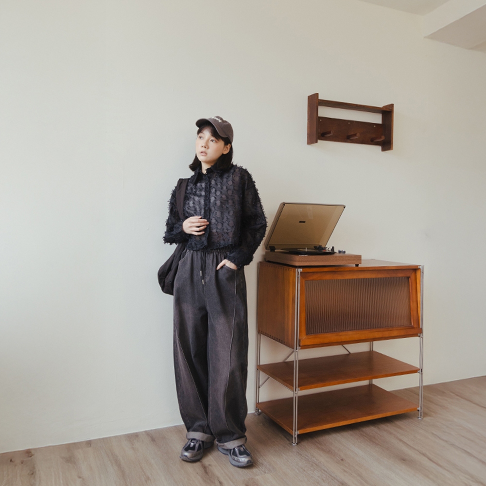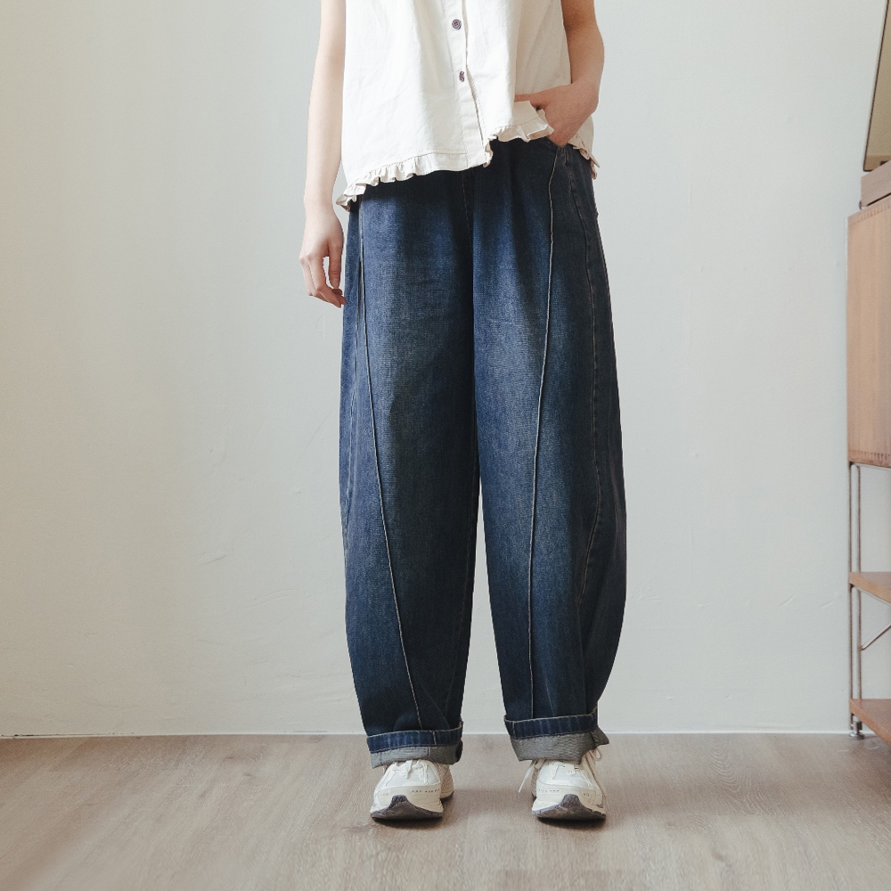 QUEENSHOP_ S 女裝 刷色立體壓線繭型牛仔褲 兩色售 現+預 【04011823】黑|藍PantsQUEENSHOP