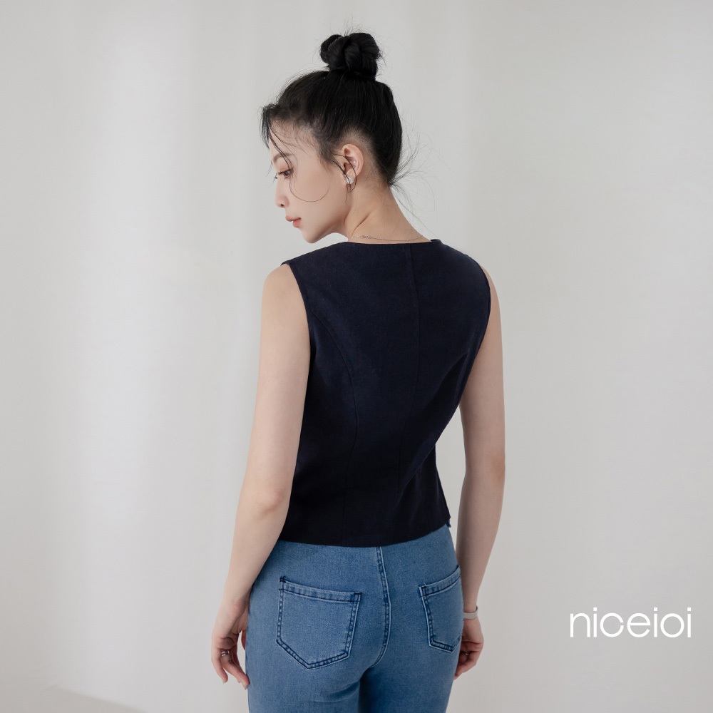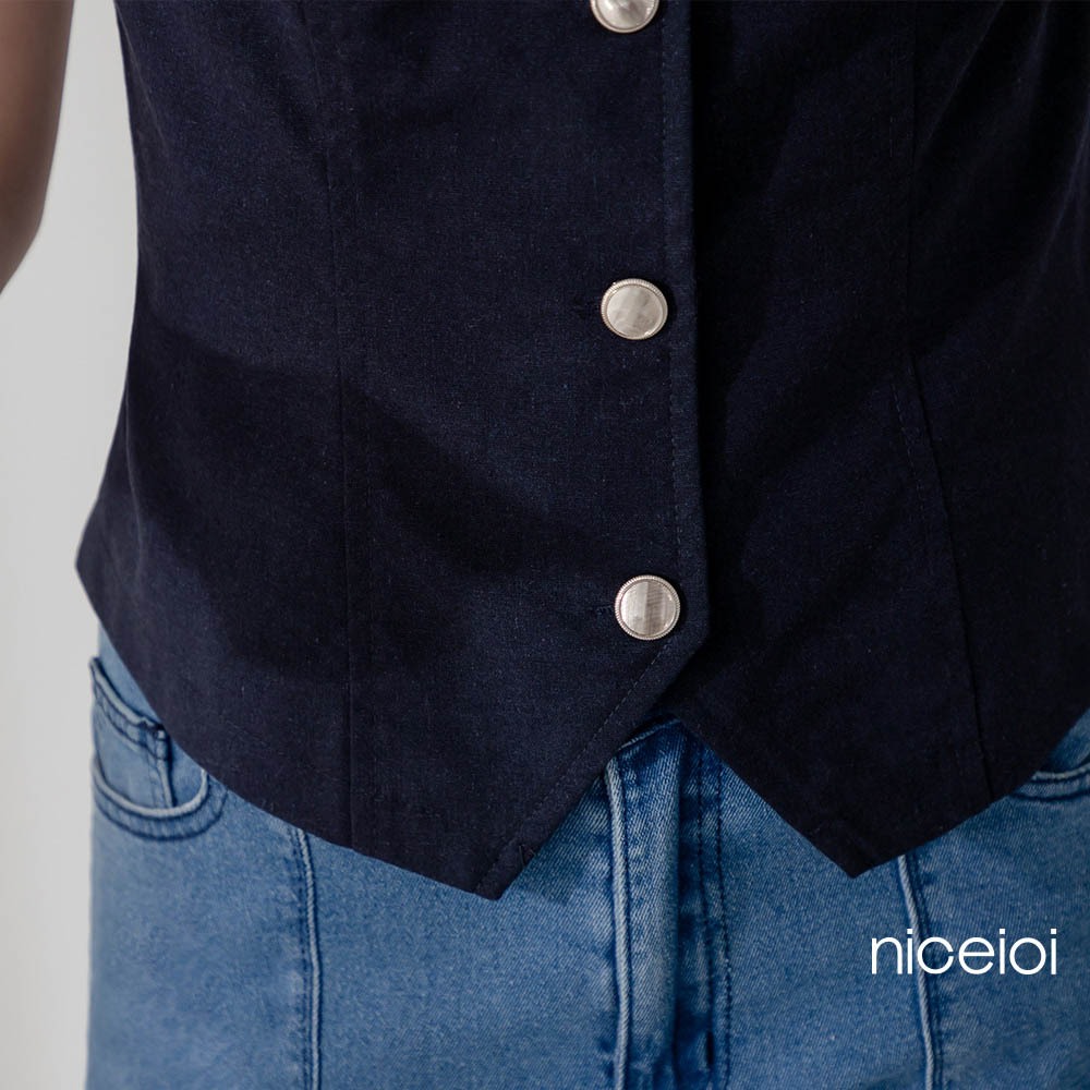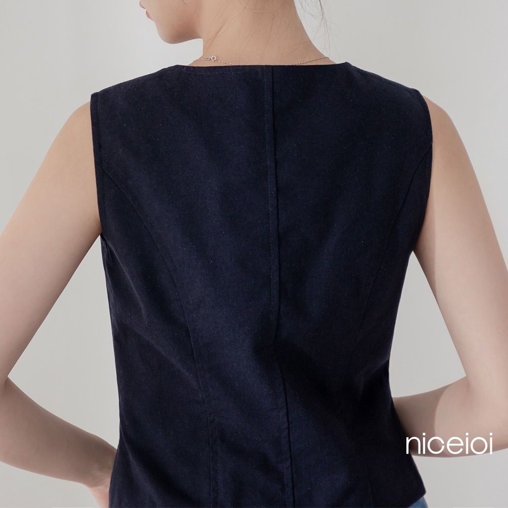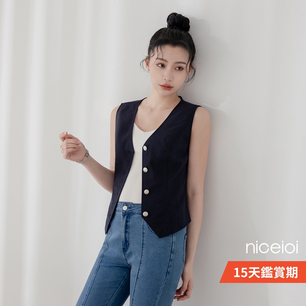 niceioi 背心外套 背心 排釦背心 深藍色 [法式文青V領排釦背心] 女裝v領背心外套-深藍,S|v領背心外套-深藍,M|v領背心外套-深藍,LOthersniceioi 官方旗艦店