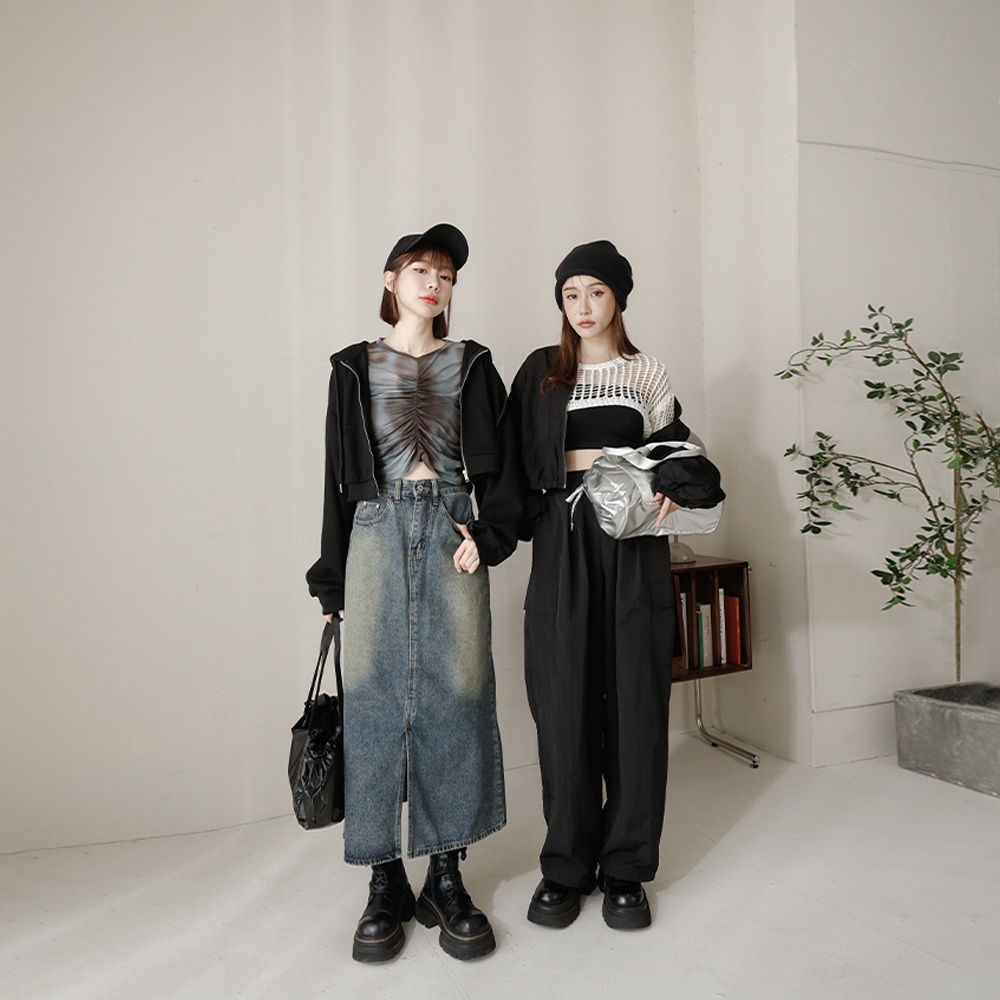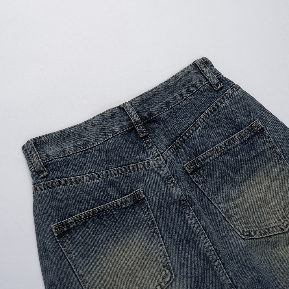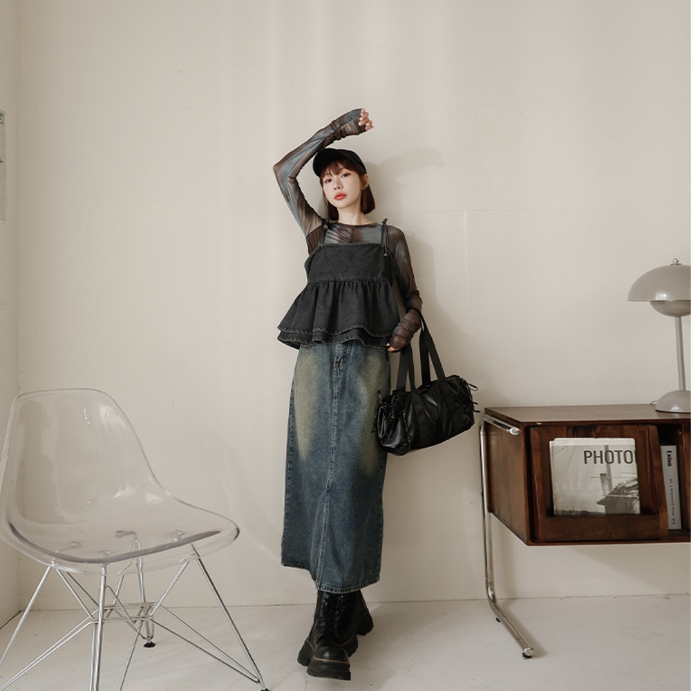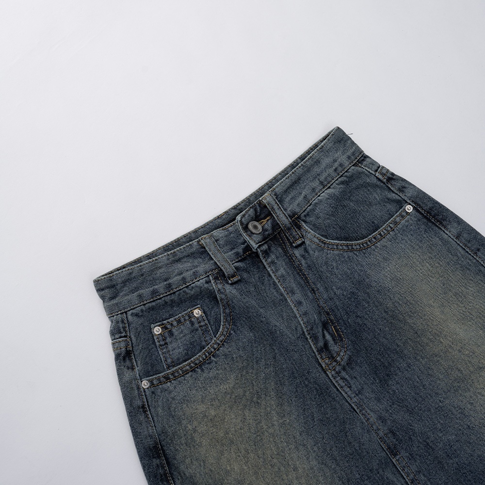 QUEENSHOP_ S 女裝 前中開衩洗舊感牛仔長裙 S/M/L 現+預 【03021474】S|M|LQUEENSHOP