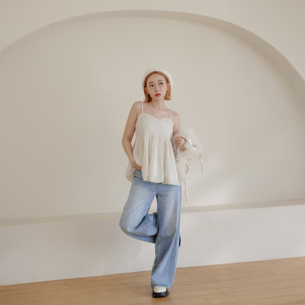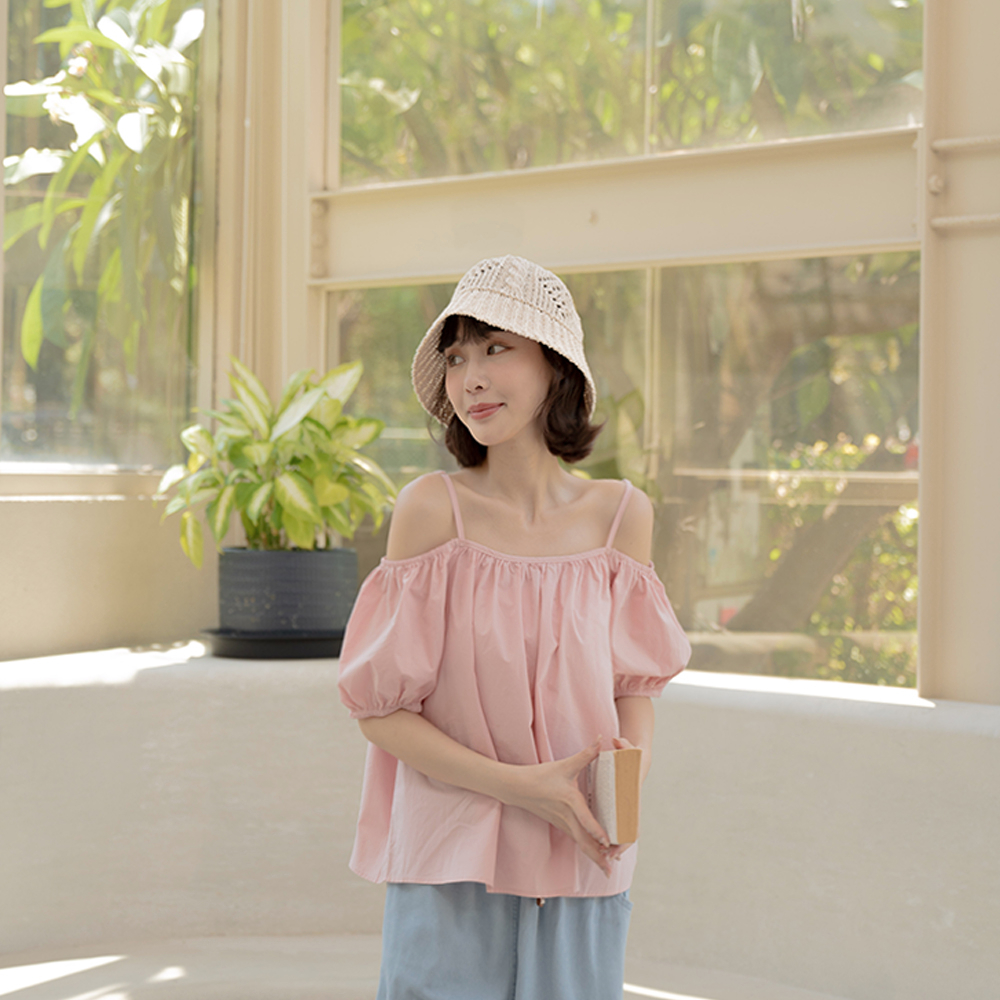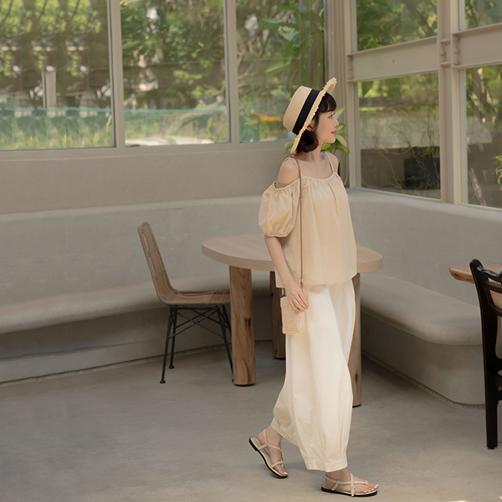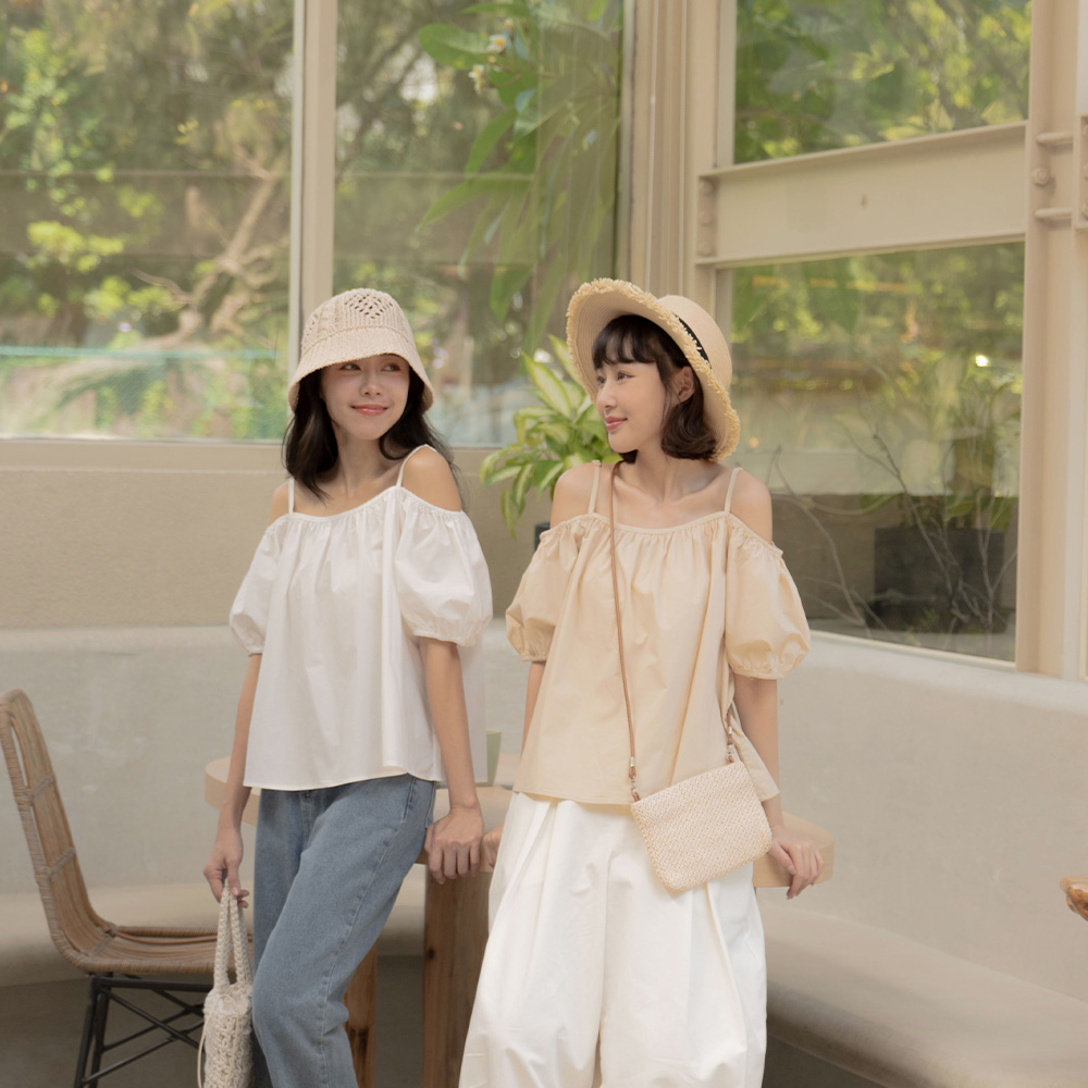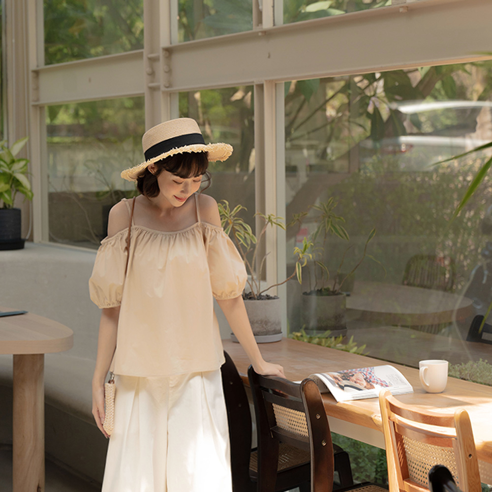 QUEENSHOP_ S 女裝 平口澎袖傘擺設計細肩上衣 三色售 現+預【01097780】白|粉|卡其Tanks & CamisolesQUEENSHOP