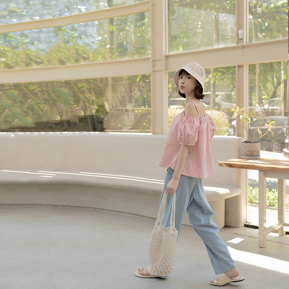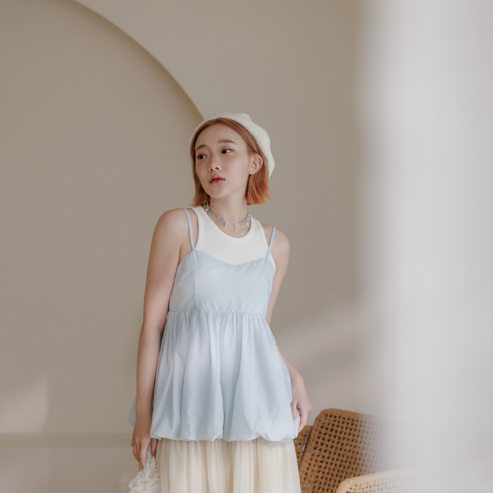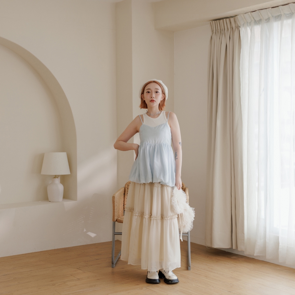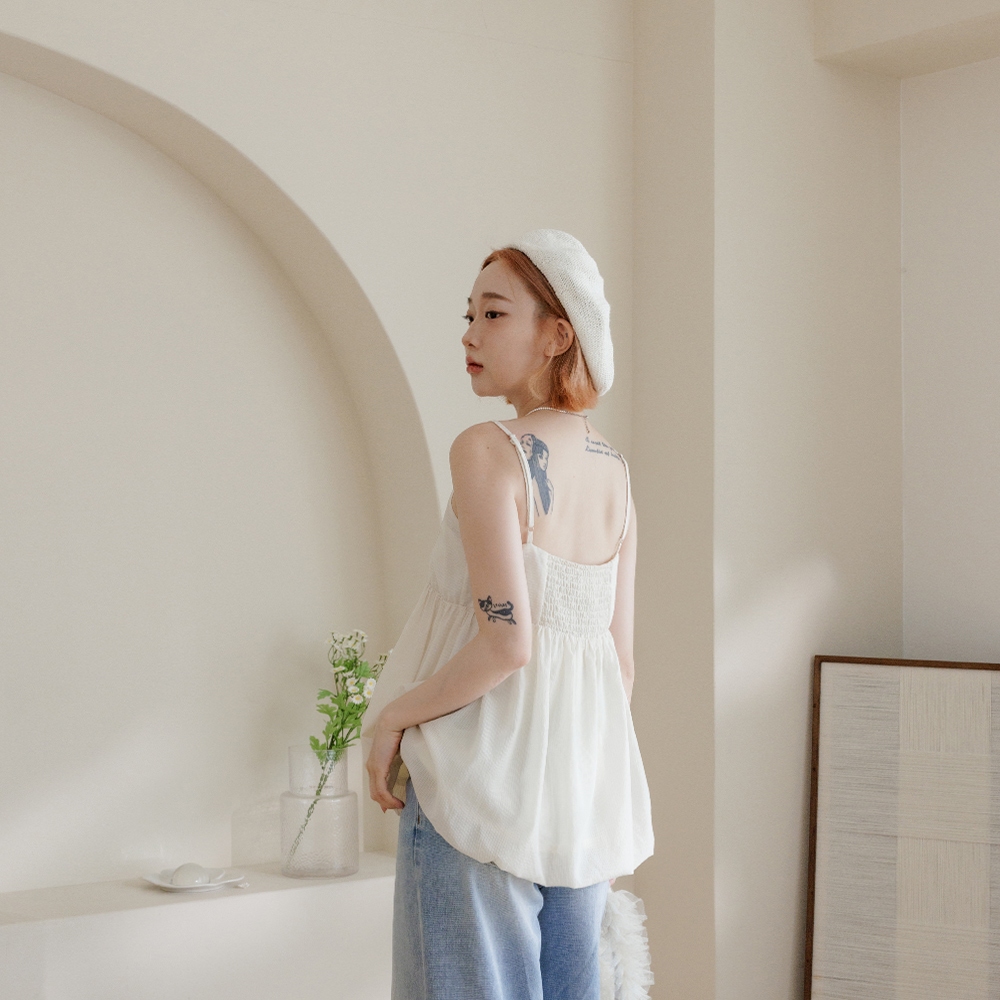 QUEENSHOP_ S 女裝 平口澎袖傘擺設計細肩上衣 三色售 現+預【01097780】白|粉|卡其Tanks & CamisolesQUEENSHOP