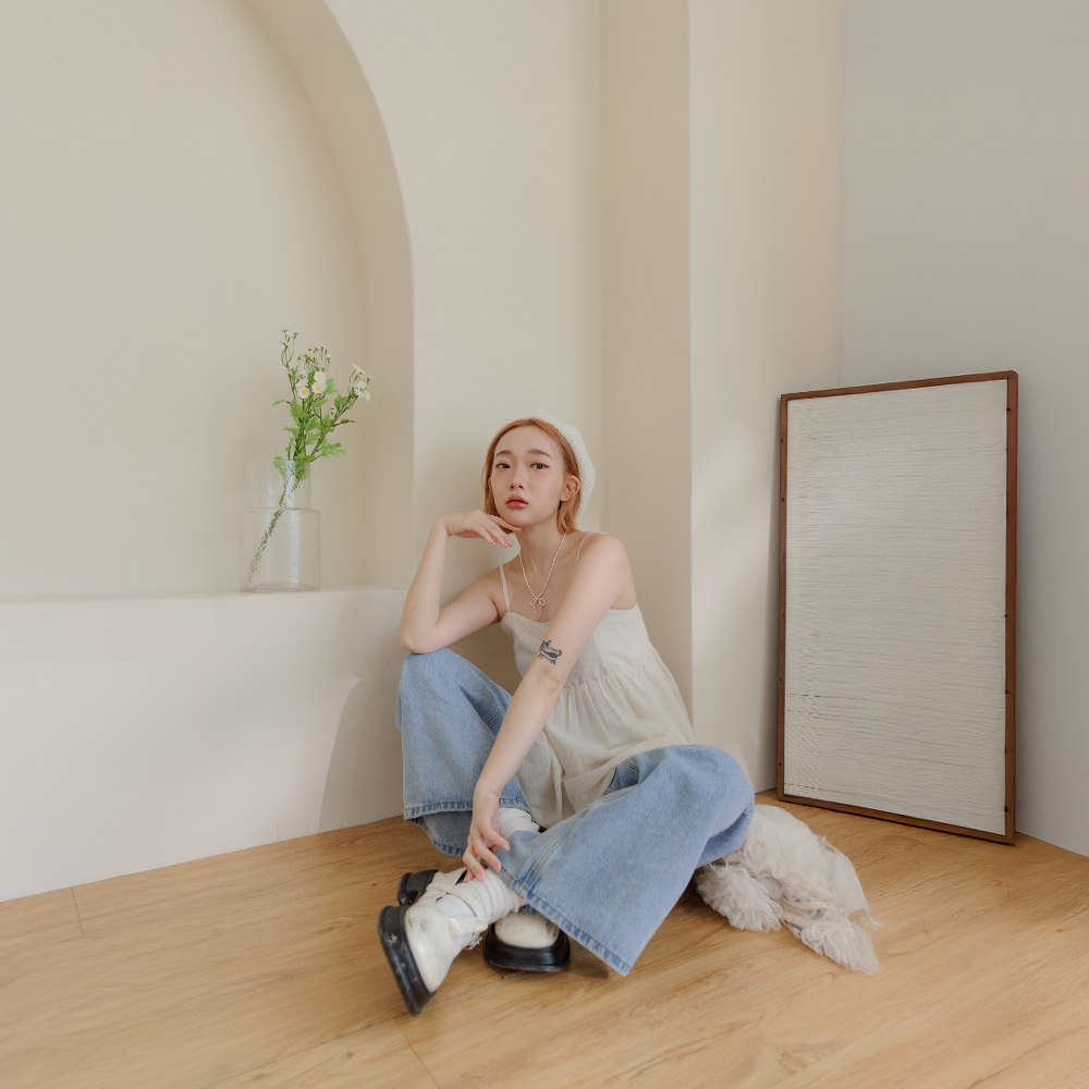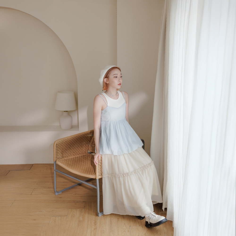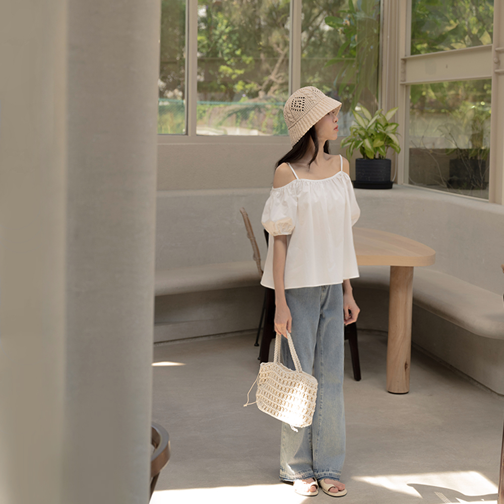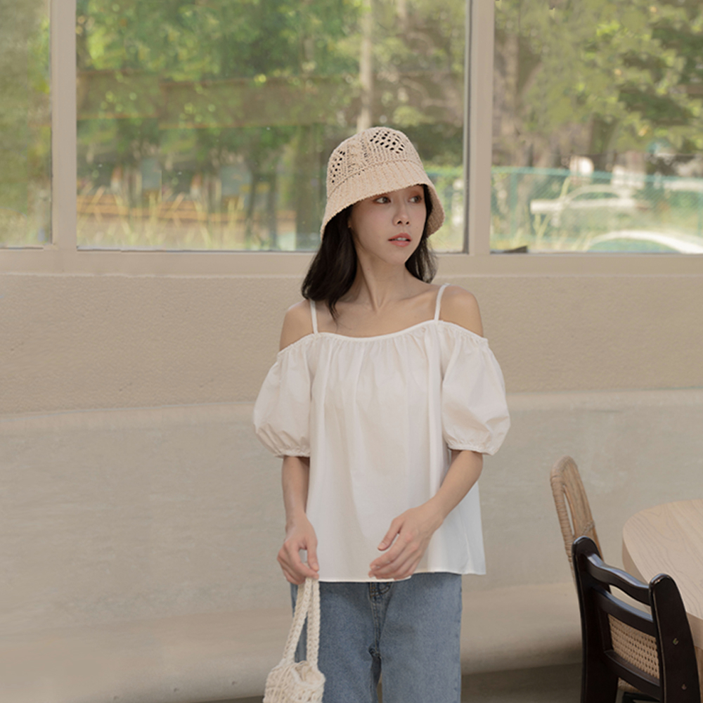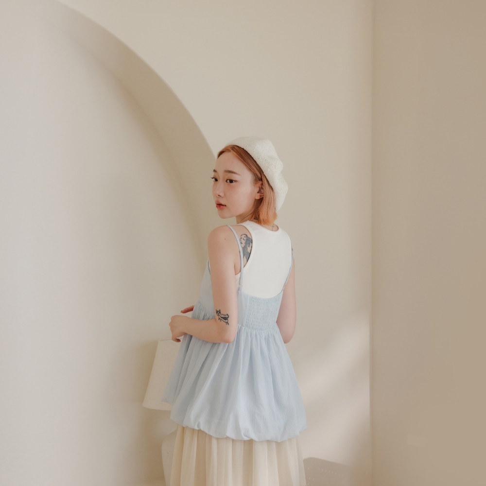 QUEENSHOP_ S 女裝 平口澎袖傘擺設計細肩上衣 三色售 現+預【01097780】白|粉|卡其Tanks & CamisolesQUEENSHOP