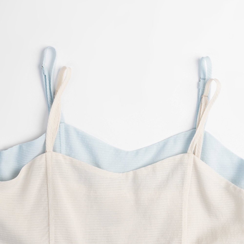 QUEENSHOP_ S 女裝 細條紋下擺花苞造型細肩背心 兩色售 現+預 【01150445】杏|水藍Tanks & CamisolesQUEENSHOP