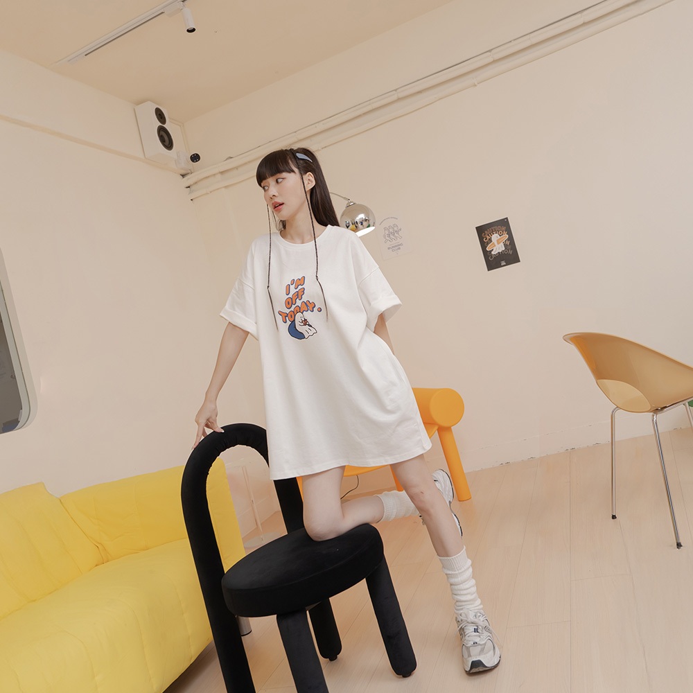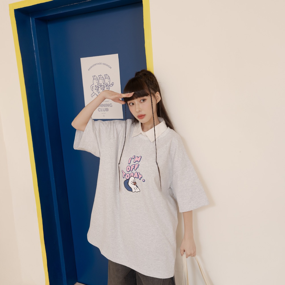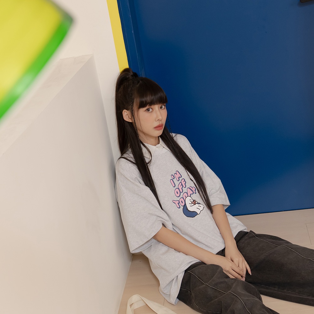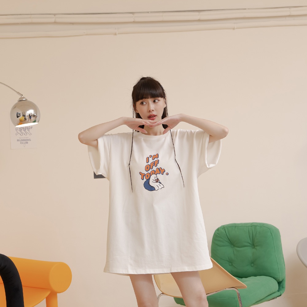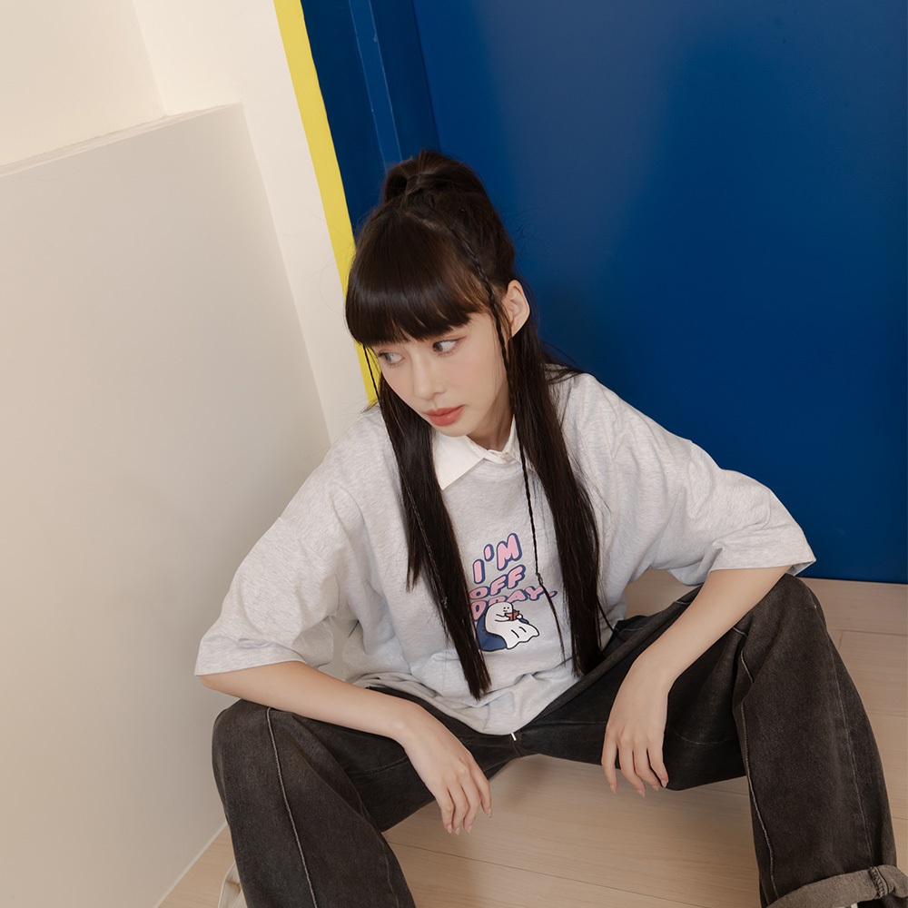 QUEENSHOP_ S 女裝 P/D幽靈 I AM OFF TODAY印圖上衣 兩色售 現+預 【01190253】灰|白T-shirtsQUEENSHOP