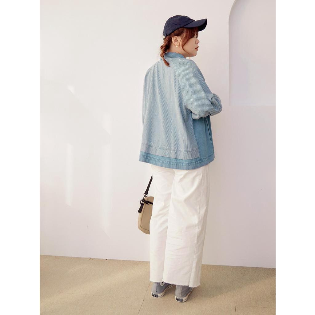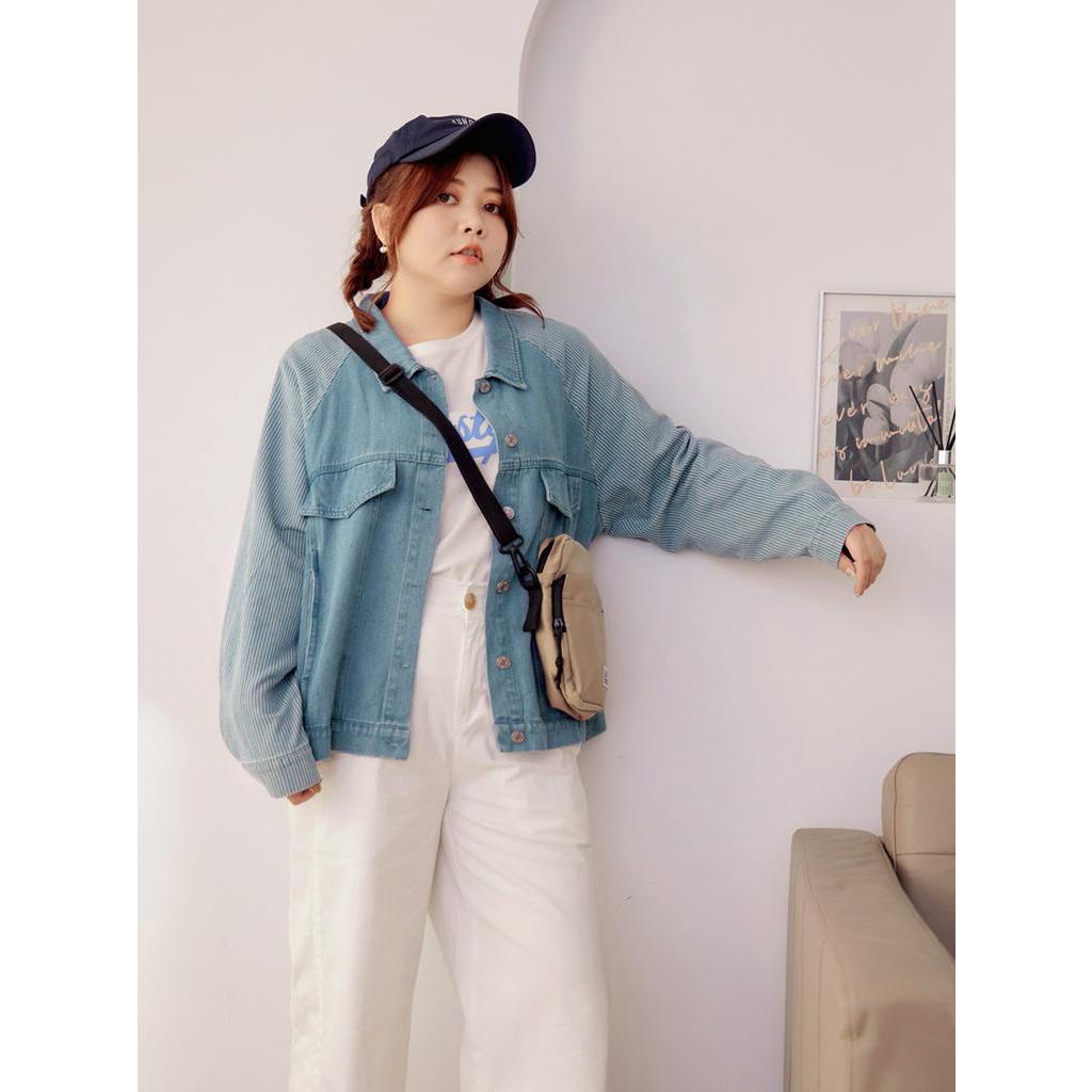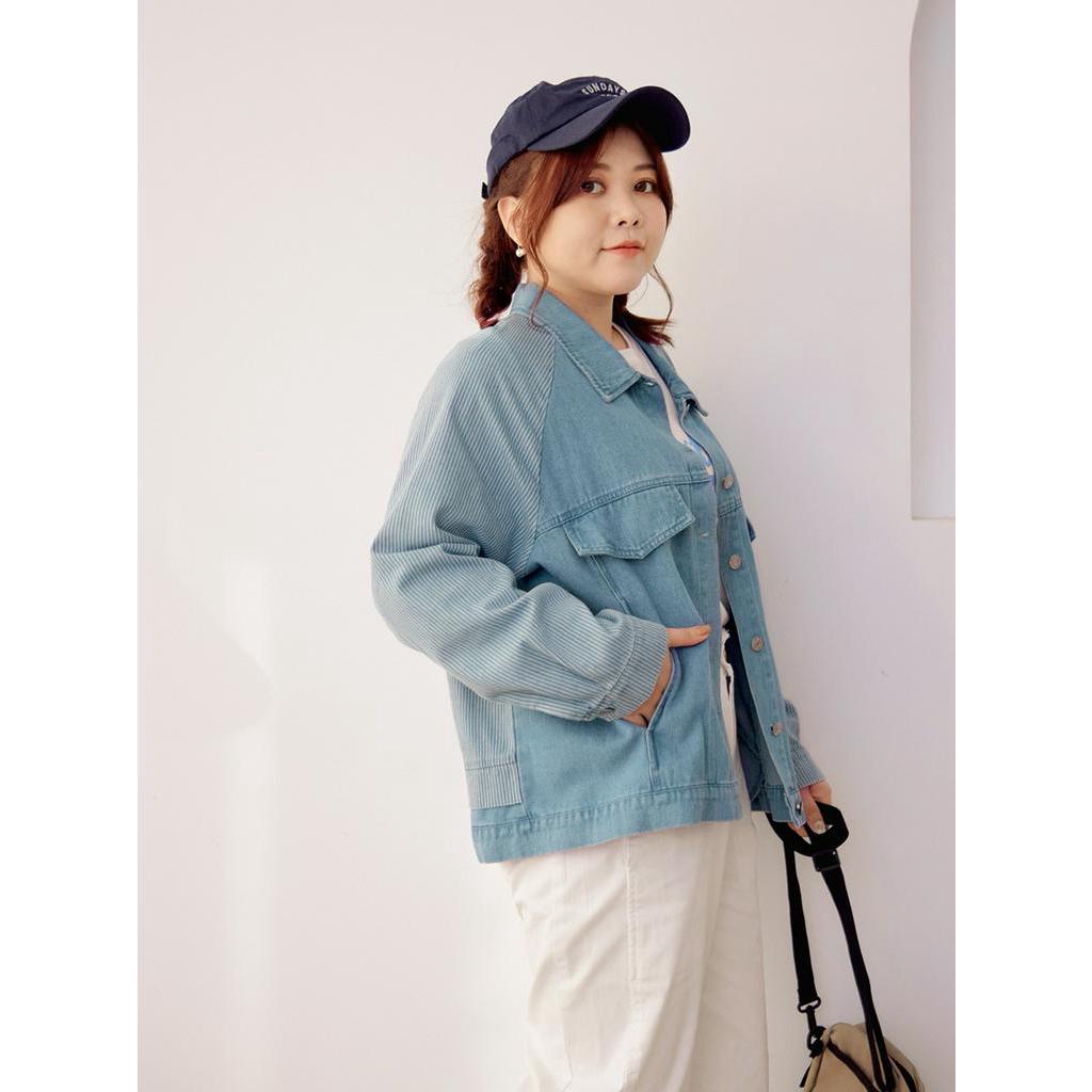 OB嚴選 雲朵自訂款-高含棉條紋拼接牛仔外套 《EA3419》大尺碼/現貨/女裝深丹寧藍,2L|深丹寧藍,3L|淺丹寧藍,XL|淺丹寧藍,2L|淺丹寧藍,3L|深丹寧藍,XLWinter Jackets & CoatsOB嚴選官方旗艦店