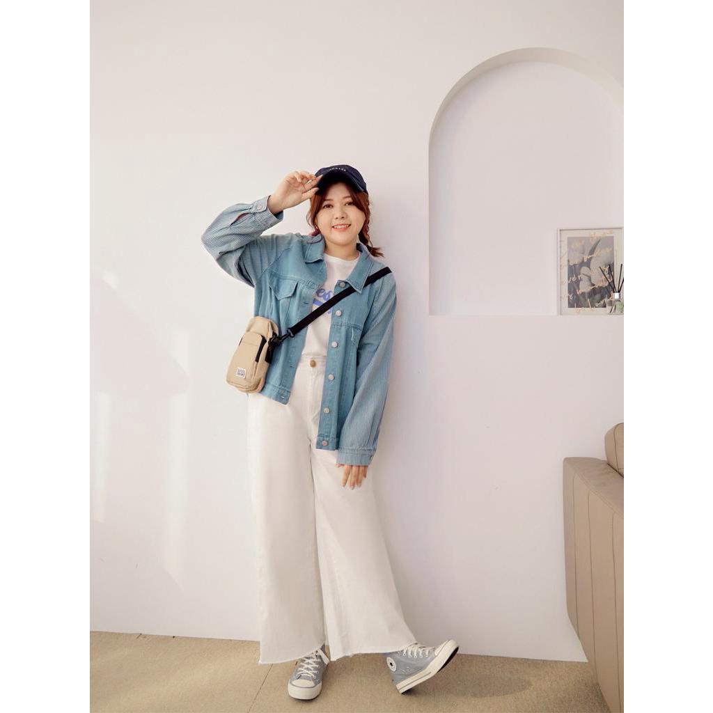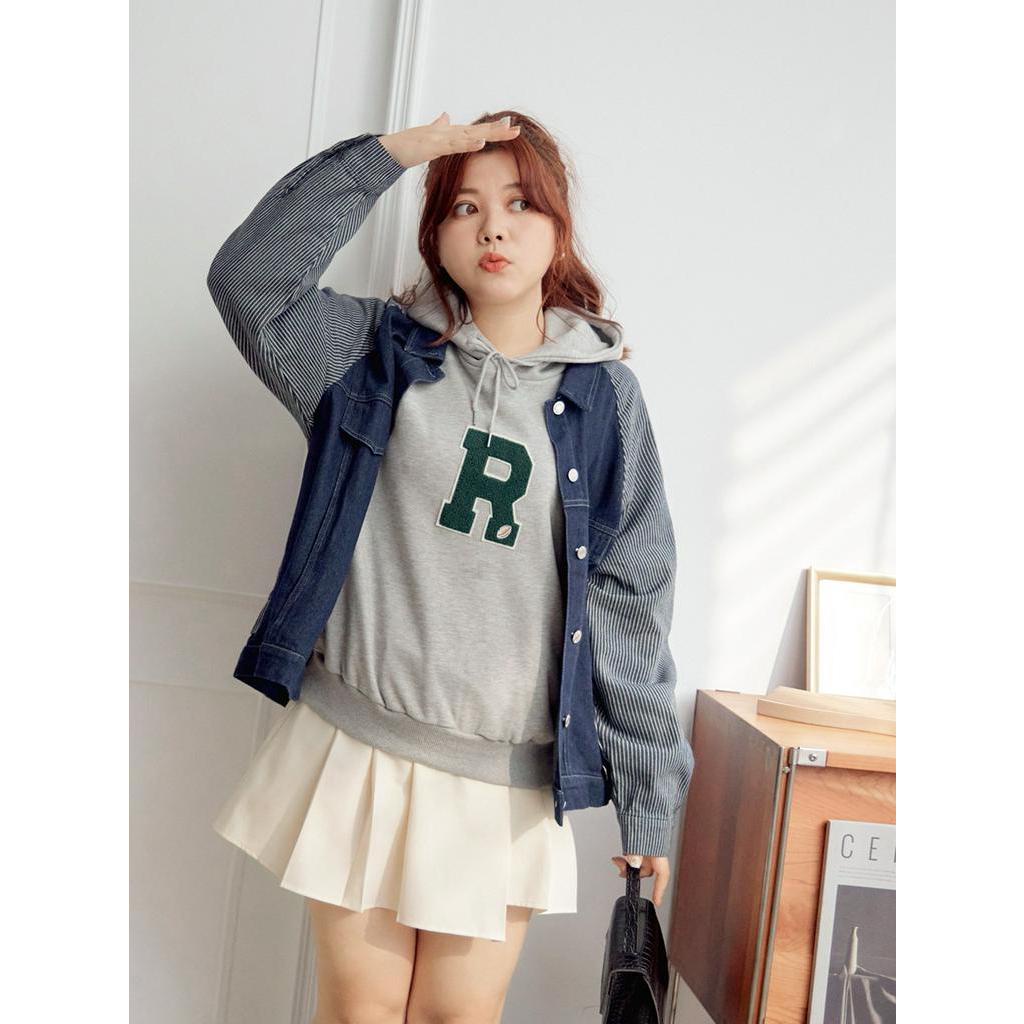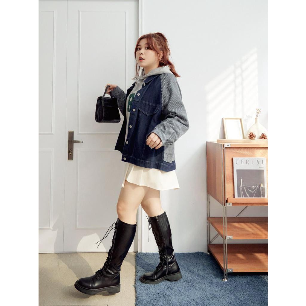 OB嚴選 雲朵自訂款-高含棉條紋拼接牛仔外套 《EA3419》大尺碼/現貨/女裝深丹寧藍,2L|深丹寧藍,3L|淺丹寧藍,XL|淺丹寧藍,2L|淺丹寧藍,3L|深丹寧藍,XLWinter Jackets & CoatsOB嚴選官方旗艦店