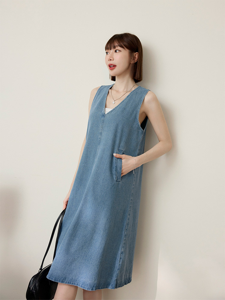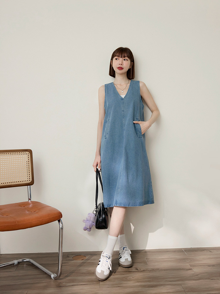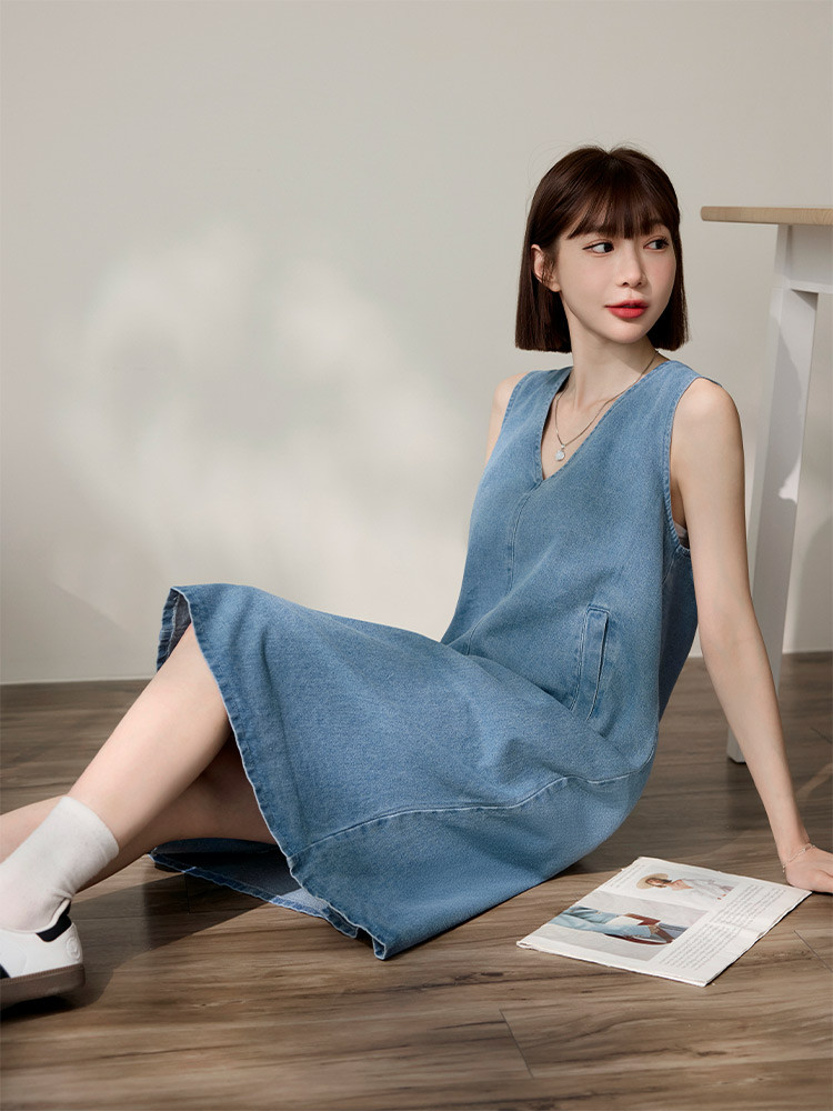 OB嚴選 純棉V領無袖牛仔短洋裝 《DA10471》淺丹寧藍,S|淺丹寧藍,M|淺丹寧藍,L|淺丹寧藍,XL|淺丹寧藍,2L|淺丹寧藍,3L|深丹寧藍,S|深丹寧藍,M|深丹寧藍,L|深丹寧藍,XL|深丹寧藍,2L|深丹寧藍,3LOB嚴選官方旗艦店