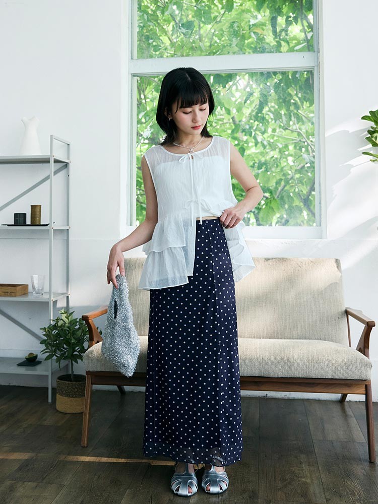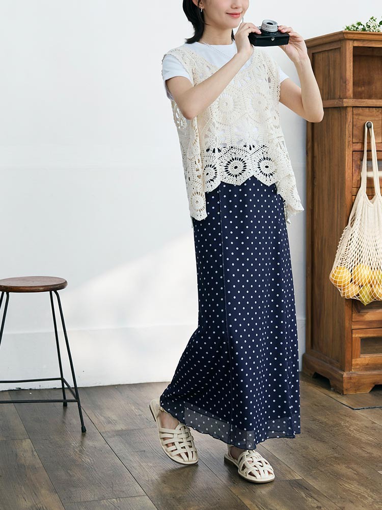 OB嚴選 日系波點網紗長裙 《CA3108》深藍,M|深藍,L|深藍,XL|深藍,2L|深藍,3LOB嚴選官方旗艦店