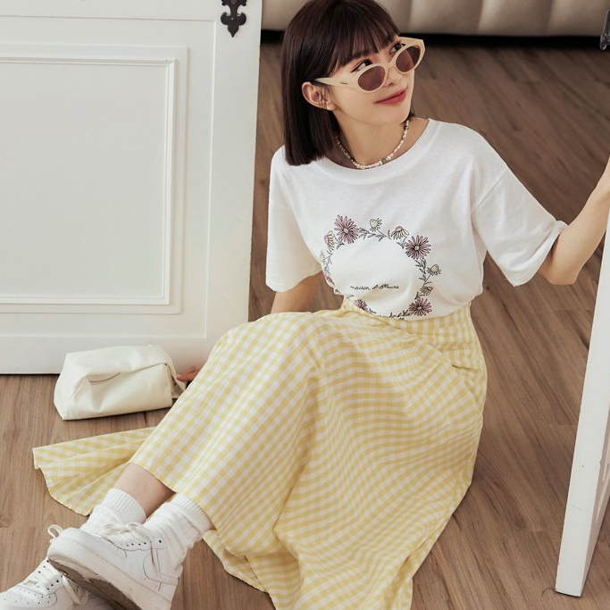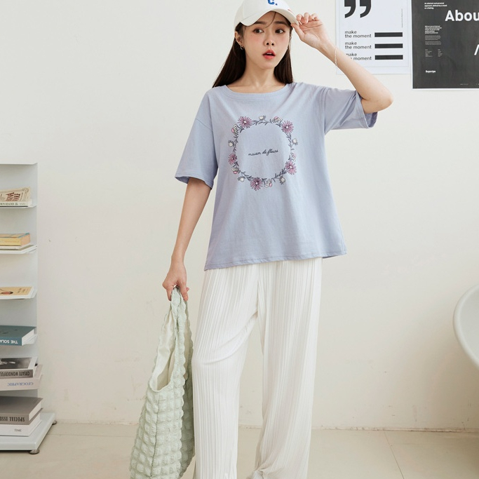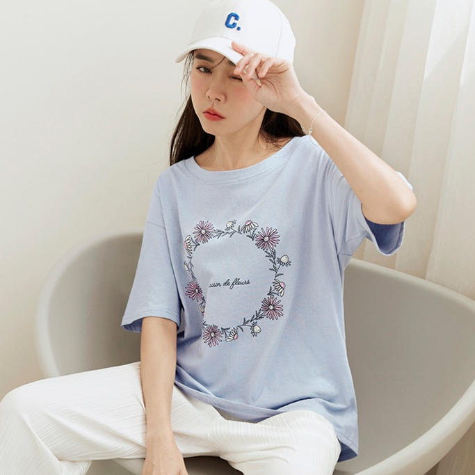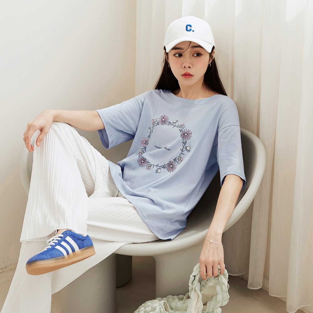 OB嚴選 高含棉花圈草寫字母印花圓領上衣 《AB4291》大尺碼/女裝/現貨淺藍,XL|淺藍,2L|淺藍,M|白,XL|白,L|白,M|白,3L|白,2L|淺藍,3L|淺藍,LT-shirtsOB嚴選官方旗艦店