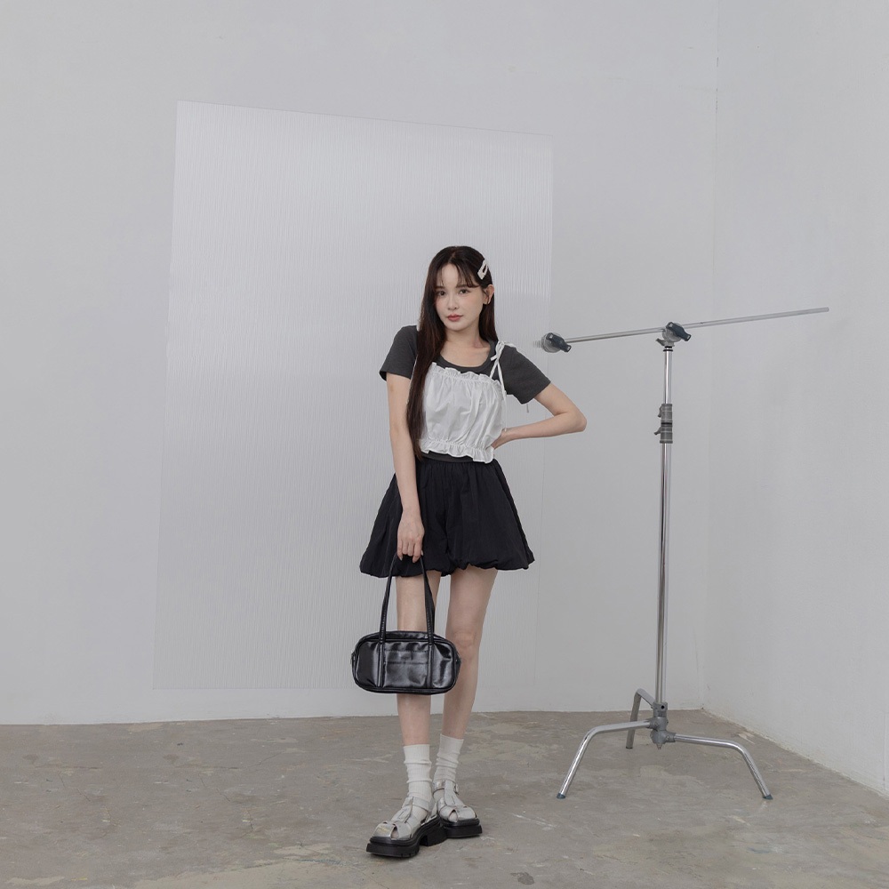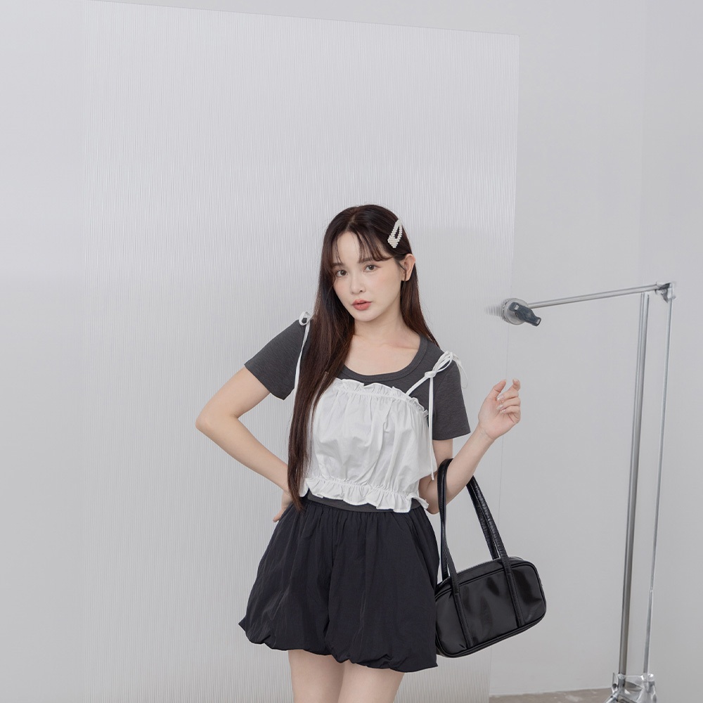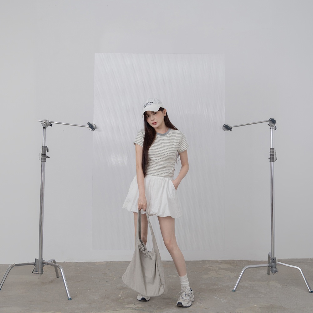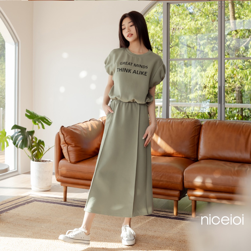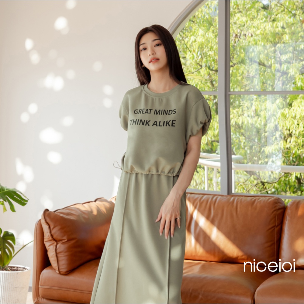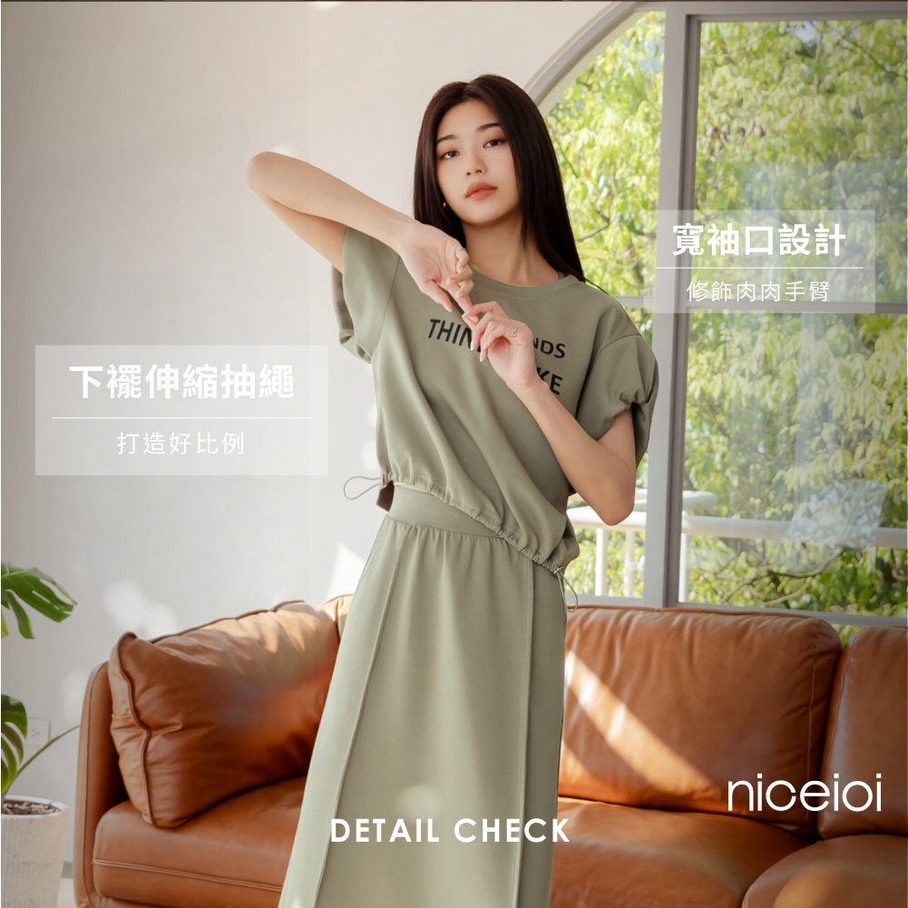 niceioi【特惠】抽繩短袖t恤 上衣 韓版上衣 抽繩短袖t恤 綠色 [韓系休閒字母抽繩上衣] 泡泡袖 超值推薦 女裝