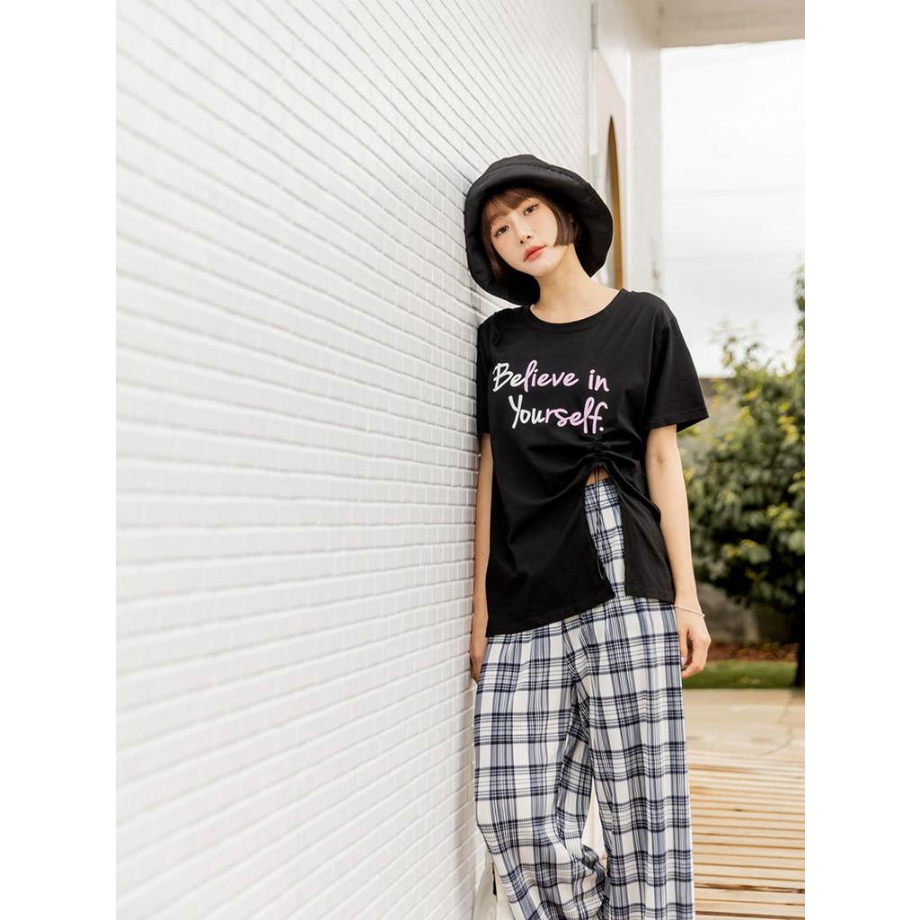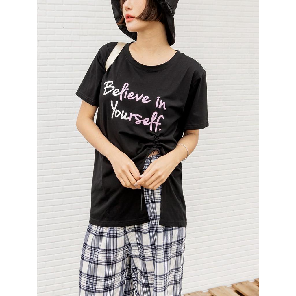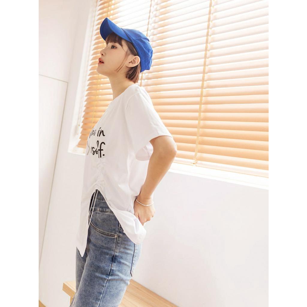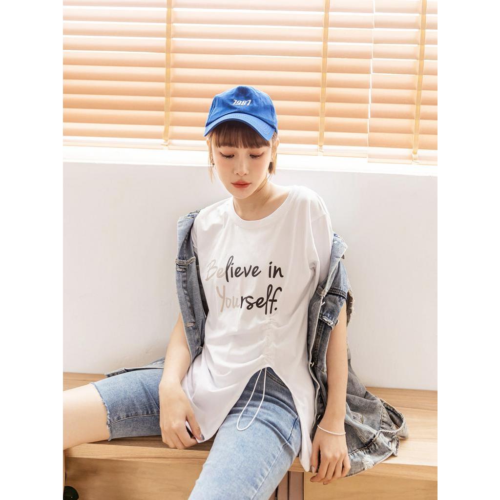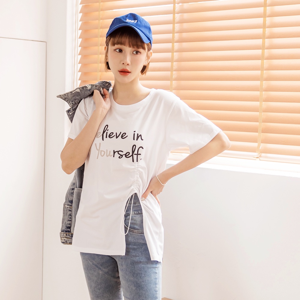 OB嚴選 棉質跳色印花抽繩開衩短袖長版上衣 《AB18582》大尺碼/現貨/女裝黑,L|黑,XL|黑,2L|白,L|白,XL|白,3L|黑,3L|白,M|白,2L|黑,MT-shirtsOB嚴選官方旗艦店