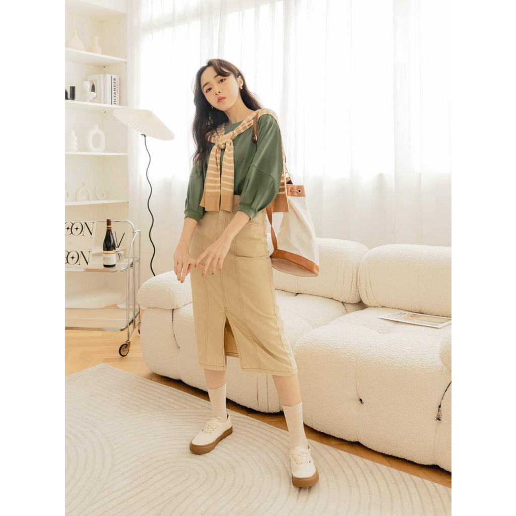 OB嚴選 高含棉素色拼接七分拋袖上衣 《AB17615》大尺碼/女裝/現貨褐,2L|軍綠,S|軍綠,M|軍綠,3L|褐,S|褐,XL|褐,3L|淺灰,S|淺灰,L|淺灰,3L|軍綠,XL|淺灰,M|淺灰,XL|淺灰,2L|褐,M|褐,L|軍綠,L|軍綠,2LT-shirtsOB嚴選官方旗艦店
