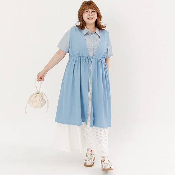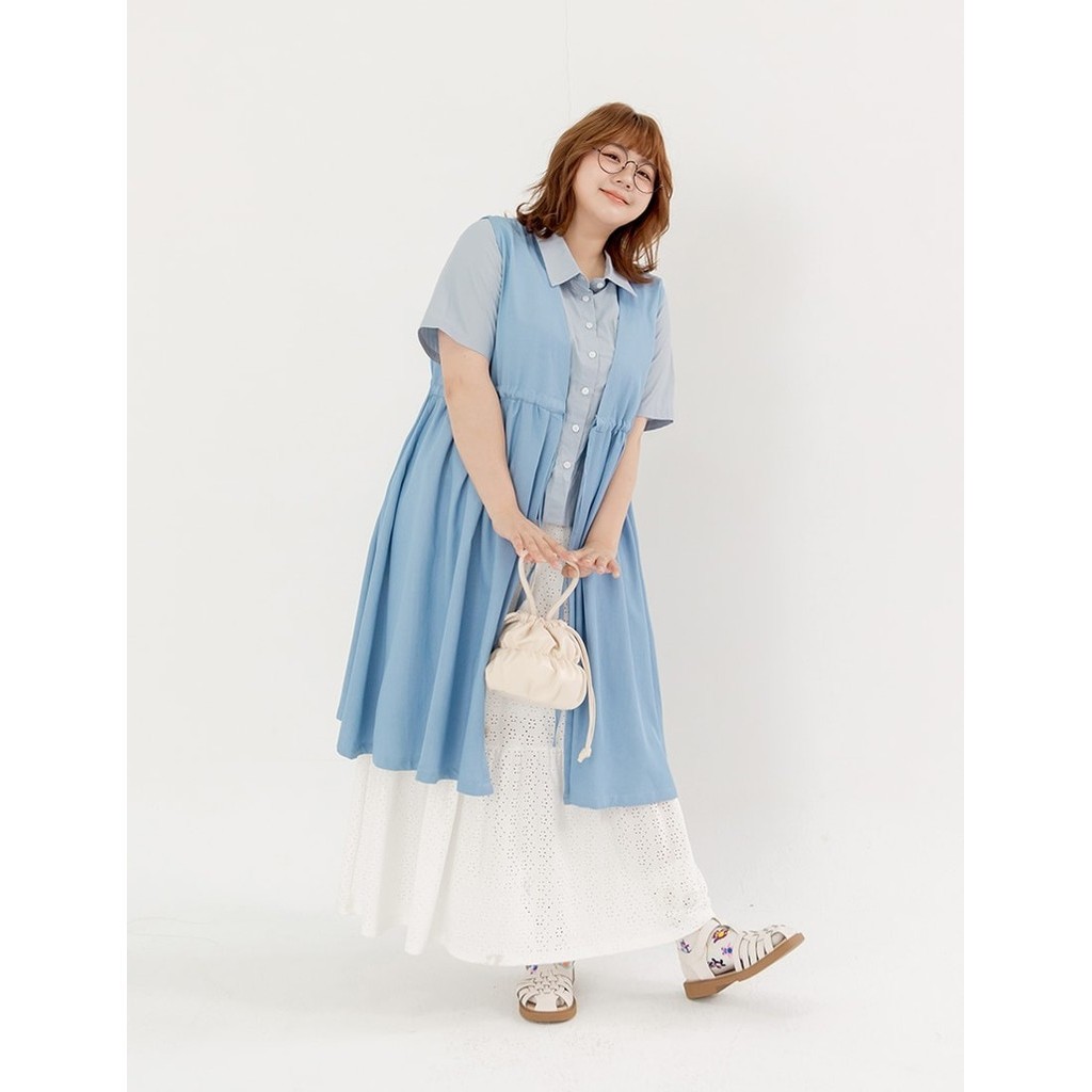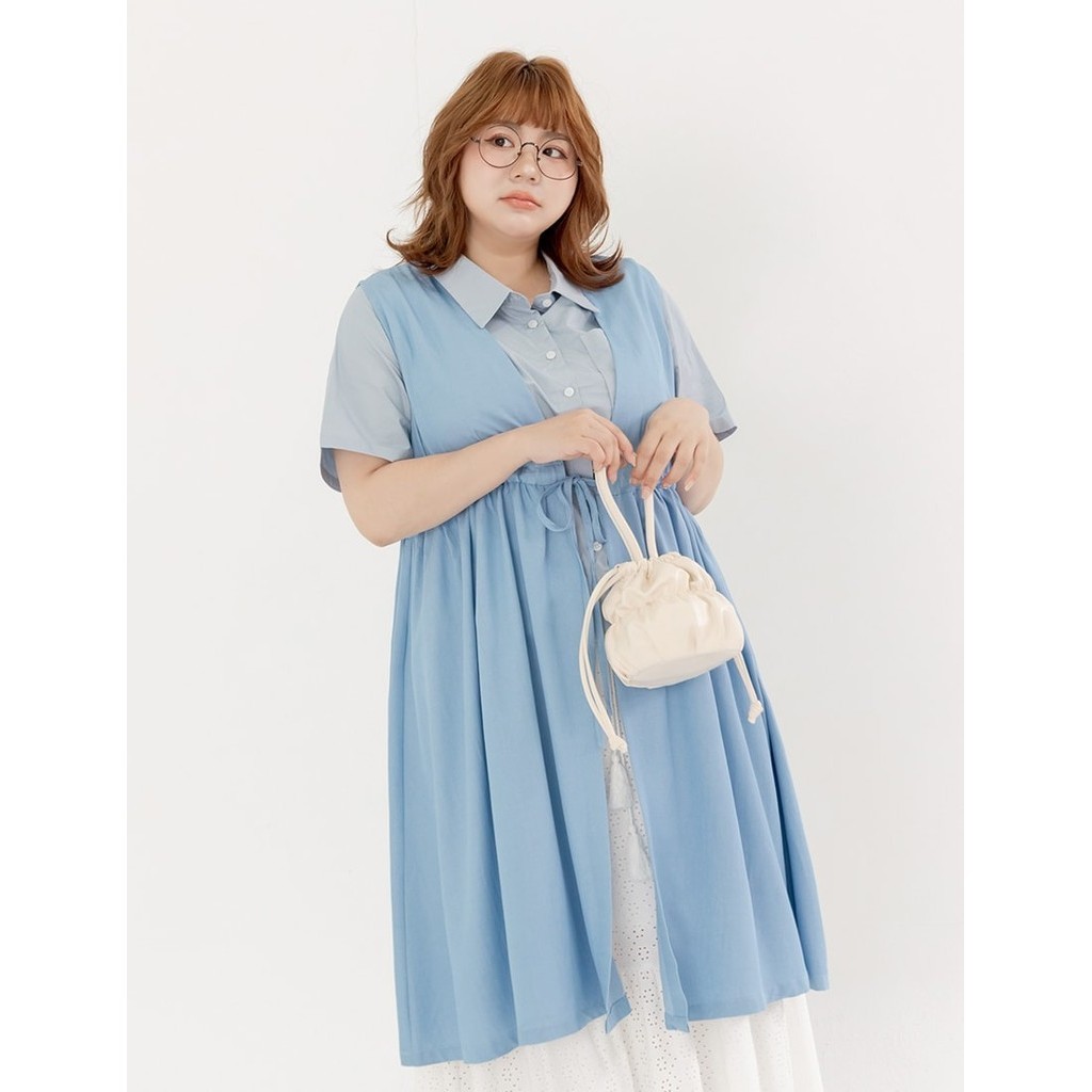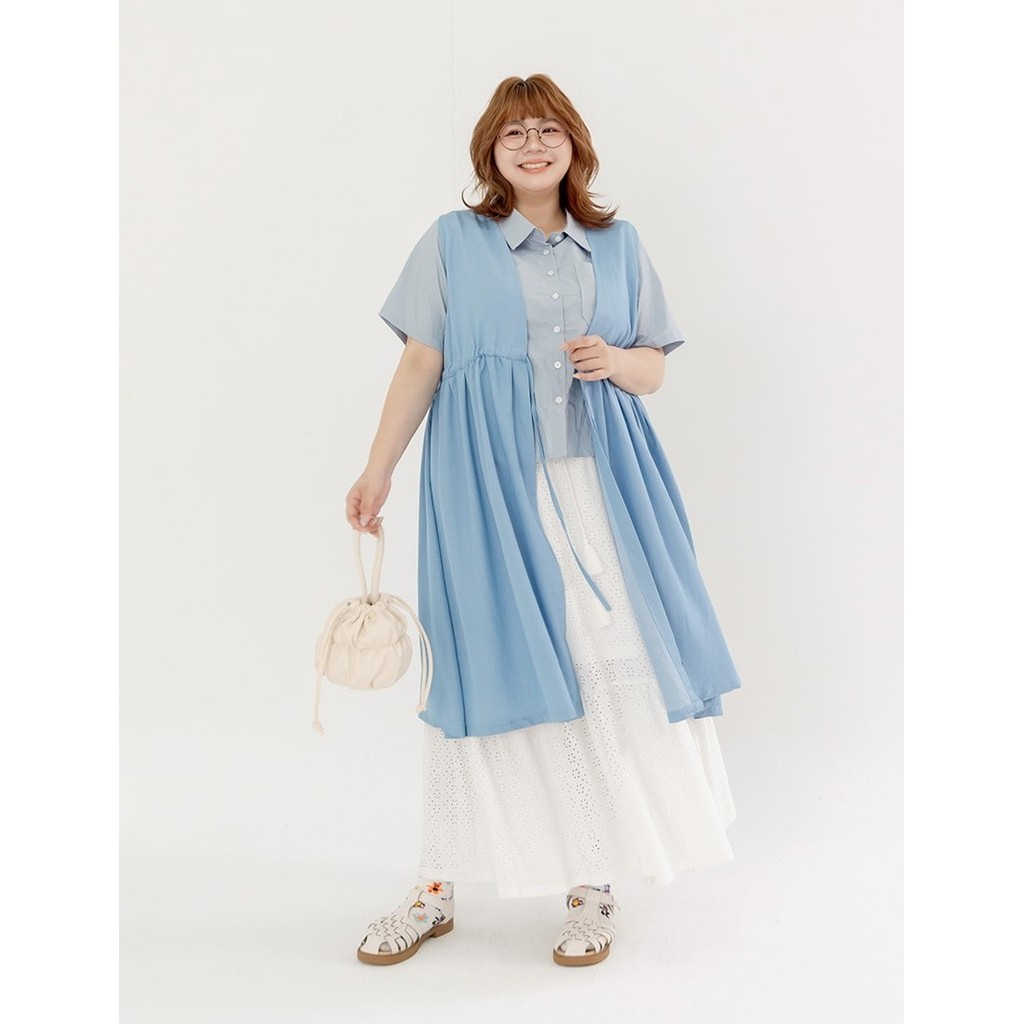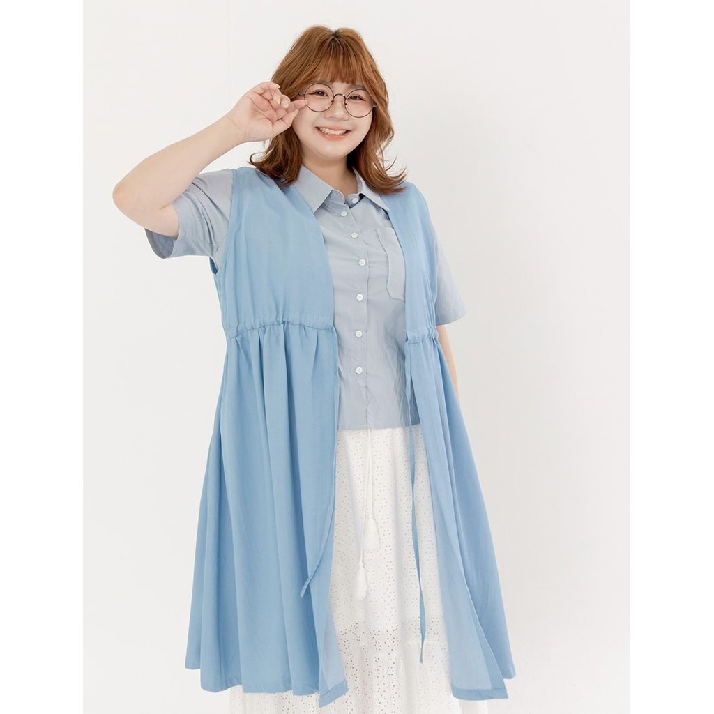 【PolyLulu】 MORI.日系甜酷縮腰綁帶軟牛仔傘狀罩衫 中大尺碼外套 淺藍色L|L+OthersPOLY LULU丨BEAUTY HAS NO SIZE 中大尺碼女裝