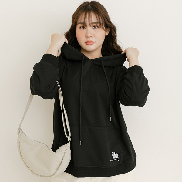 【PolyLulu】 甜酷波妞俏皮貓咪刺繡連帽長袖上衣 中大尺碼上衣 黑色L|XL|2XL|3XLOthersPOLY LULU丨BEAUTY HAS NO SIZE 中大尺碼女裝