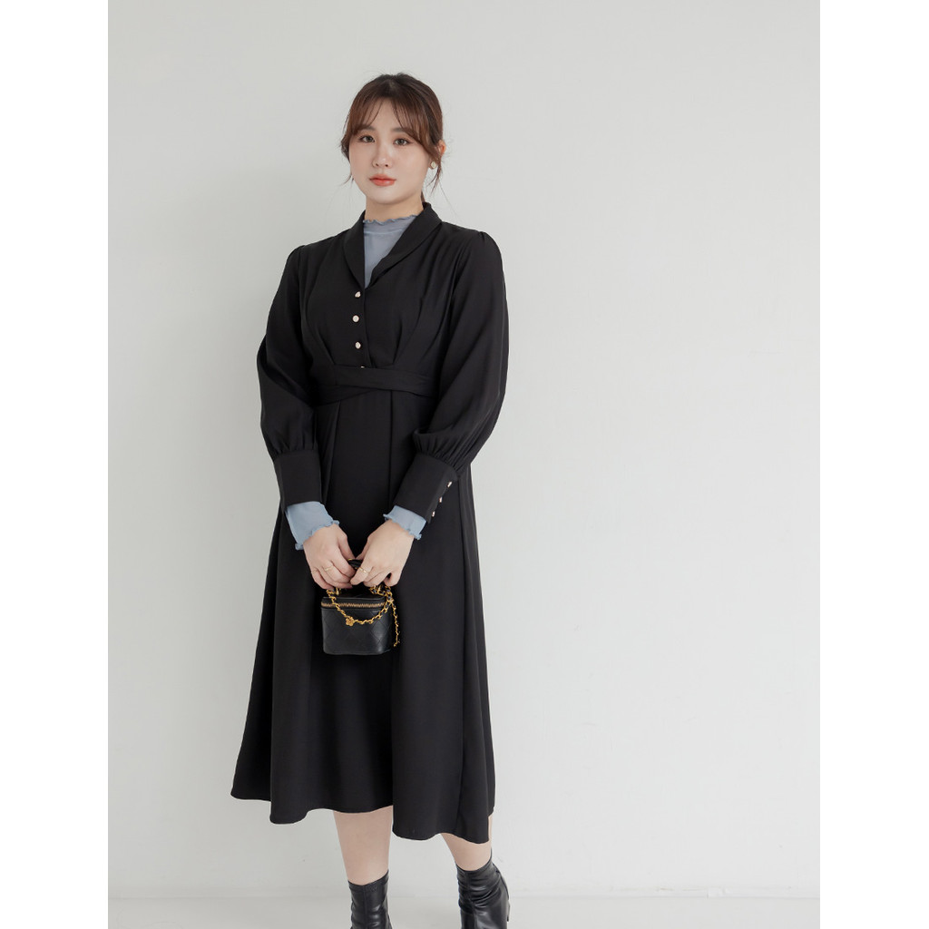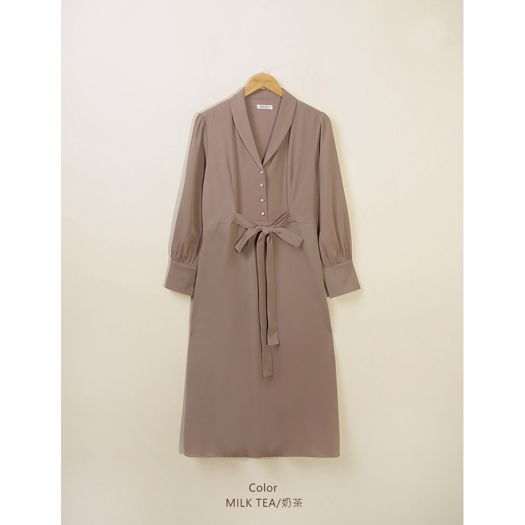 【PolyLulu】 MISS.貴氣復古翻領車線綁帶澎袖傘襬洋裝 中大尺碼洋裝黑色,L|灰藍色,XL|灰藍色,2XL|灰藍色,3XL|奶茶色,XL|奶茶色,3XL|黑色,XL|黑色,2XL|黑色,3XL|灰藍色,L|奶茶色,L|奶茶色,2XLPOLY LULU丨BEAUTY HAS NO SIZE 中大尺碼女裝
