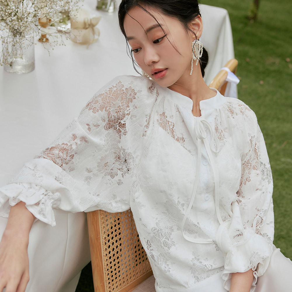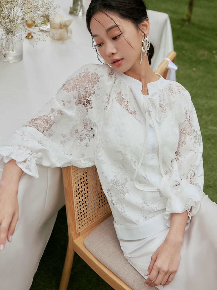 OB嚴選 唯美鏤空蕾絲排釦上衣外套 《AB19984》白,M|白,L|白,XL|白,2L|白,3L|黑,M|黑,L|黑,XL|黑,2L|黑,3LT-shirtsOB嚴選官方旗艦店