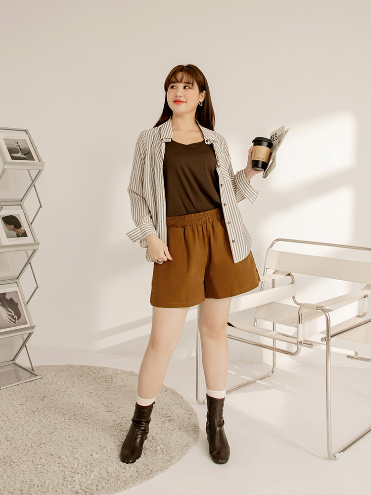 OB嚴選 雲朵自訂款-純棉鬆緊腰側開釦寬口短褲 《BA7564》大尺碼/女裝/現貨咖啡,XL|咖啡,2L|咖啡,3L|咖啡,4L|深藍,XL|深藍,2L|深藍,3L|深藍,4LShortsOB嚴選官方旗艦店