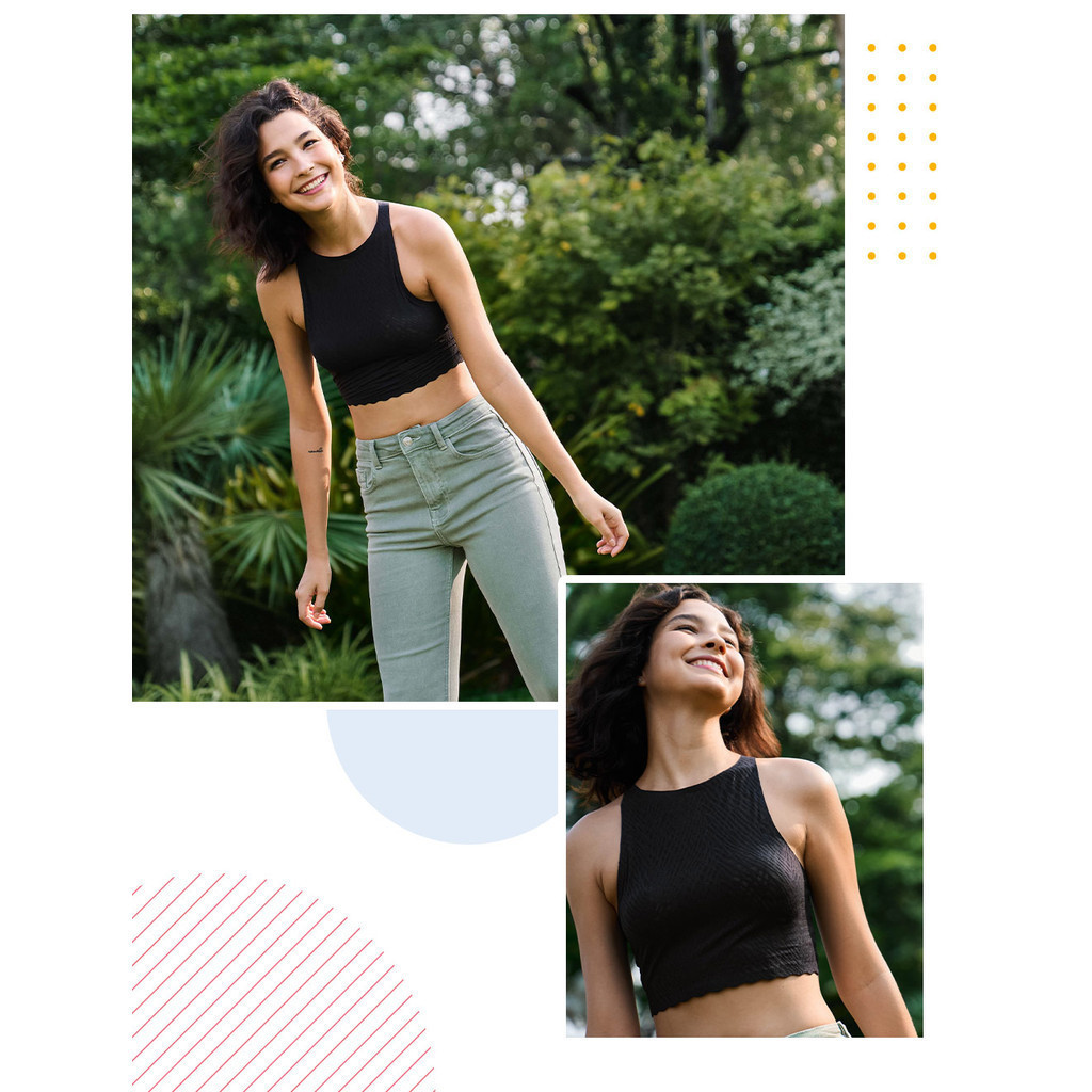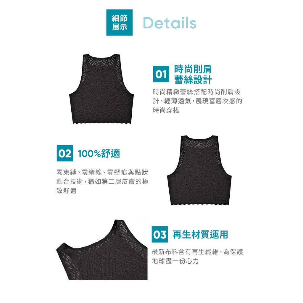 sloggi-ZERO FEEL BLISS零感蕾絲雅致系列削肩短版上衣 純粹黑|88R401 04S|M|L|ELBrassloggi 官方旗艦店
