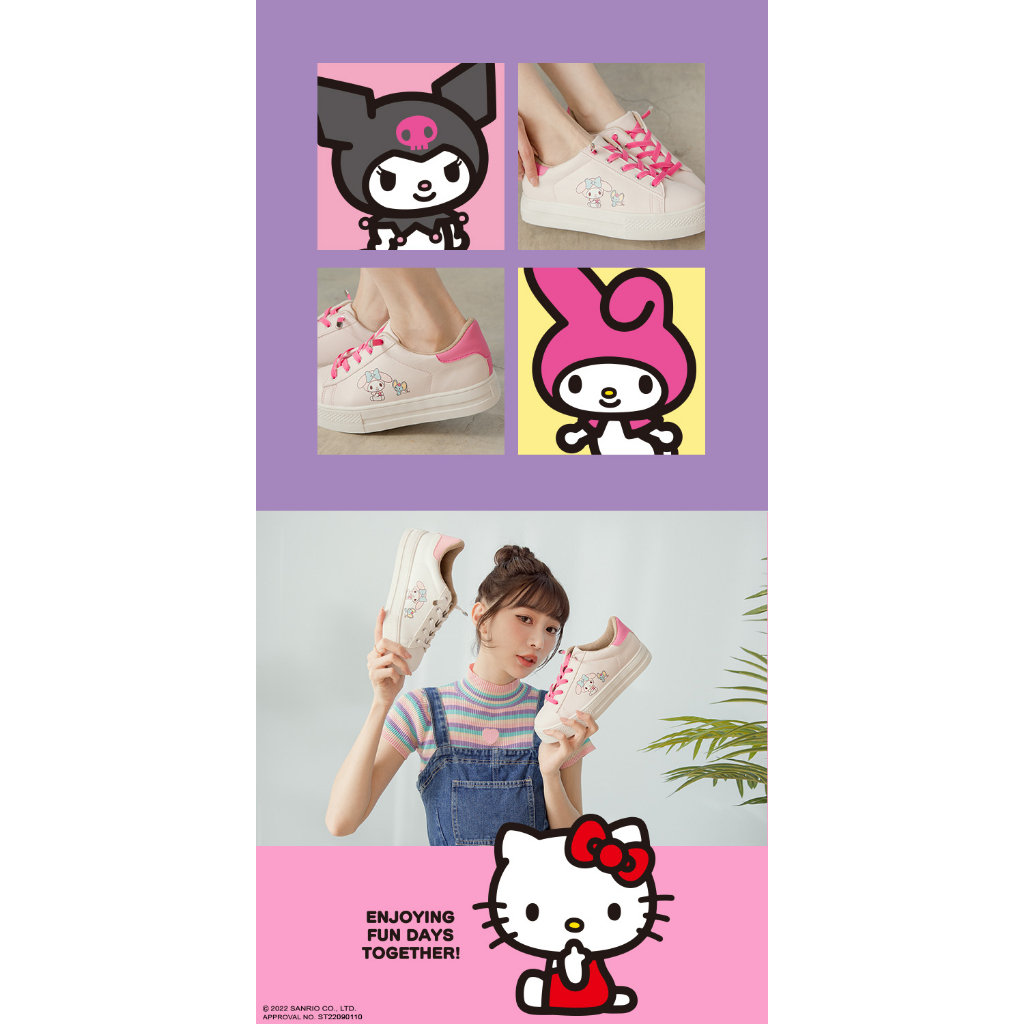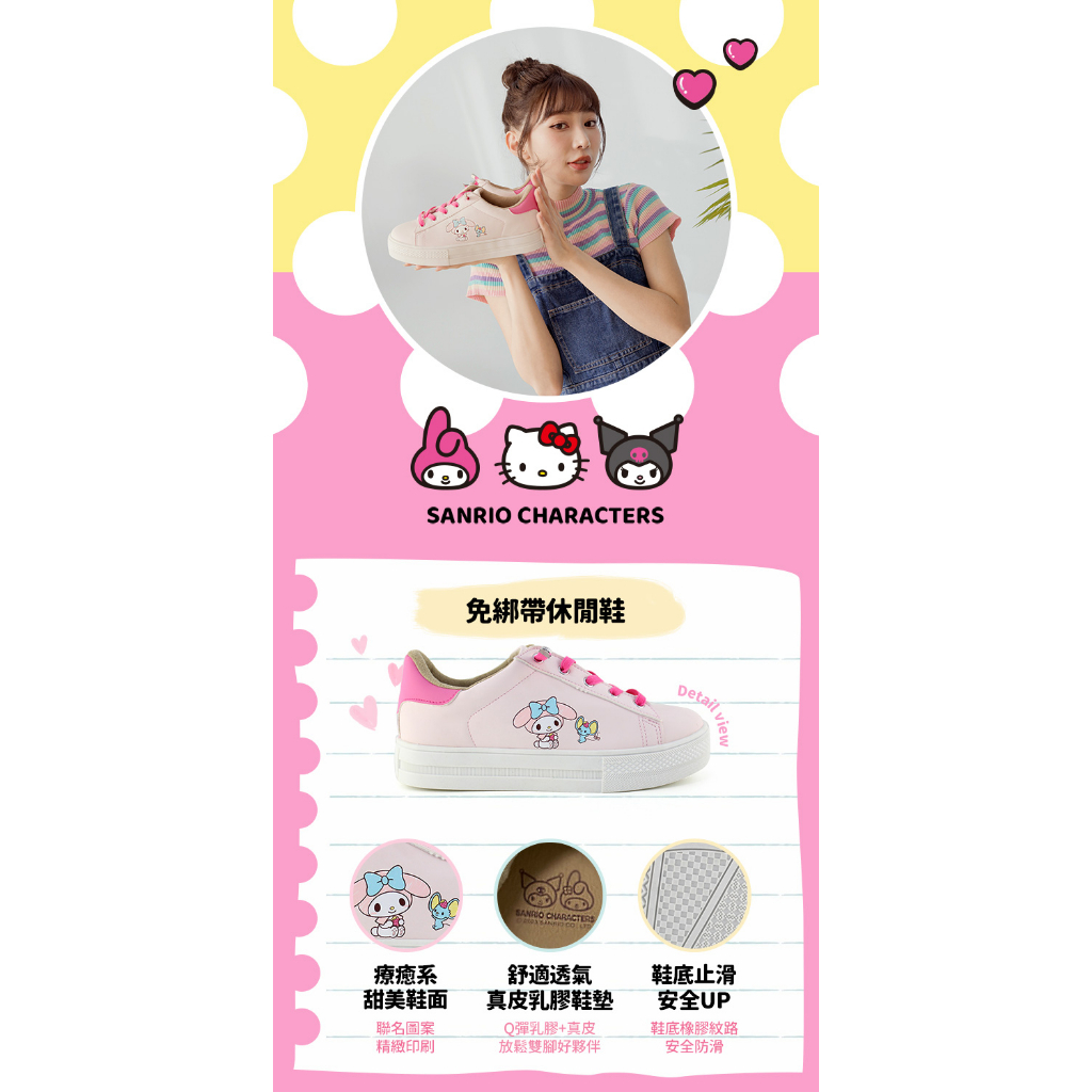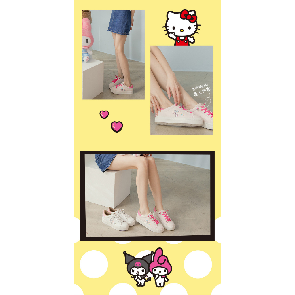 • Paidal x My Melody美樂蒂免綁帶跳色皮感厚底休閒鞋不彎腰鞋-桃粉