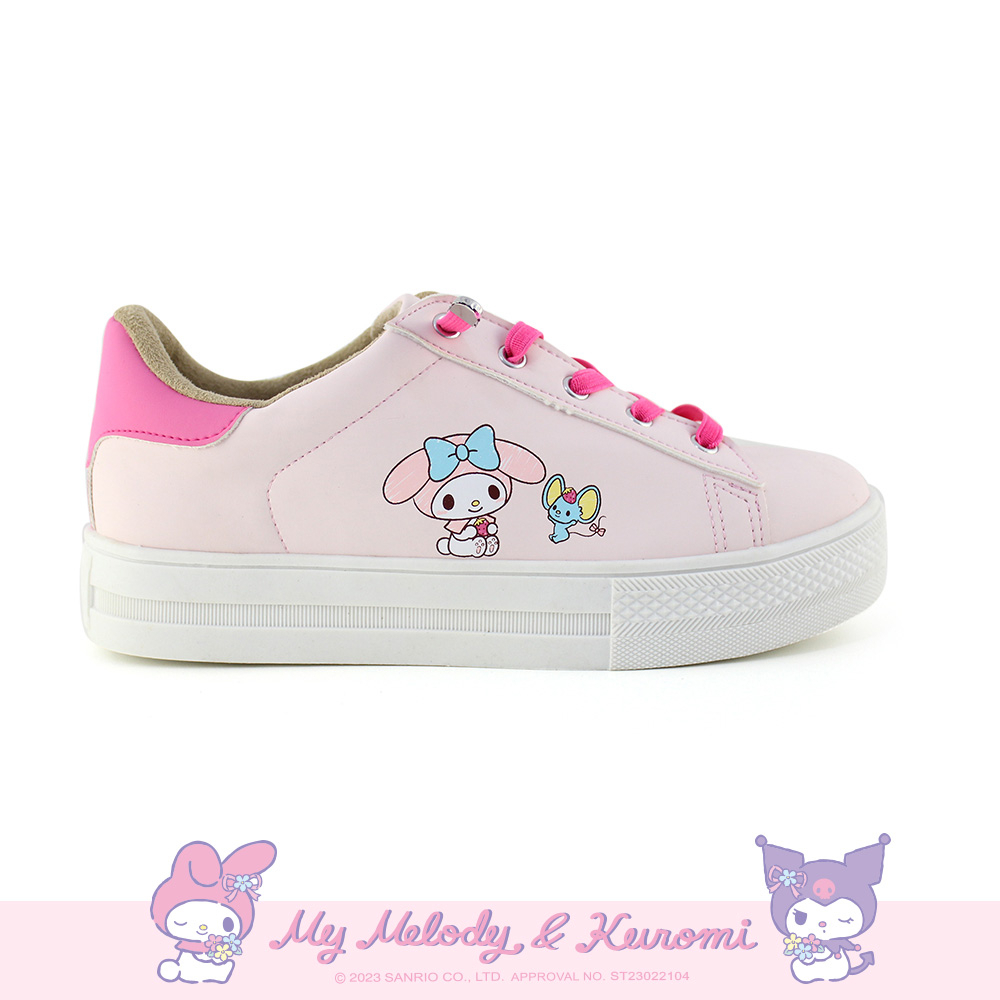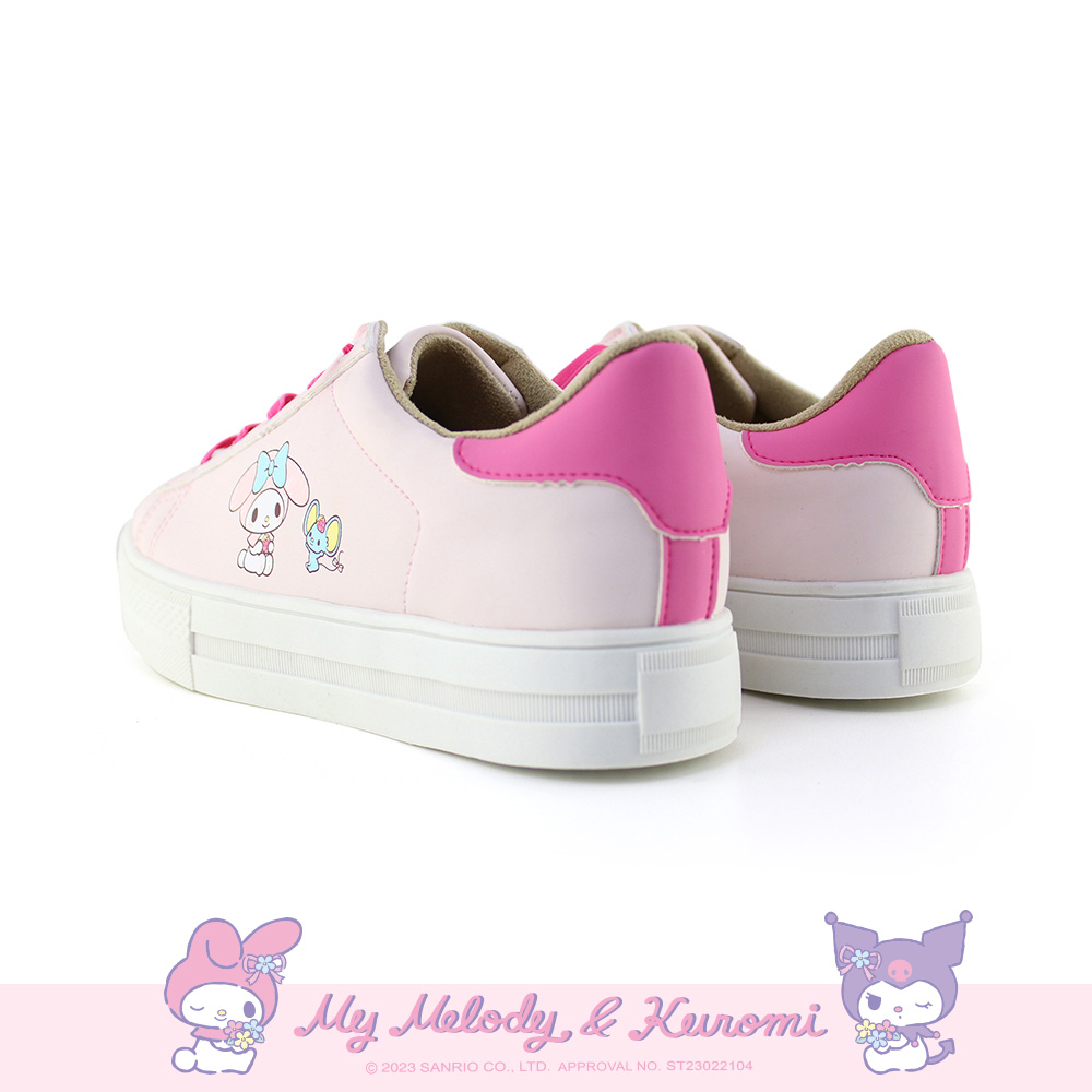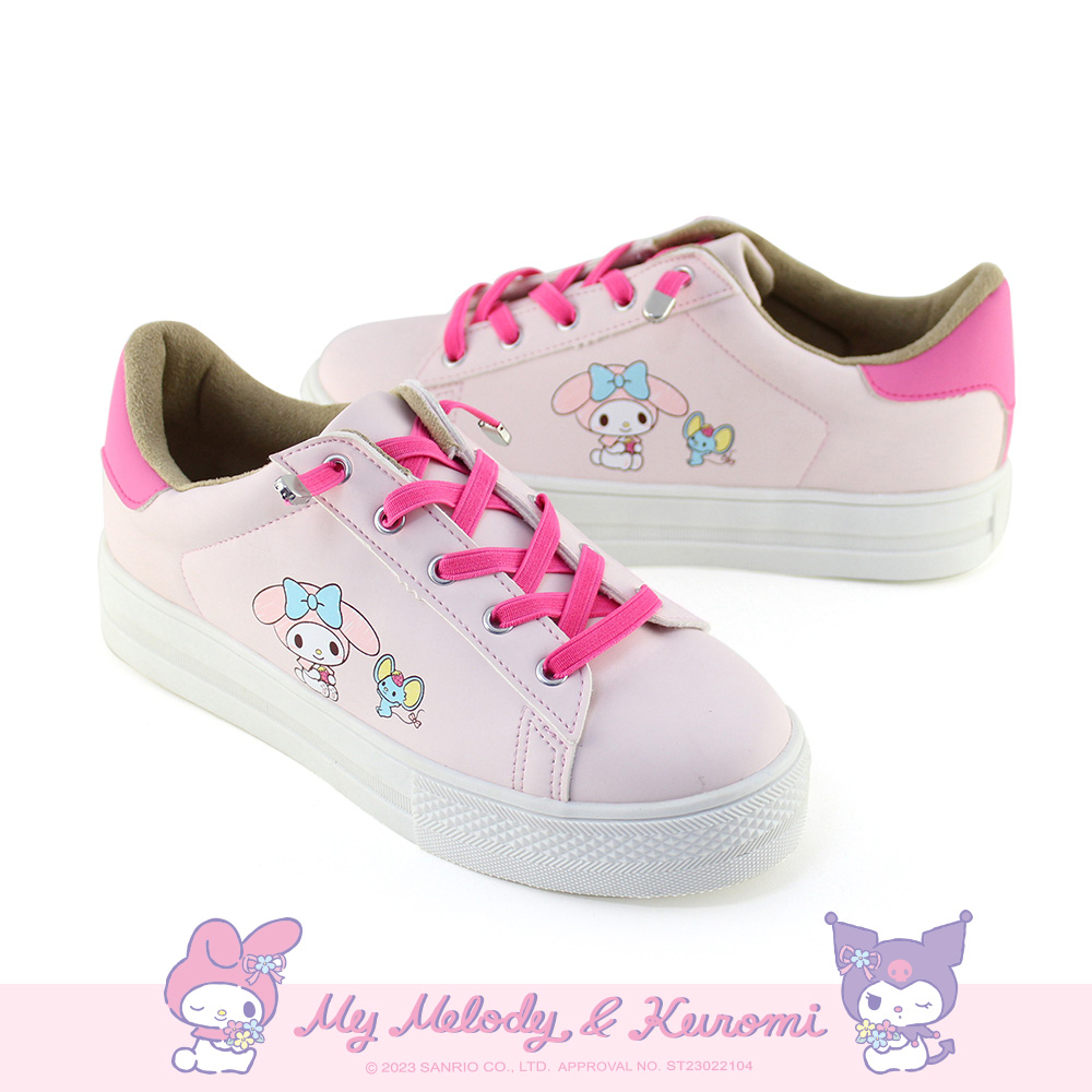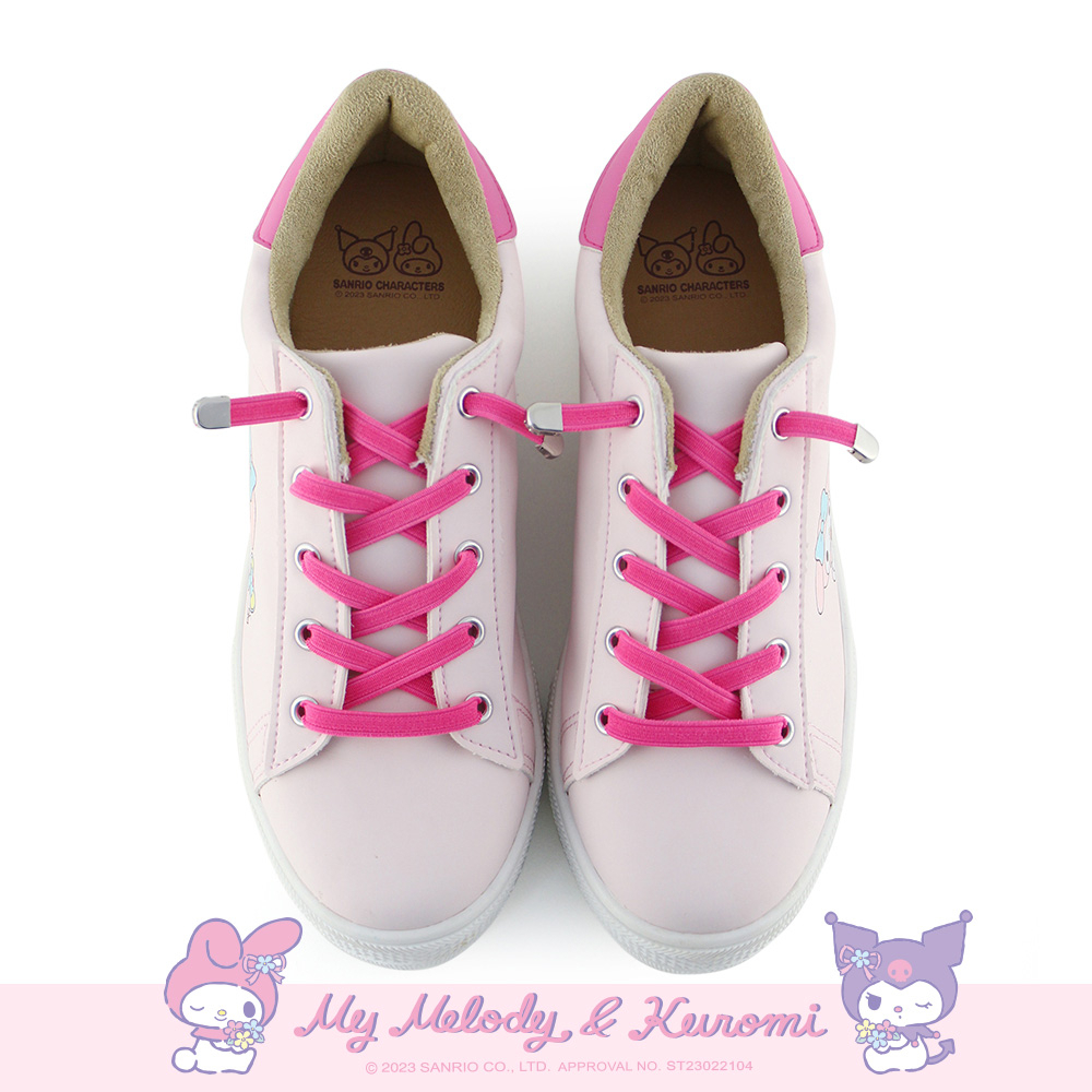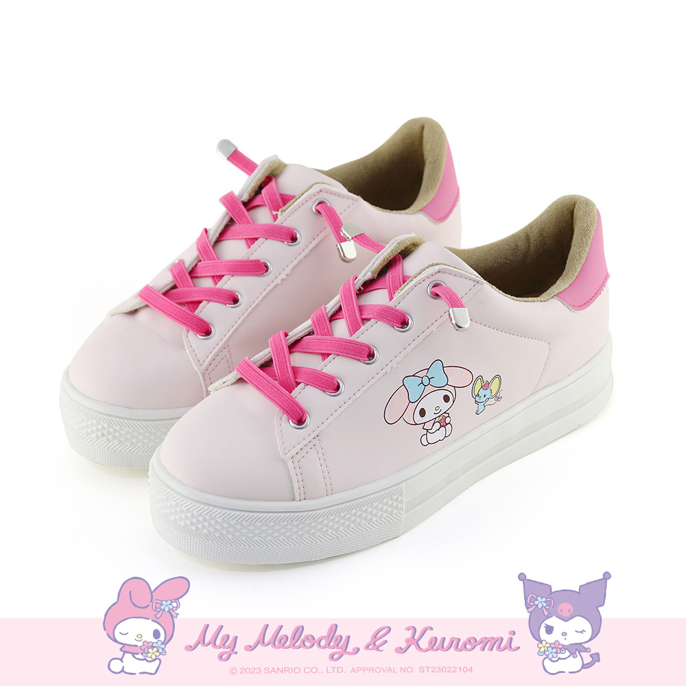 Paidal x My Melody美樂蒂免綁帶跳色皮感厚底休閒鞋不彎腰鞋-桃粉
