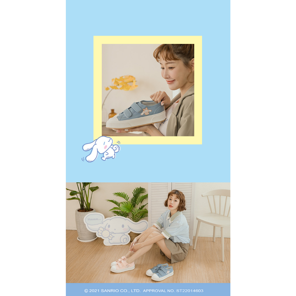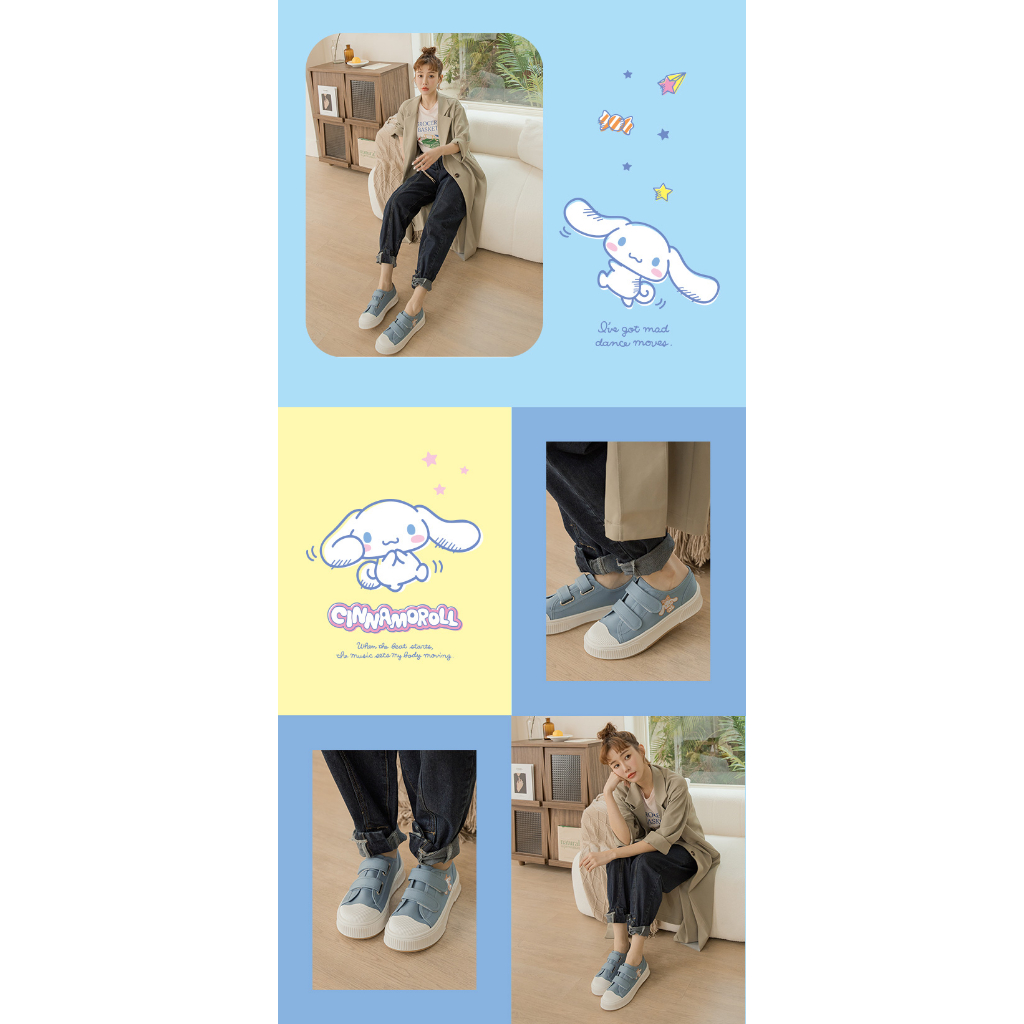 Paidal x Cinnamoroll 大耳狗喜拿英國旗魔鬼氈厚底休閒鞋帆布鞋-藍