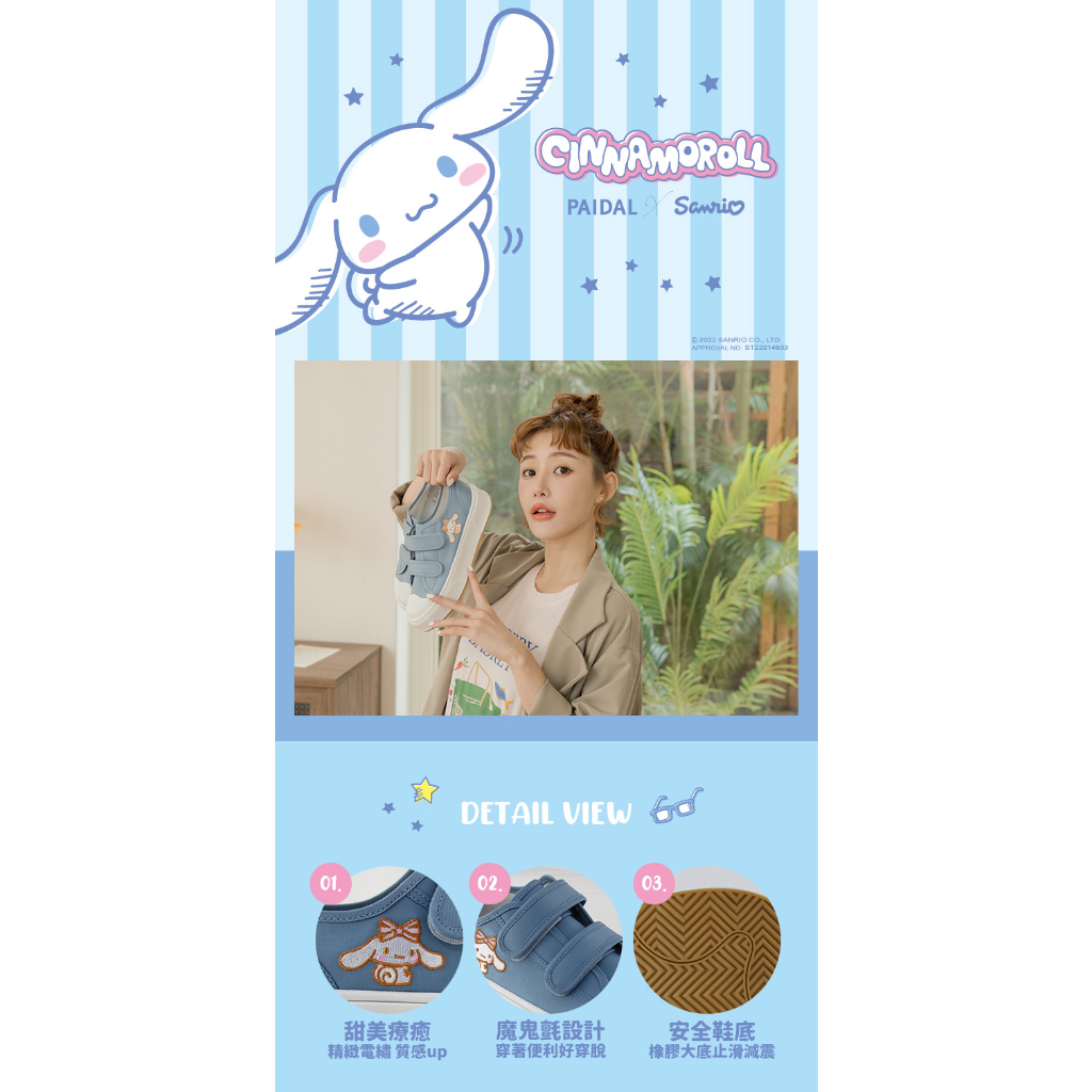 Paidal x Cinnamoroll 大耳狗喜拿英國旗魔鬼氈厚底休閒鞋帆布鞋-藍36|37|38|39|40|41Paidal官方旗艦店