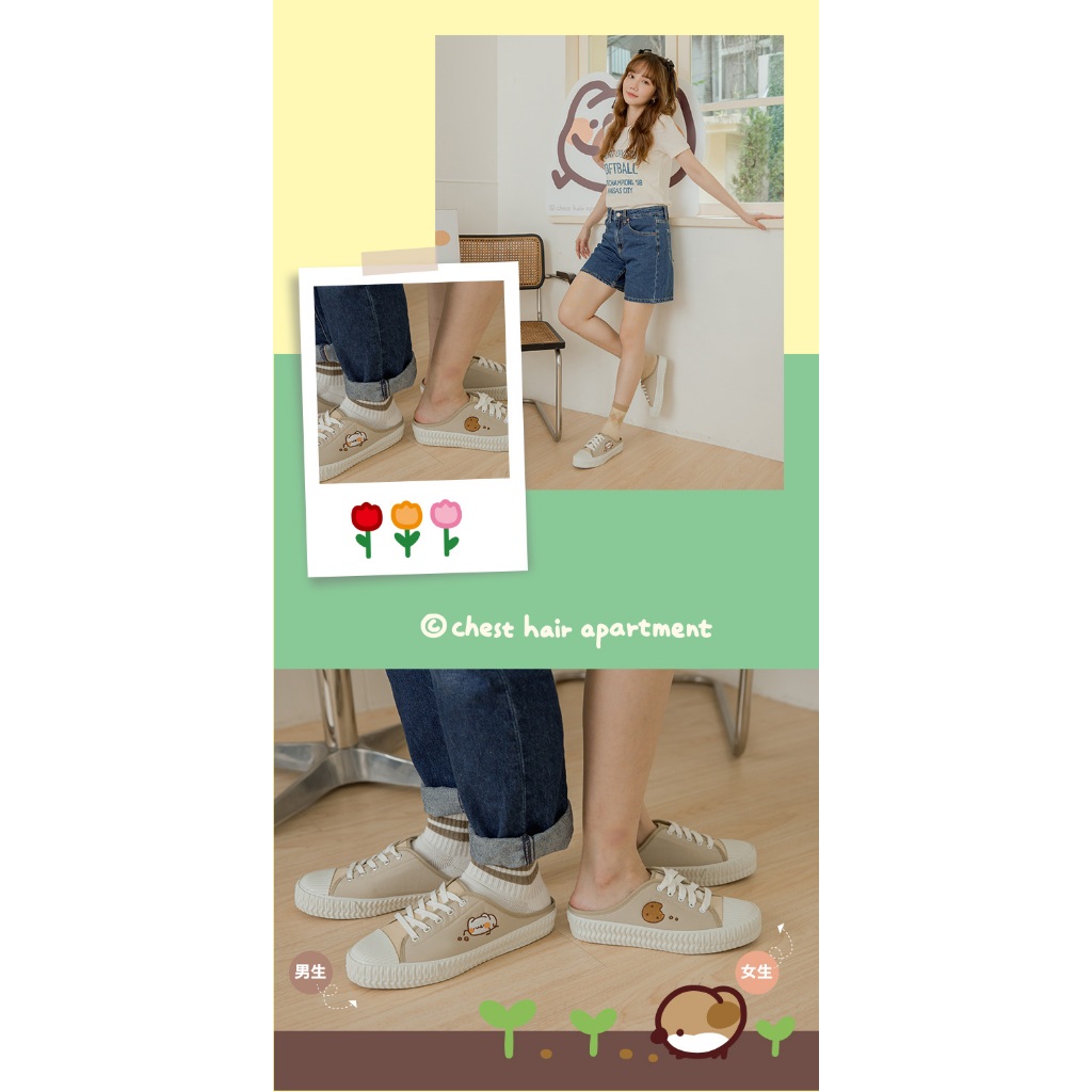 Paidal x 胸毛公寓-野生喵喵怪 餅乾系列不對稱跳色休閒鞋餅乾穆勒鞋-女款