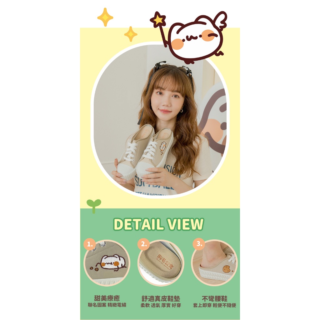 Paidal x 胸毛公寓-野生喵喵怪 餅乾系列不對稱跳色休閒鞋餅乾穆勒鞋-女款38|39|40|36|37Slip Ons, Mary Janes & MulesPaidal官方旗艦店