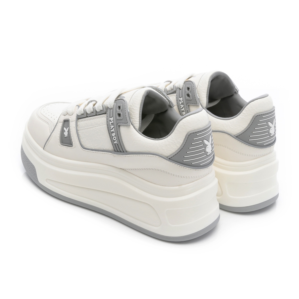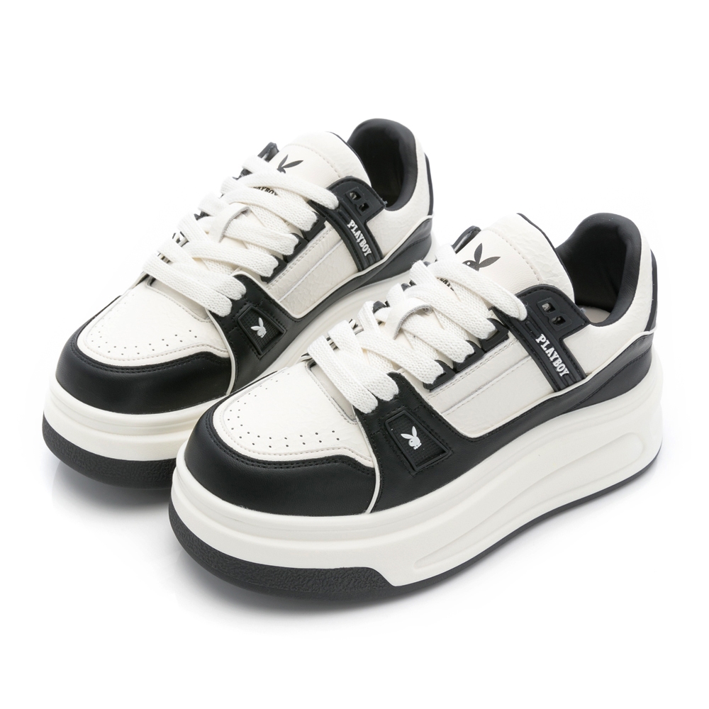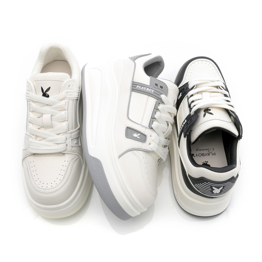 • PLAYBOY 翻玩經典 真皮增高厚底鞋-白/白灰/白黑(PY1108)