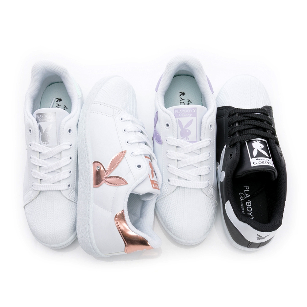 • PLAYBOY 俏甜春語 經典貝殼兔兔小白鞋-白紫/白玫瑰金/白貝殼/黑白(PY1006)