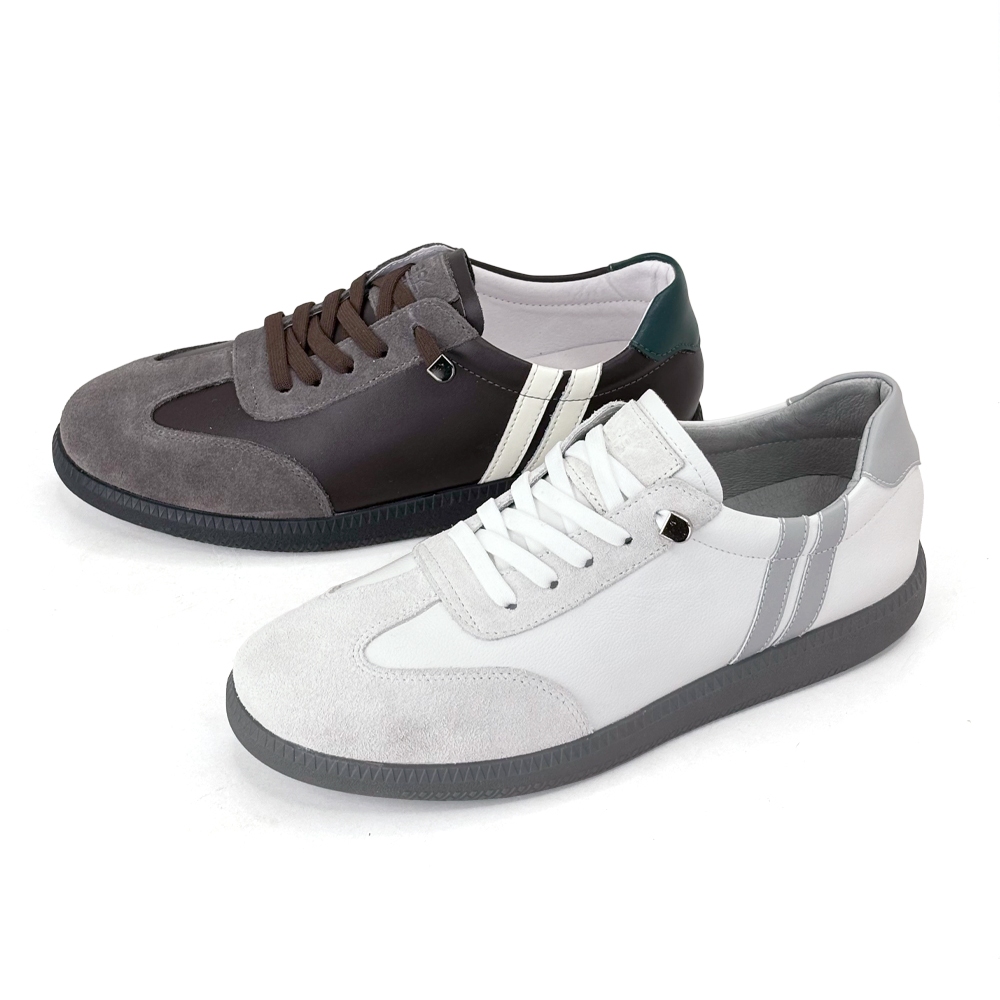 【Robinlo】真皮休閒德訓鞋 德訓鞋 休閒鞋(Stephen 簡約復古) 石灰白/可可棕