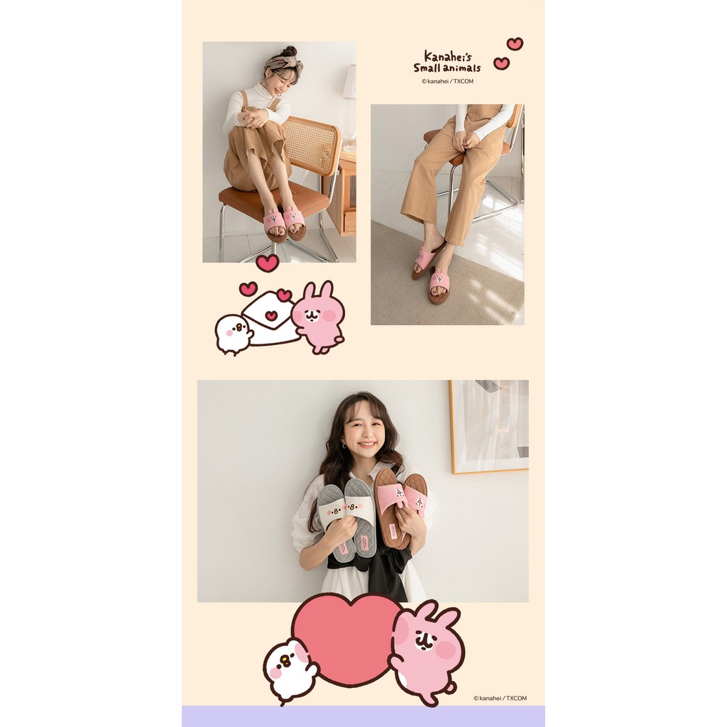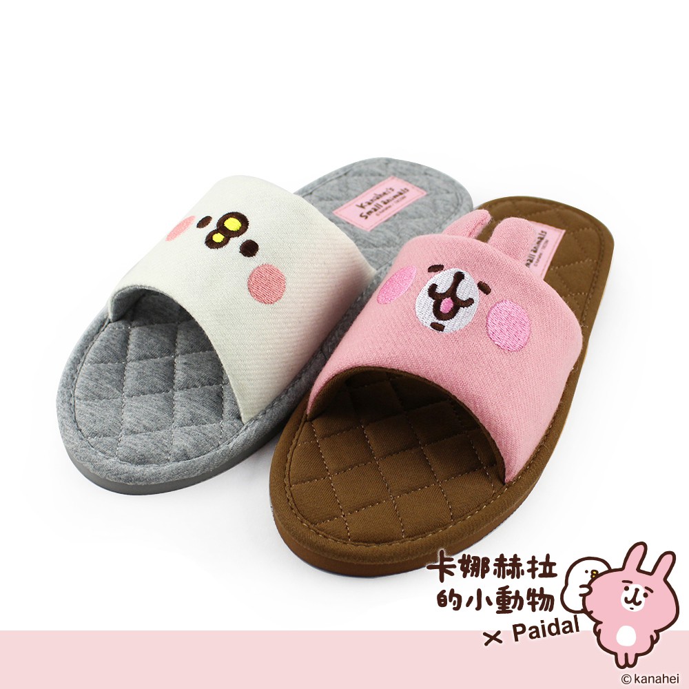 Paidal x 卡娜赫拉的小動物 萌臉系列粉紅兔兔高級室內拖鞋06|07|08|09|05Flat SandalsPaidal官方旗艦店