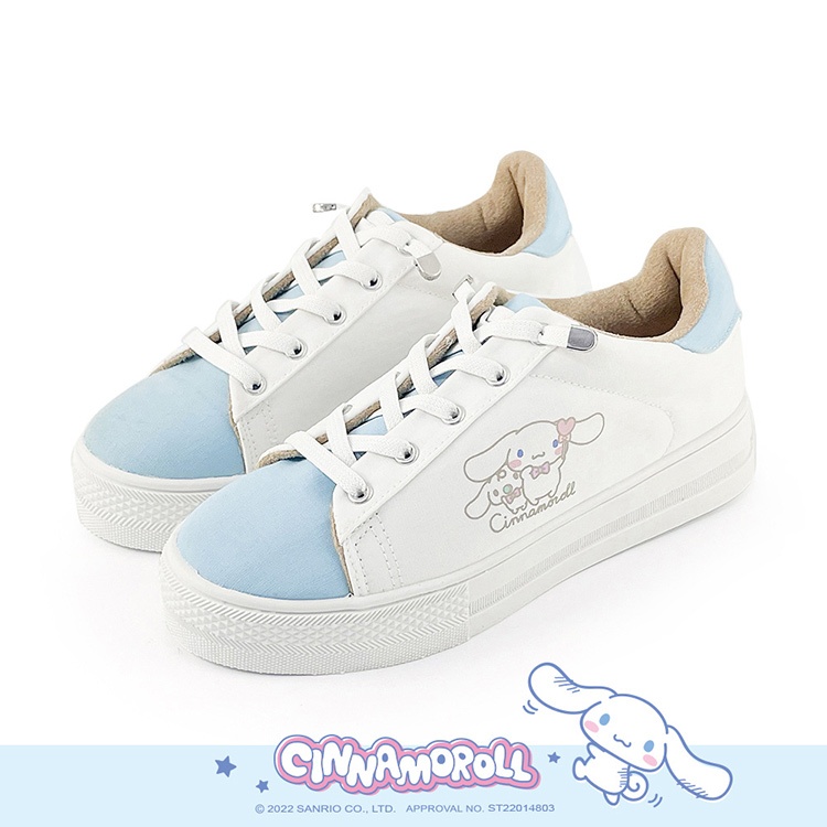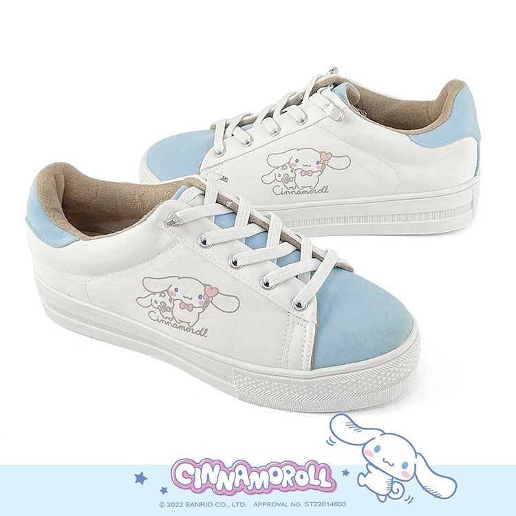 Paidal x Cinnamoroll大耳狗喜拿 與牛奶跳色免綁帶厚底休閒鞋不彎腰鞋-小白鞋
