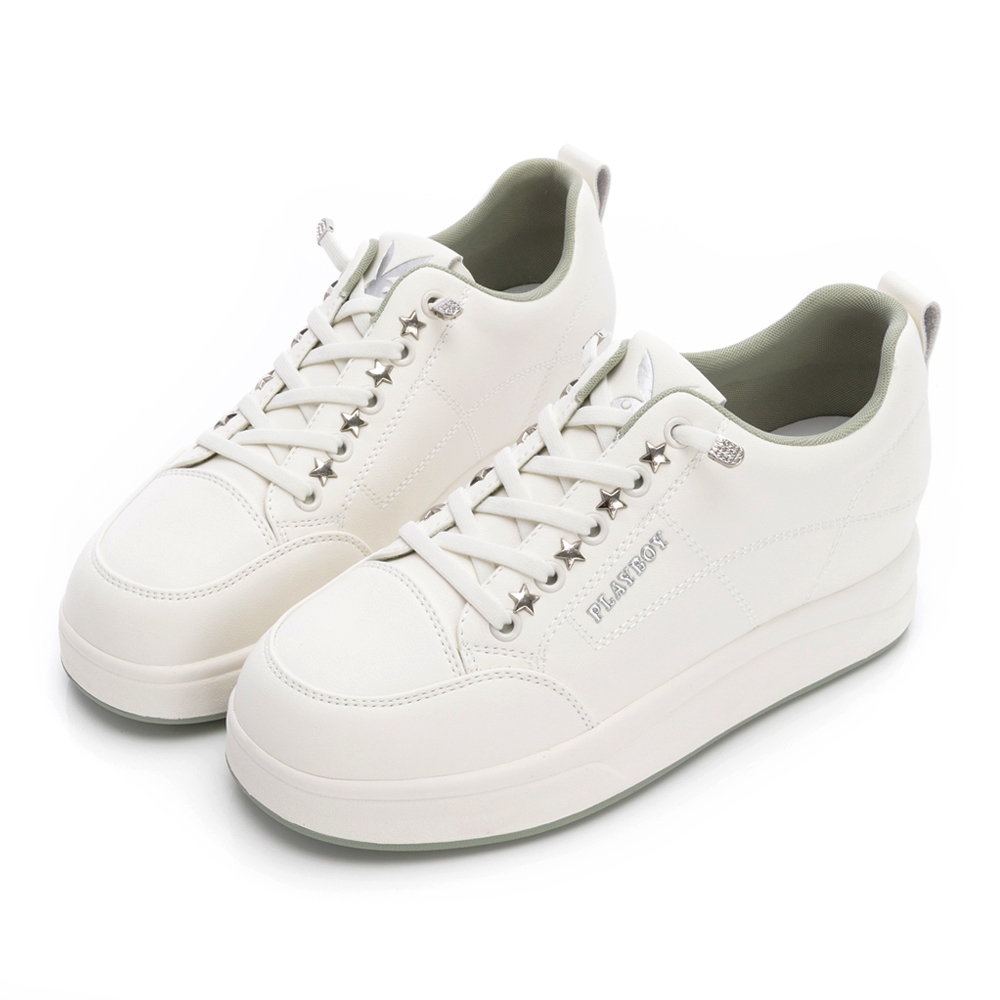 PLAYBOY 八星好評 7cm內增高厚底鞋-白綠/白杏(PY1067)