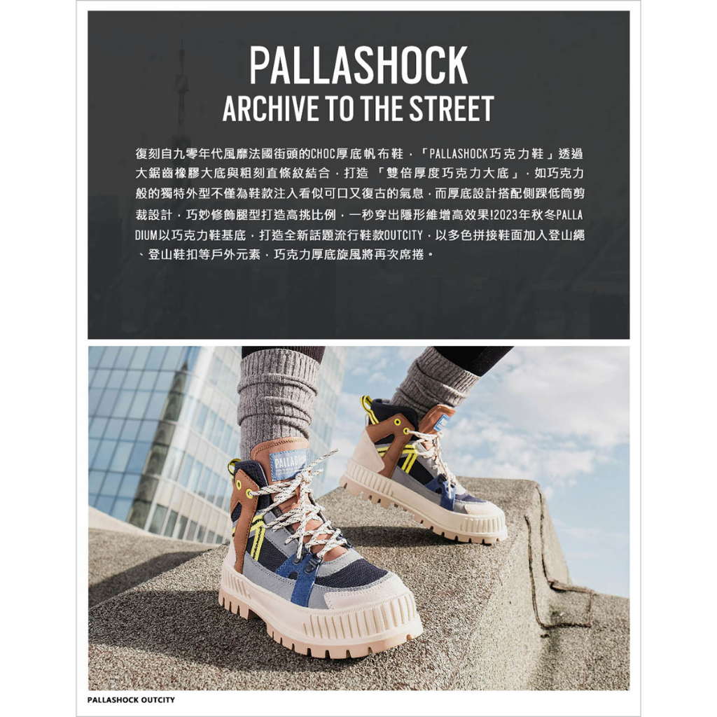 PALLADIUM PALLASHOCK OUTCITY厚底拼接皮革巧克力鞋-女-杏米6.5(23.5cm)|7(24cm)|7.5(24.5cm)|8(25cm)|8.5(25.5cm)|6(23cm)Palladium官方旗艦店