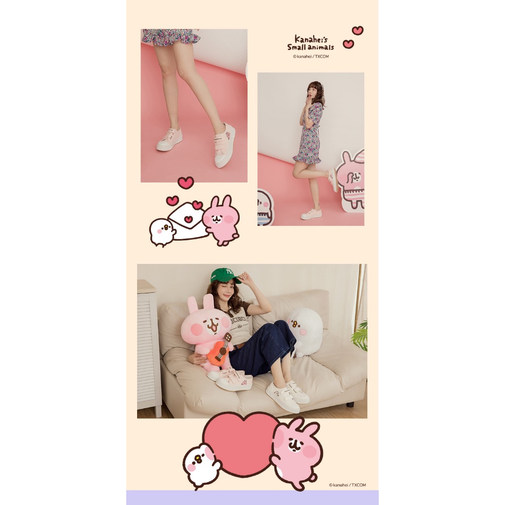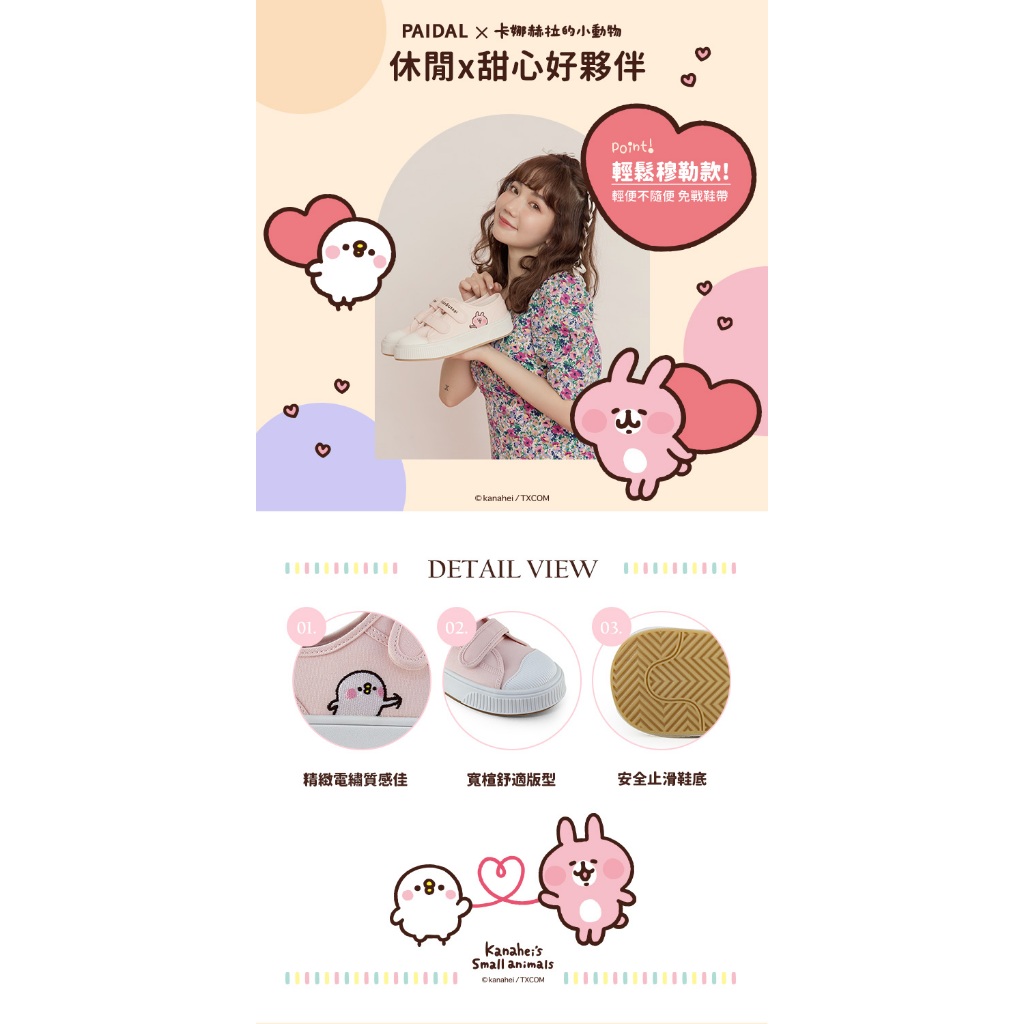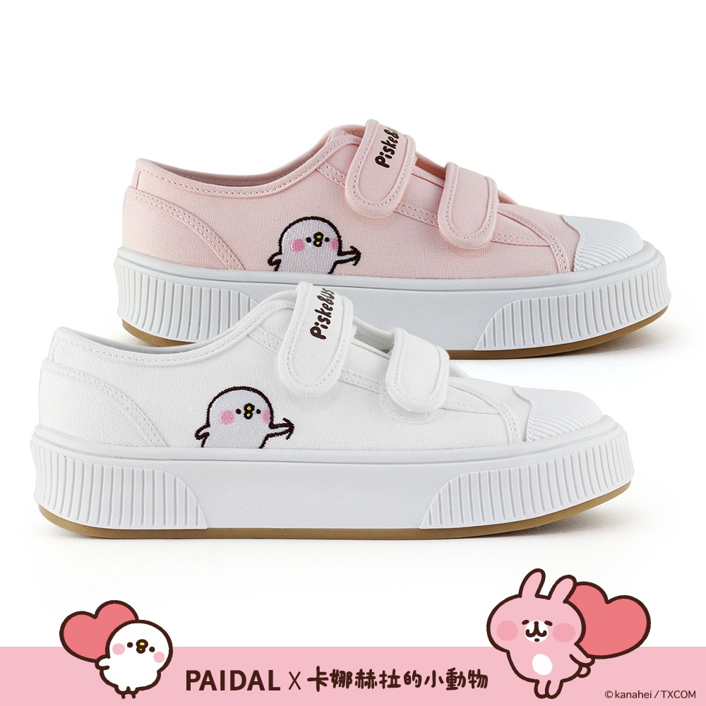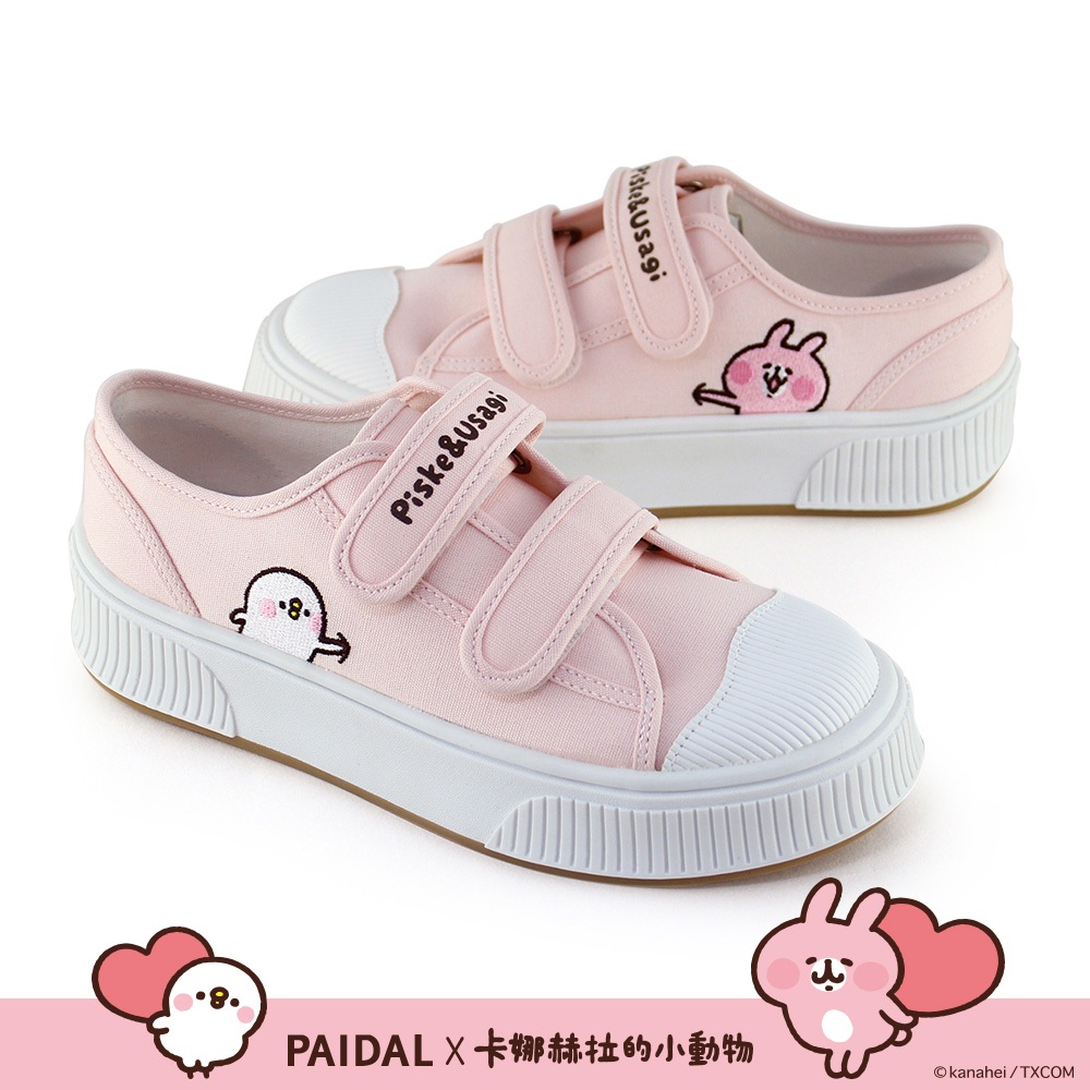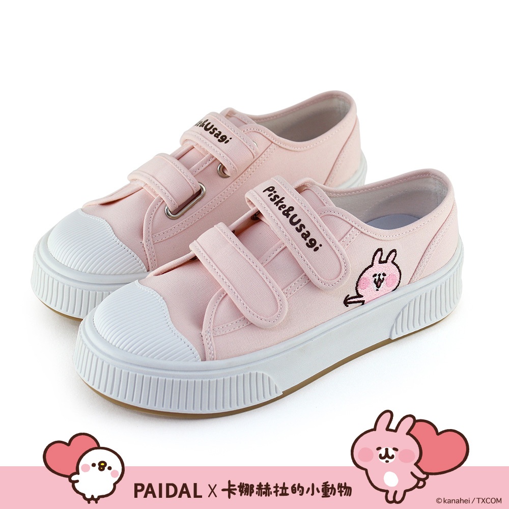 Paidal x 卡娜赫拉的小動物 俏皮戳一下魔鬼氈厚底休閒鞋帆布鞋-粉36|37|38|39|40|41Paidal官方旗艦店