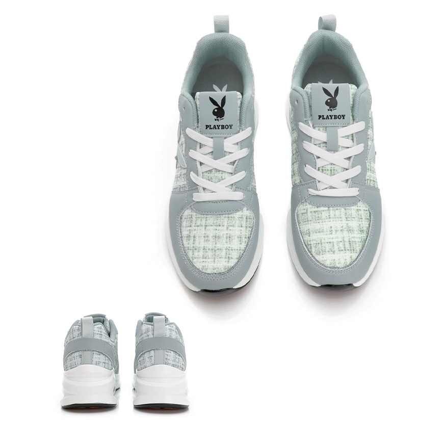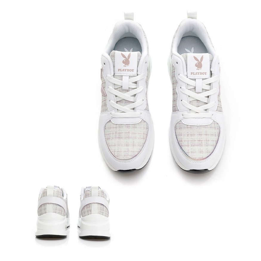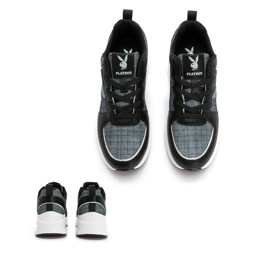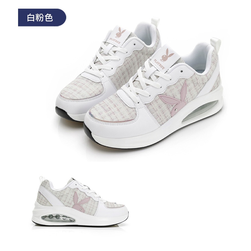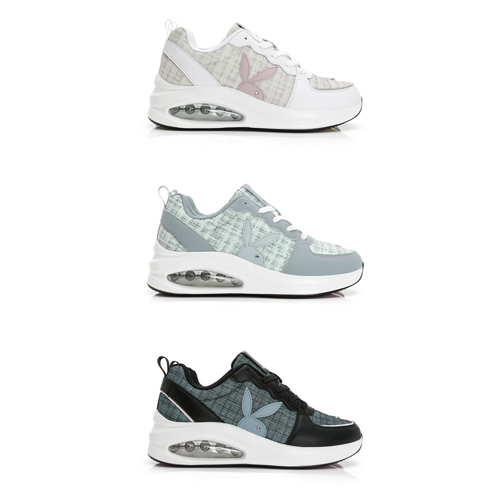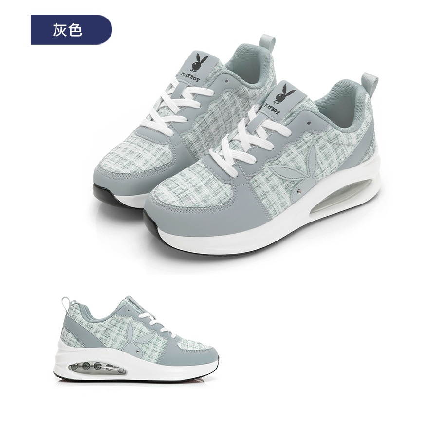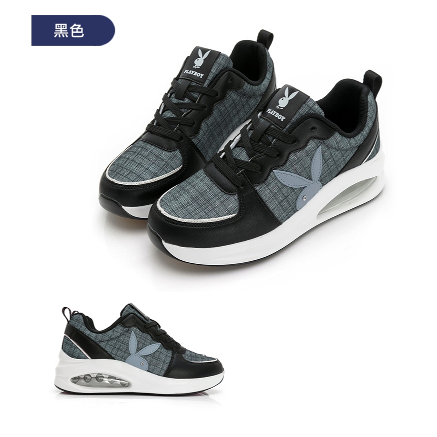• PLAYBOY 英倫時尚 抗震增高氣墊鞋-白粉/灰/黑(PY0057)